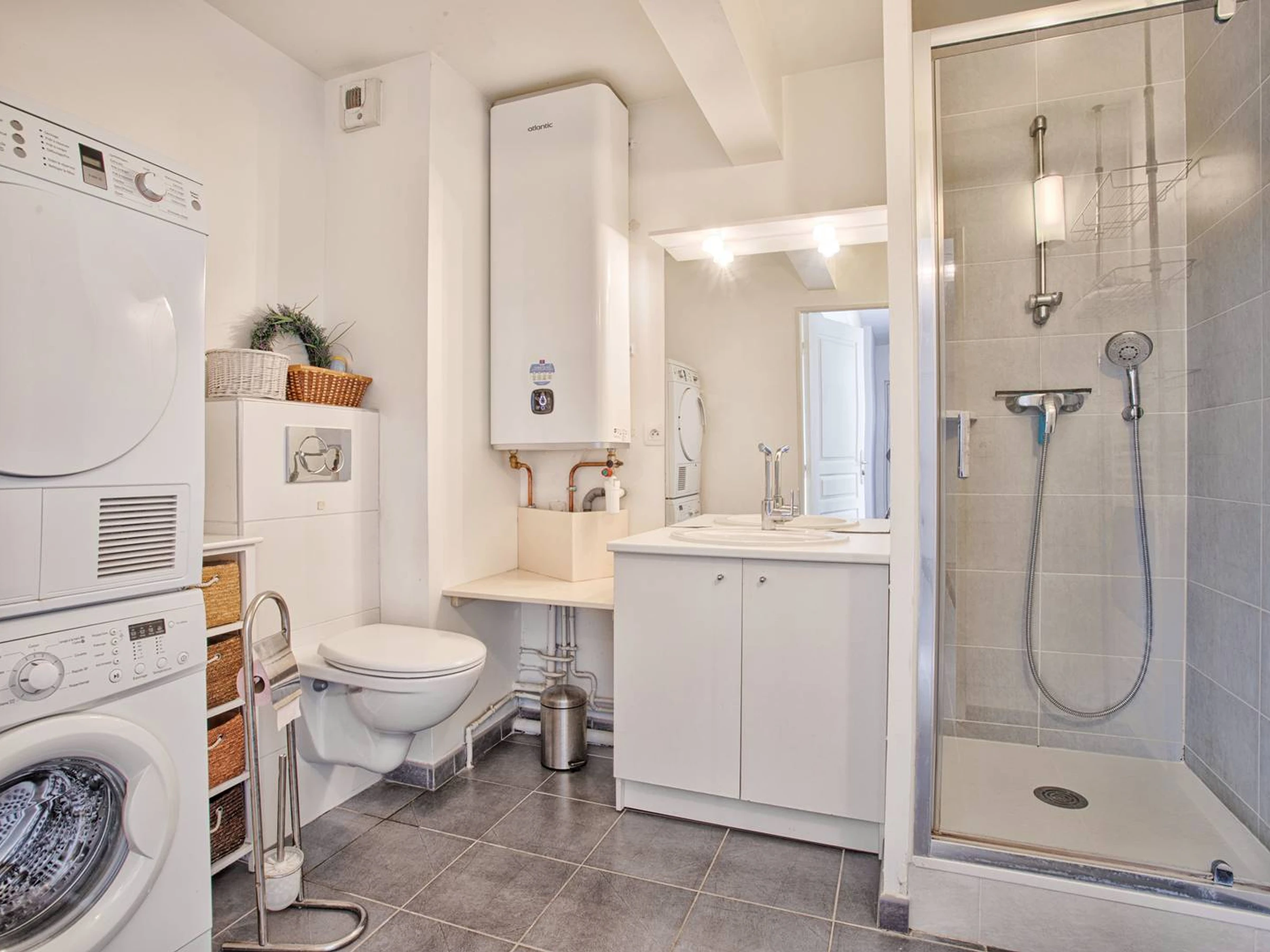 Al otro lado, la zona de dormitorio ofrece tranquilidad y privacidad. Dos dormitorios dan a una segunda terraza orientada al sur, ideal para tomar el sol con total tranquilidad. El primer dormitorio cuenta con una gran cama doble de 160 cm, compuesta por dos colchones individuales para mayor comodidad. El segundo dormitorio cuenta con literas, perfectas para alojar a niños o amigos. Cerca, el baño incluye ducha, lavabo e inodoro, además de lavadora y secadora para mayor comodidad.