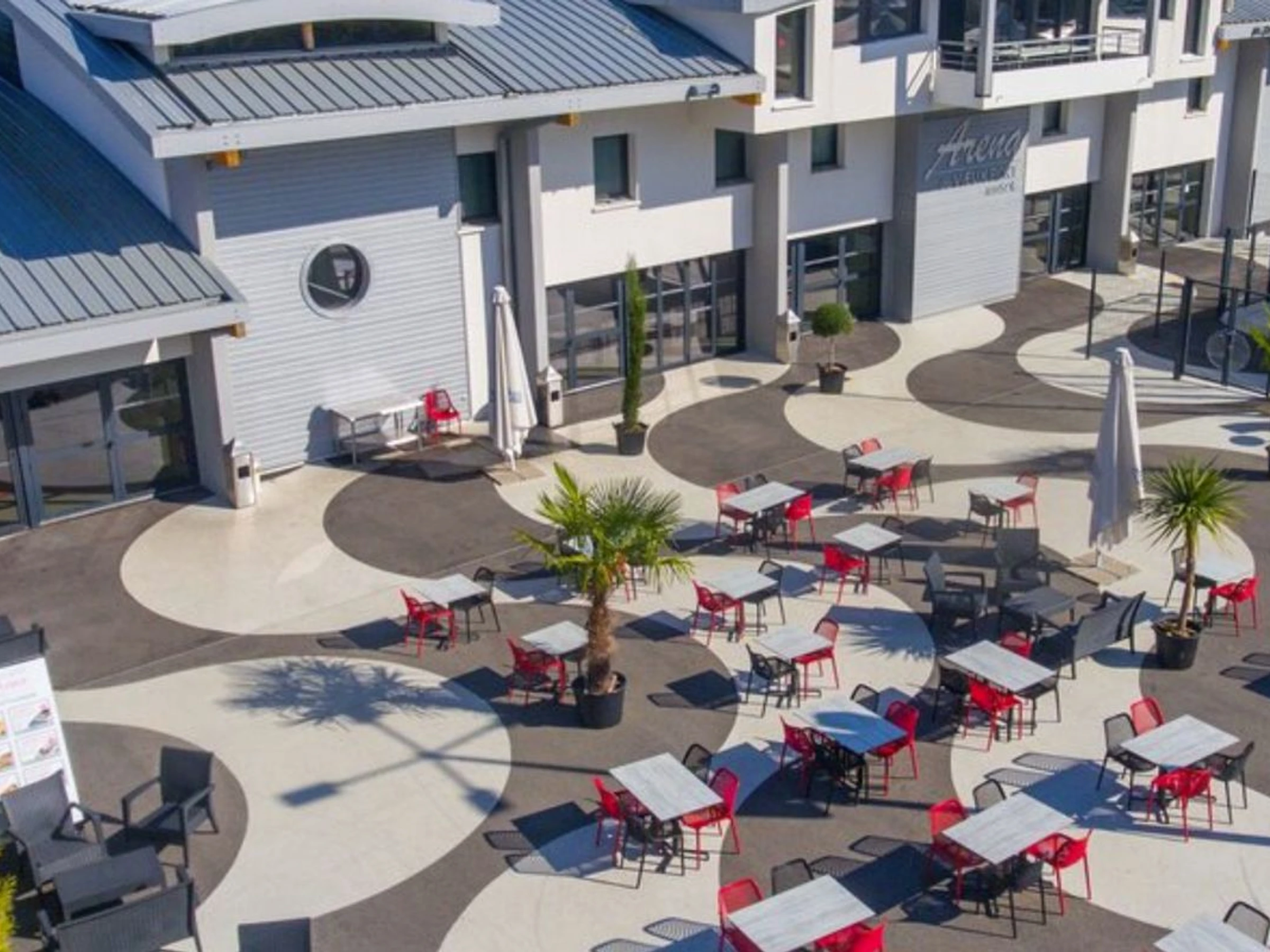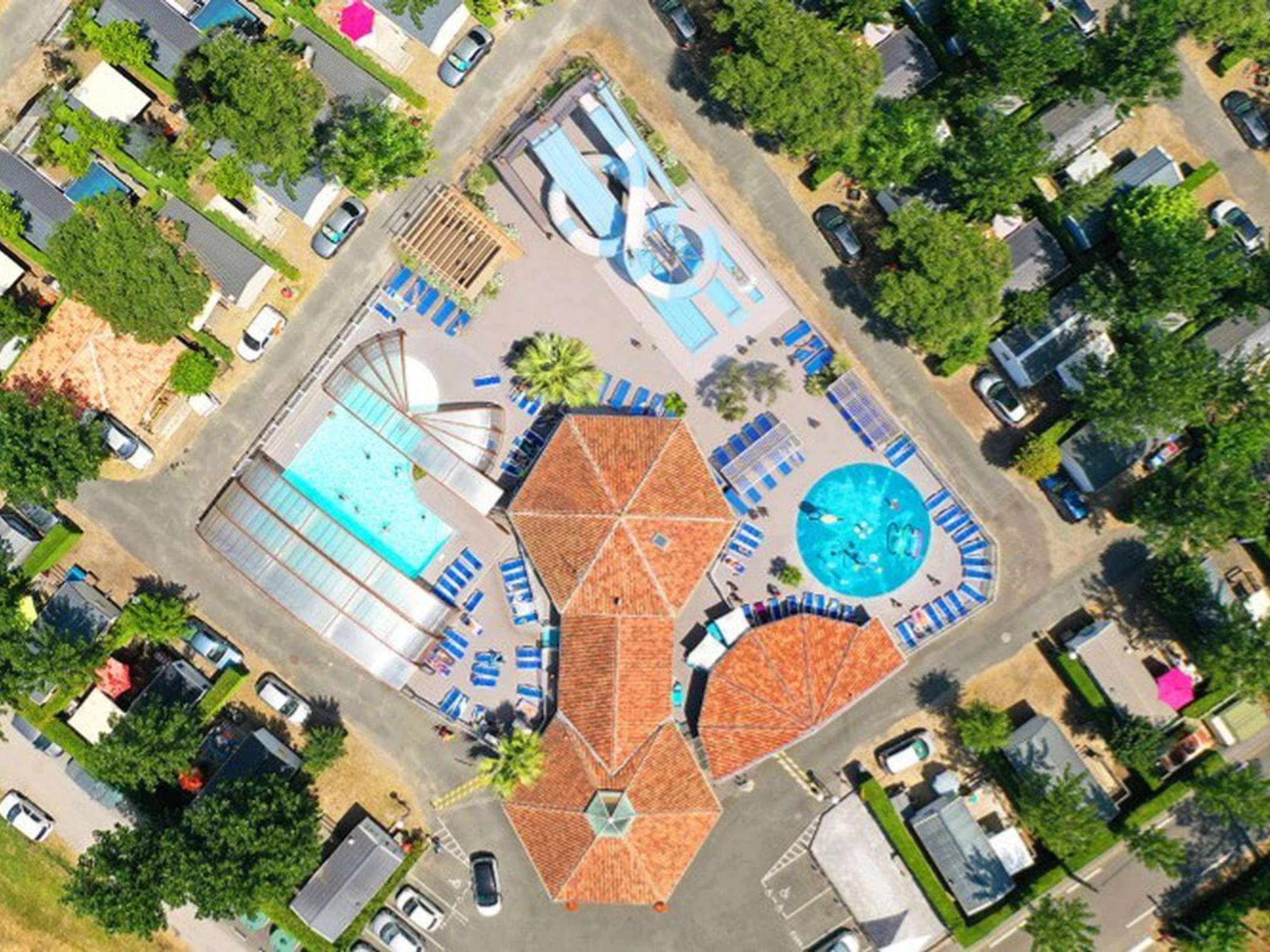 - Piscina cubierta (20 m x 12 m) con techo de cristal modular, piscina infantil y zona de juegos acuáticos, zona de juegos acuáticos y solárium.
