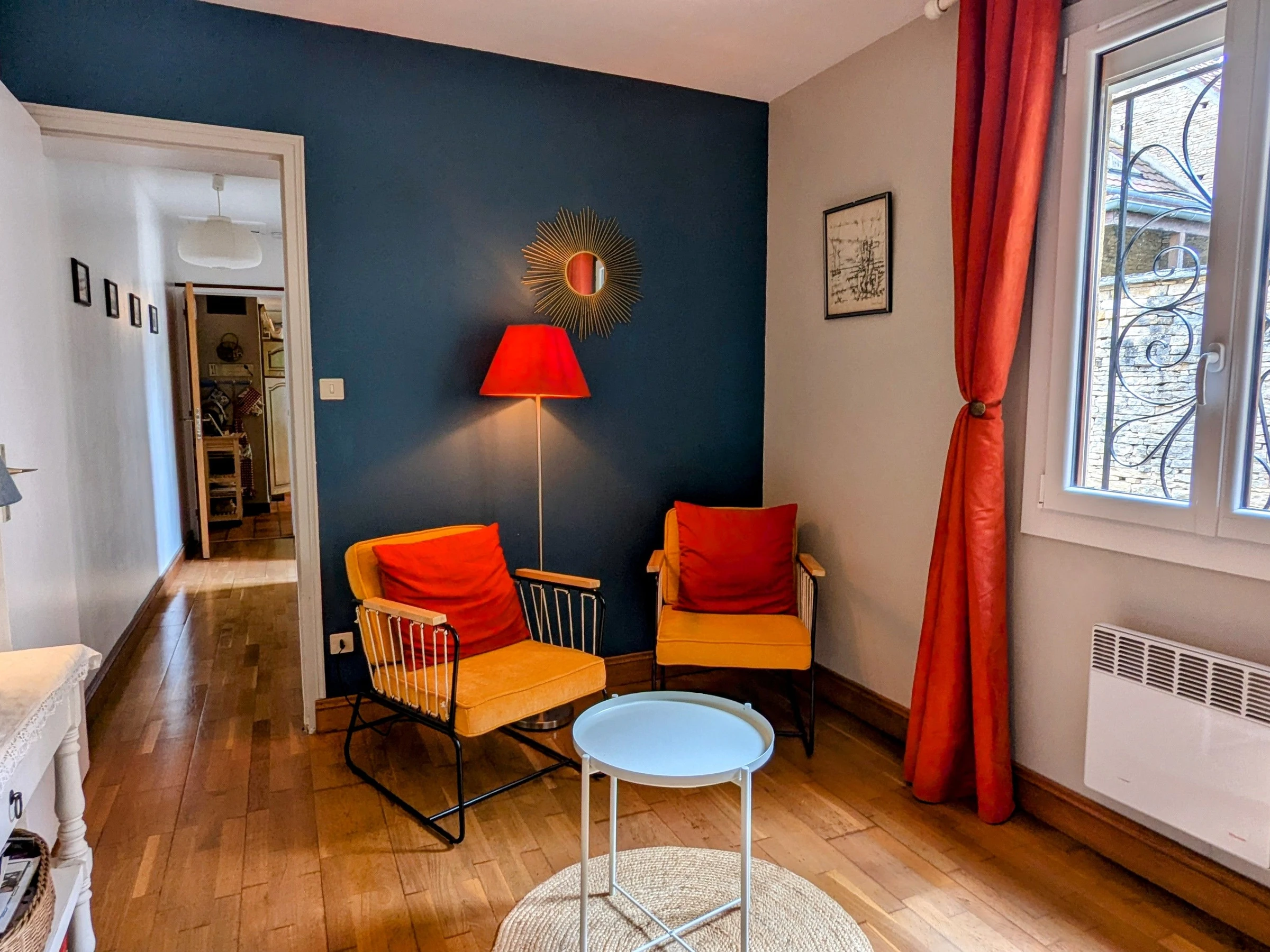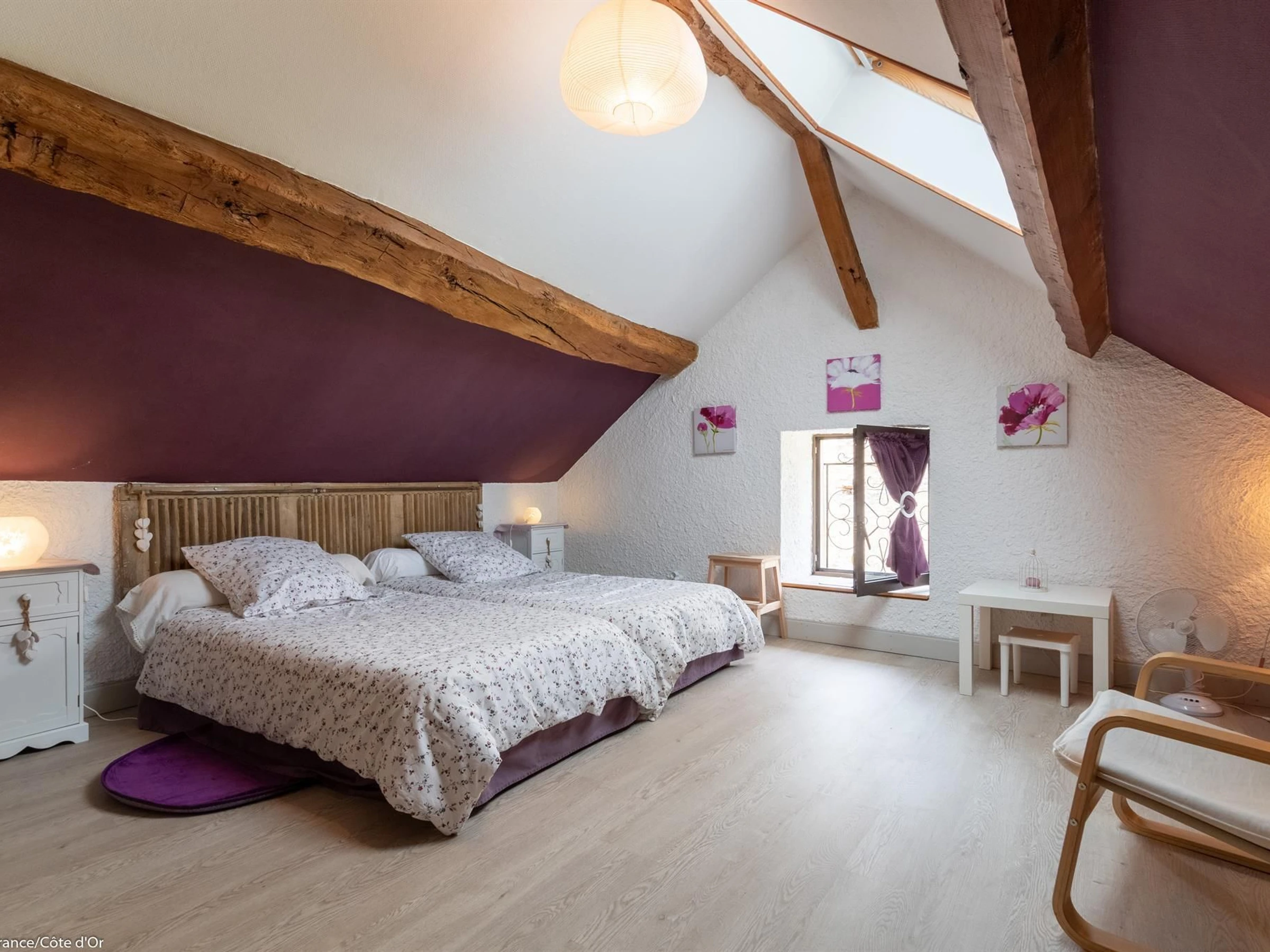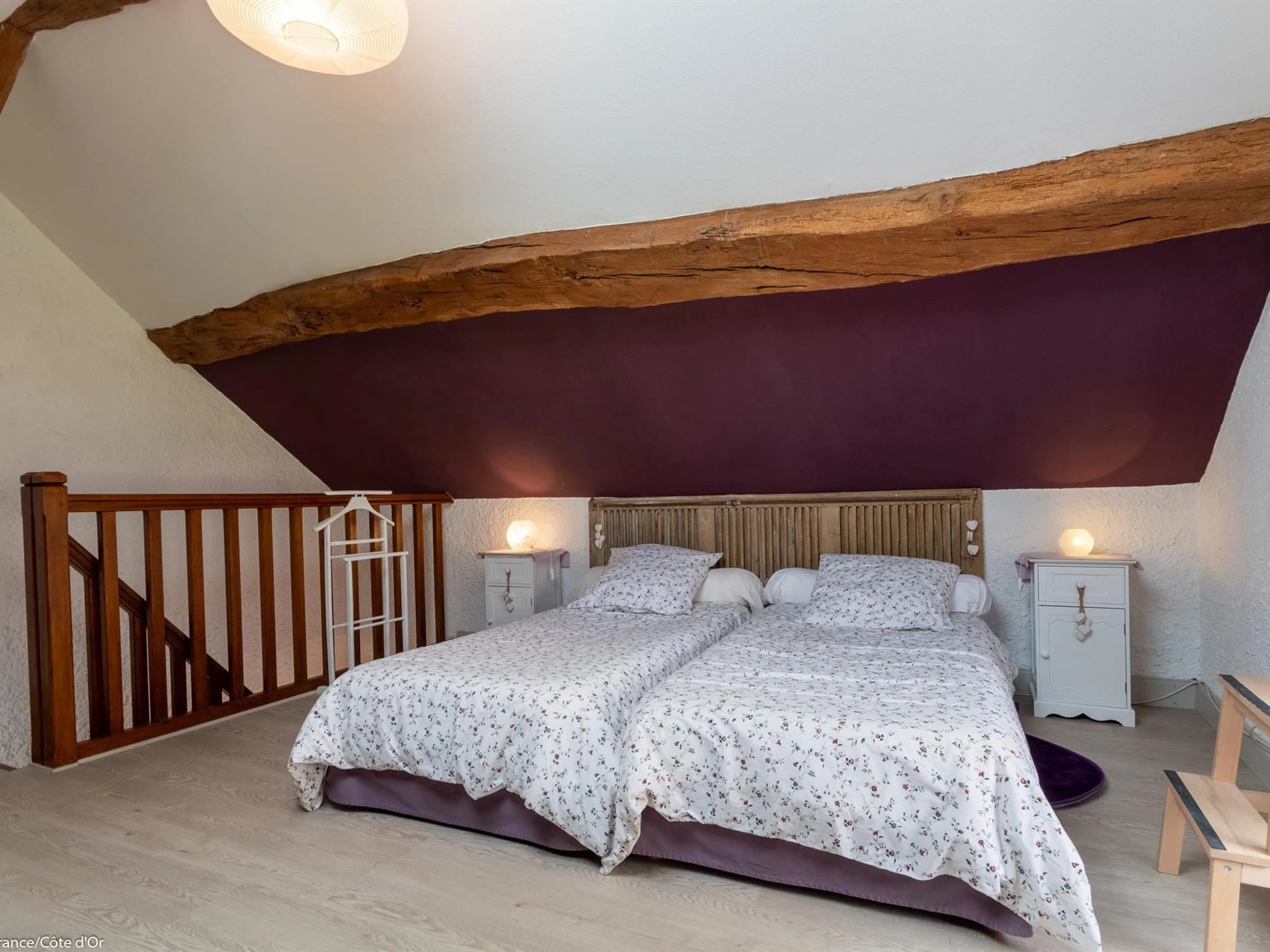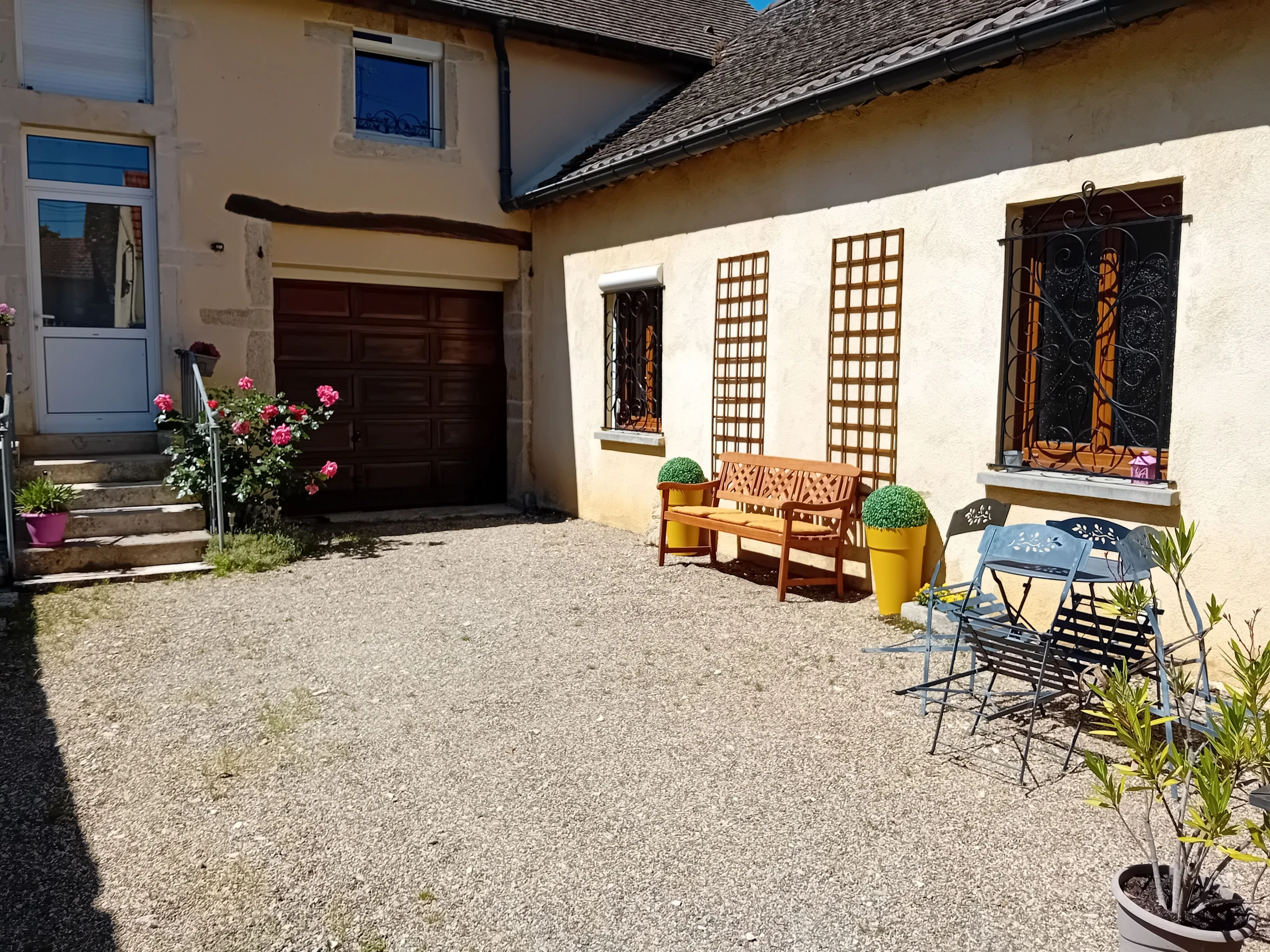 Casa rural al pie de los viñedos. En el corazón de los prestigiosos viñedos de Meursault, esta casa rural independiente ofrece impresionantes vistas de las viñas. Planta baja: terraza comedor, cocina totalmente equipada, salón con chimenea, baño con ducha amplia, zona de estar adicional y aseo independiente. Las habitaciones se encuentran a ambos lados de la casa, con acceso a cada una por una cómoda escalera. La primera habitación (con dos camas individuales) está situada sobre el salón. La segunda (con cama de matrimonio) cuenta con una terraza privada con vistas a los viñedos y un rincón de lectura en el altillo, accesible por una escalera. Hay aparcamiento disponible en el patio cerrado de 80 m², además de un garaje y un jardín cerrado de 135 m² con terraza. Se ofrecen bicicletas a disposición de los huéspedes. Carretera cercana.