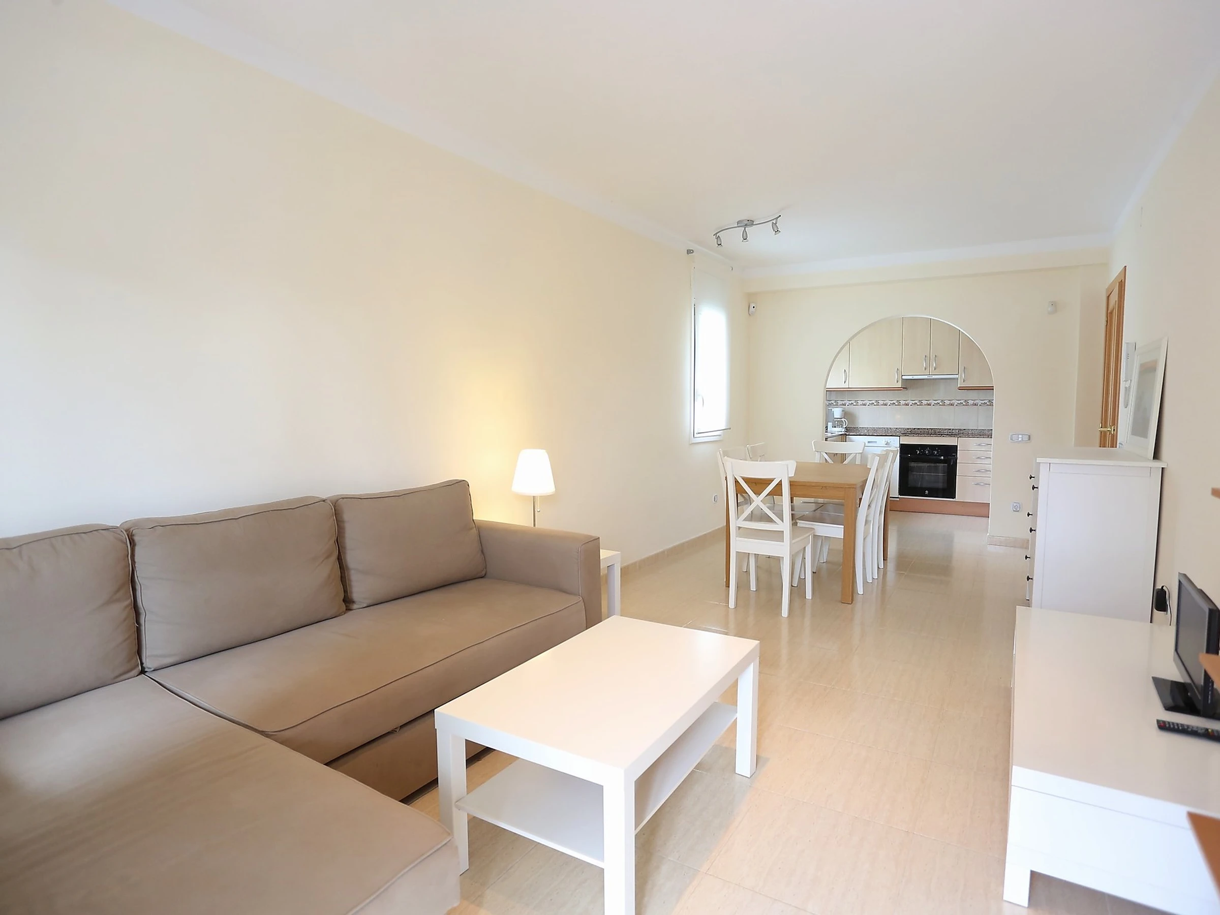 Apartamento de 3 estancias 79 m2, en la planta baja, orientación este. Con mobiliario confortable y moderno: salón-comedor 20 m2 con mesa de comedor, TV digital y aire acondicionado. Salida a la terraza. 1 dorm. con 1 cama de matrimonio (1 x 135 cm). 1 dorm. con 1 cama-nido (2 x 90 cm). Cocina abierta (horno, lavavajillas, 4 placas de vitrocerámica, tostadora, hervidor de agua eléctrico, microondas, cafetera eléctrica). Baño/WC. Ningún tipo de calefacción. Terraza 20 m2. Muebles de terraza. Vista bonita a la piscina y al jardín. El alojamiento dispone de: lavadora, plancha, secador de pelo. Permitido máximo 2 mascotas / perros. [hidden] // Reg. Nr.: ESFCTU000043032000161356000000000000000000[hidden]1