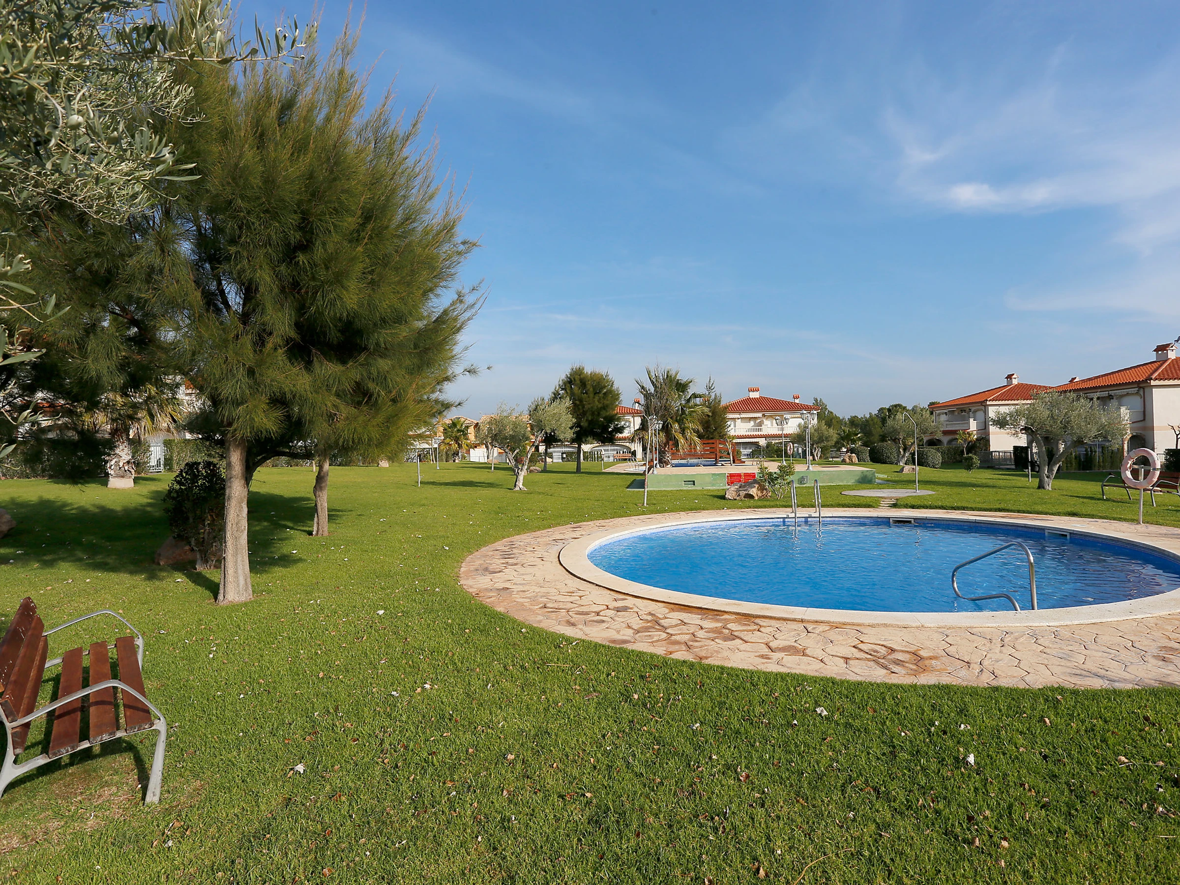 Urb El Casalot: Resort "Jalisco de los Monteros", bonito de 2 plantas. A 3 km del centro de Miami-Platja, a 3.5 km del mar, a 3.5 km de la playa. Comunitario: jardín grande, bonito con césped 600 m2, piscina (6 x 4 m, 80 - 190 cm de profundidad, Disponible por temporada: [hidden] - [hidden] horario piscina: 10:00-21:00). Piscina para niños, ducha exterior, posibilidad de aparcamiento en la calle. Tienda de comestibles 150 m, supermercado 1.5 km, restaurante, bar 150 m, parada autobús 2.7 km, estación de tren "Hospitalet Infant" 5 km. Atracciones en los alrededores: Parque Portaventura 28 km, parque acuático Aquopolis 31 km, parque Natural del Delta del Ebro 53 km, Tarragona 37 km, Reus 30 km, Barcelona 132 km. A tener en cuenta: coche recomendable. Grupos de jóvenes sólo bajo petición.