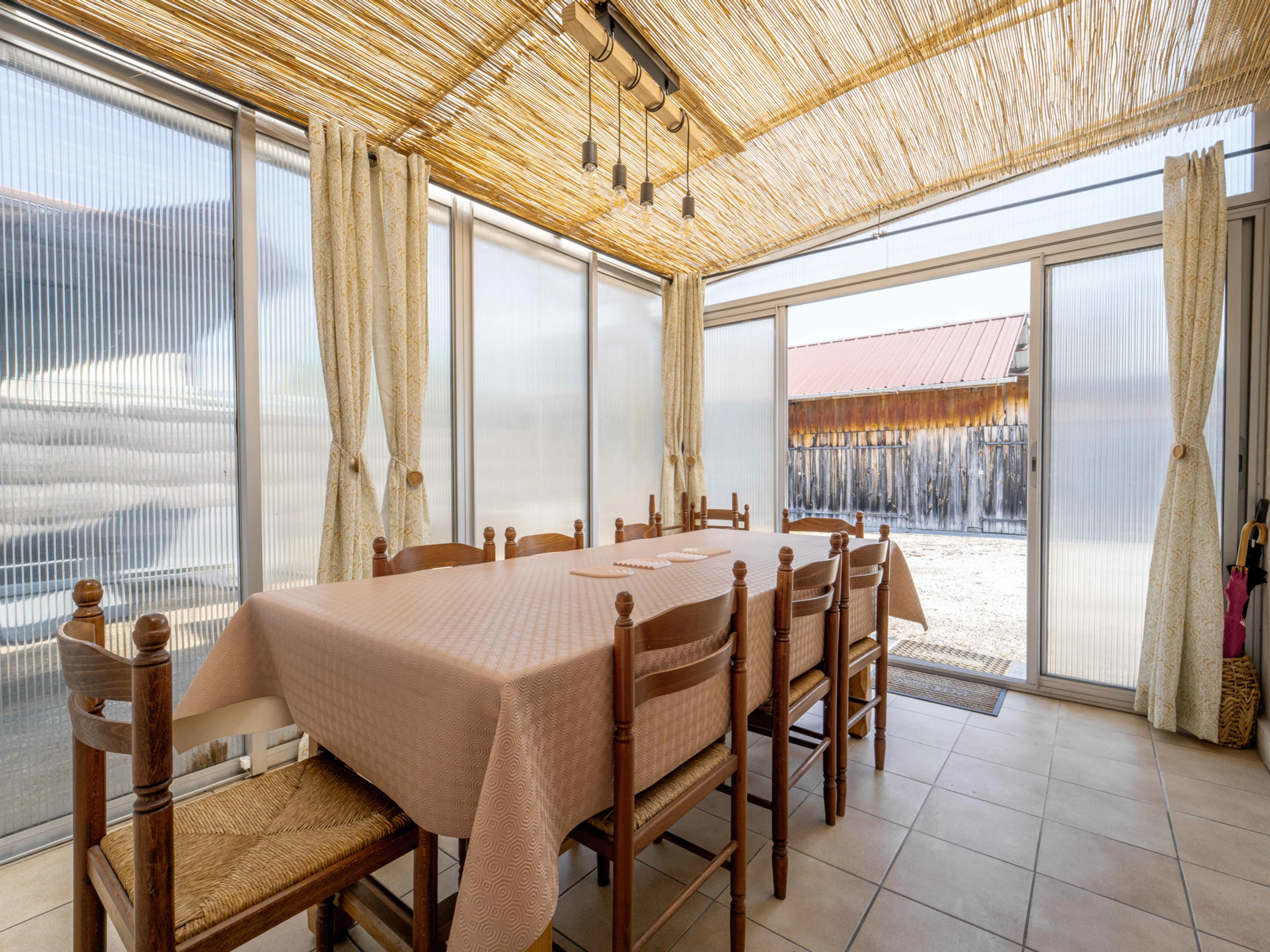 La casa también cuenta con una terraza con comedor que puede instalarse en el interior o al aire libre, según se desee. El jardín cerrado permite que los niños jueguen con seguridad y ofrece aparcamiento para varios vehículos. Disponemos de una zona de relax, tumbonas que invitan a relajarse y una plancha para disfrutar plenamente de los días soleados.