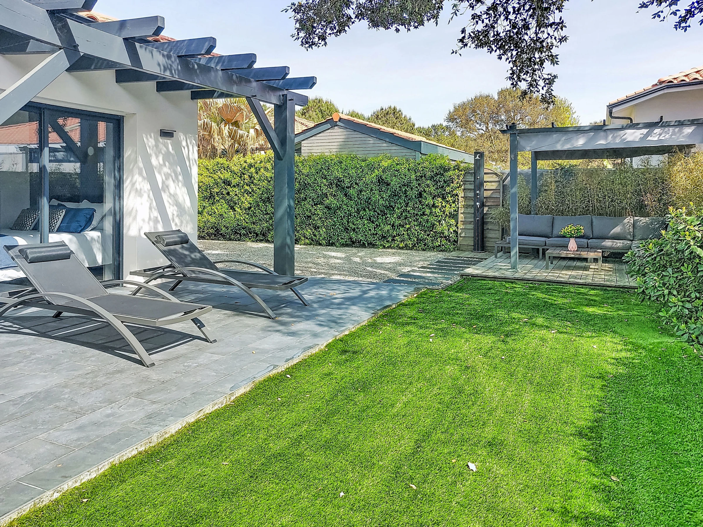 Casa unifamiliar "Areslet", muy moderna, bonita. En la localidad, a 900 m del centro de Mimizan Plage, a 1 km del mar, a 1 km de la playa. Privado: terreno 400 m2 (vallada). Terraza, muebles de jardín, barbacoa, Aparcamiento en el mismo terreno. Tienda 900 m, tienda de comestibles 700 m, restaurante, panadería 900 m, zona peatonal 800 m, alquiler de bicicletas, parada autobús 900 m, estación de tren "labouheyre" 30 km, playa de arena "Garluche" 1 km, lago "Aureilhan" 10 km. Campo de golf (9 hoyos) 10 km, escuela de surf 1 km, centro ecuestre 10 km. Atracciones en los alrededores: Arcachon 70 km, Biscarrosse 40 km, Casino jeux 250 m. Zona de senderismo Pistes cyclables 100 m.