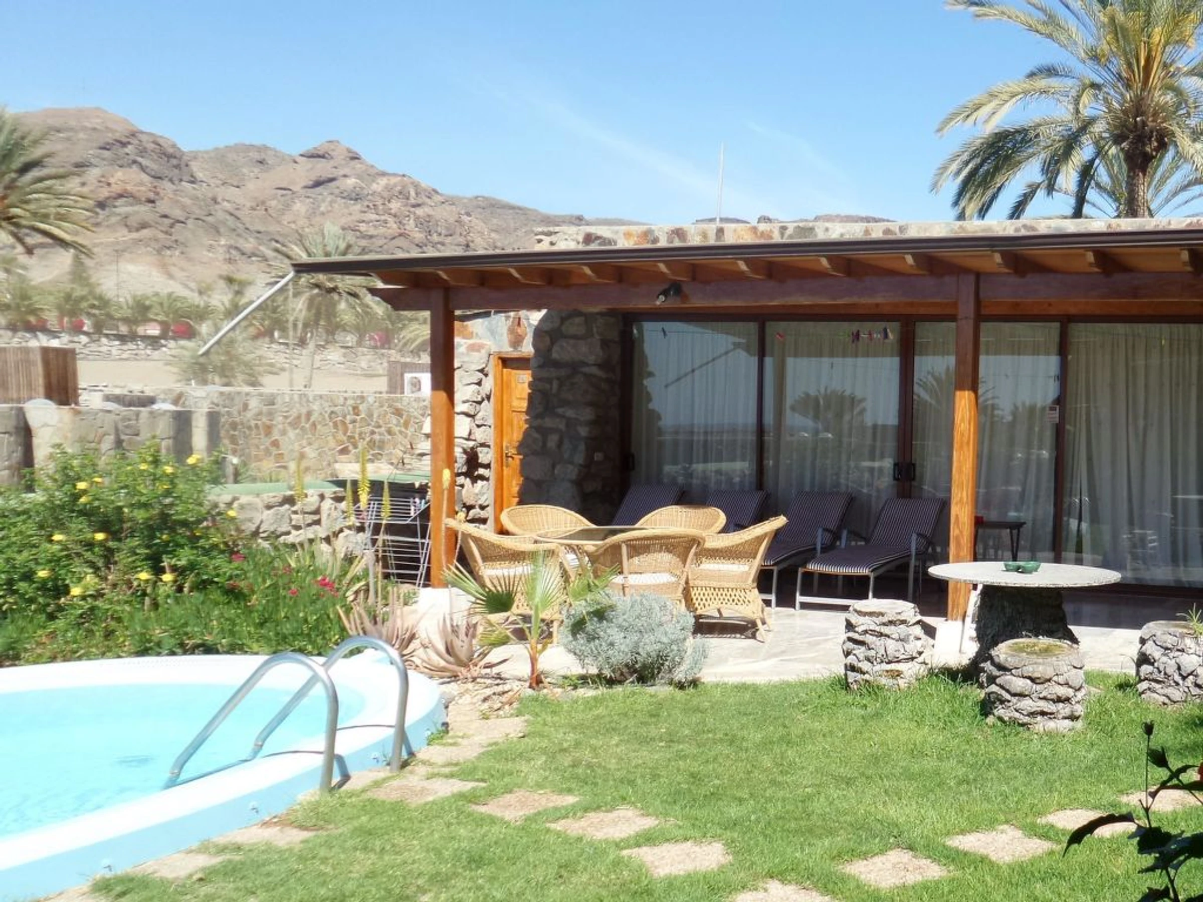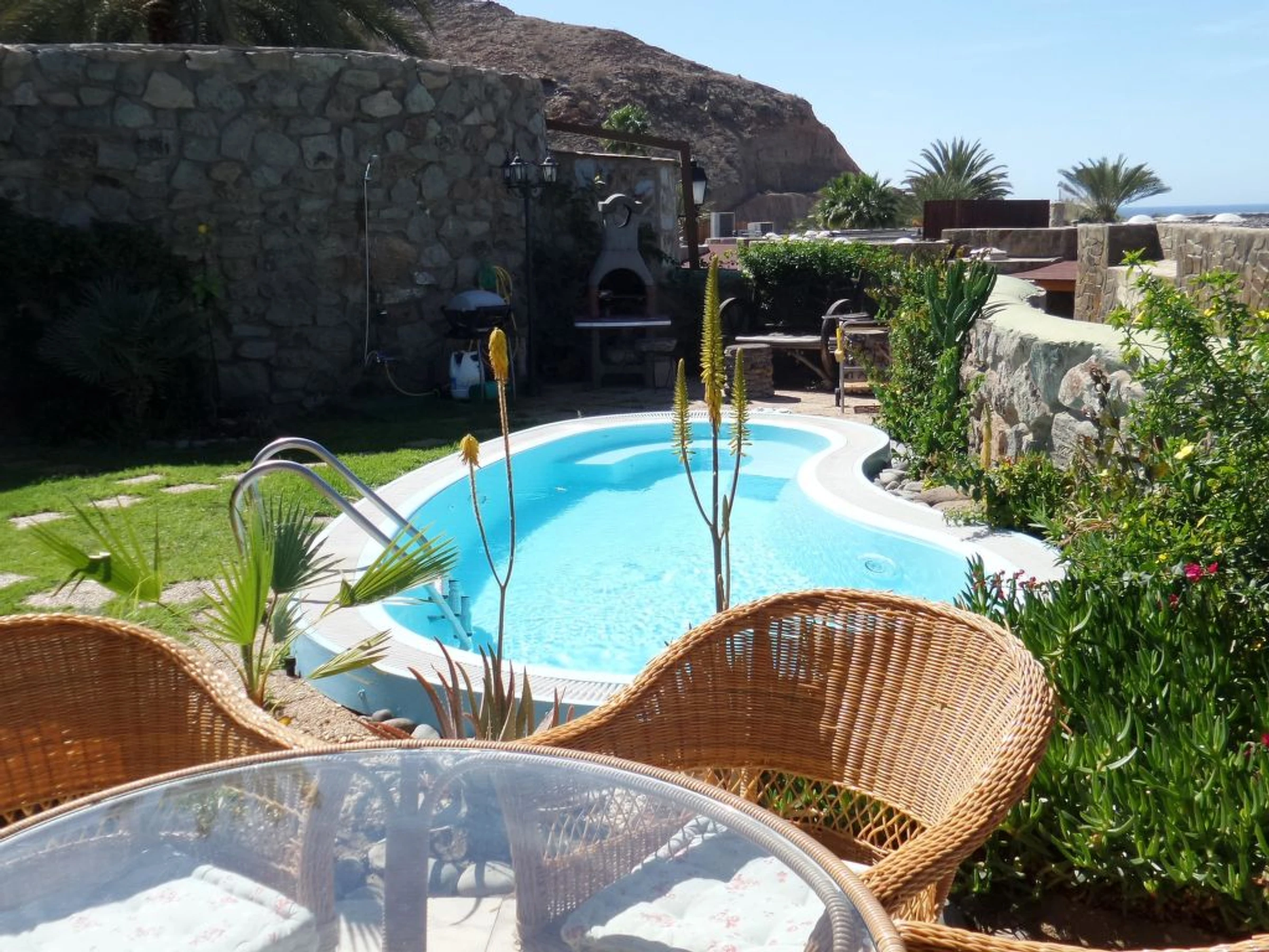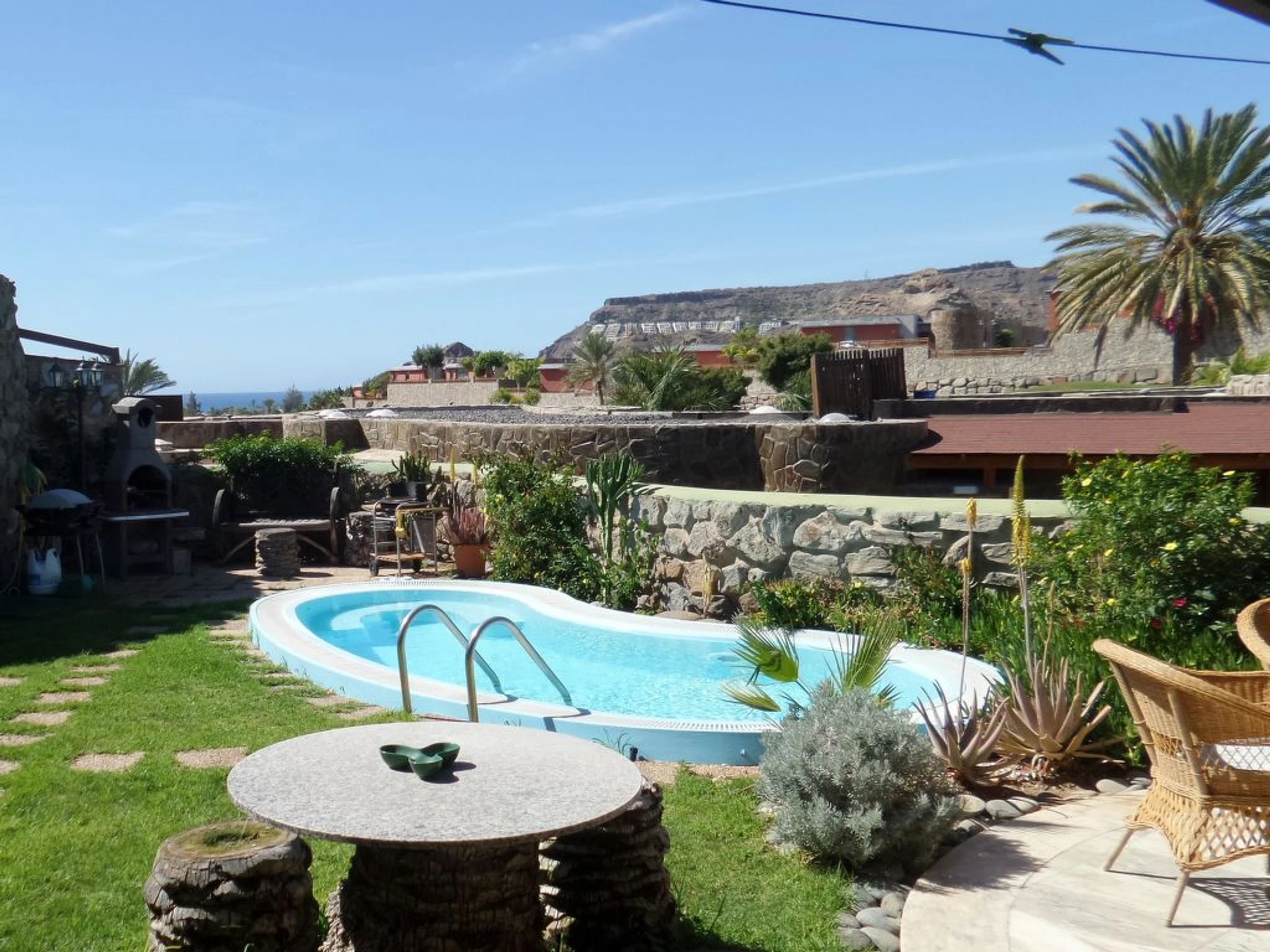Villa, amplia, confortable, agradable "Exclusive Villa Anfi Tauro Golf". Equipamiento de la vivienda: aire acondicionado, solarium, lavadora (privado). Parking: parking al lado de la vivienda. Acceso en coche todo el año. Coche recomendado. Situación: lugar tranquilo en la playa. Vista desde la vivienda al mar y a las montañas. Entorno de la vivienda: piscina (privado), piscina (desmontable, comunitario, climatizada), ducha exterior (comunitario), parque infantil (comunitario), tenis de mesa (comunitario), barbacoa (privado). Infraestructura y distancias: tienda de comestibles 50 m, supermercado 50 m, restaurante 50 m, piscina 20 m, playa de arena 2.5 km, campo de golf 100 m. A tener en cuenta, en las proximidades hay una autopista a 350 m y un aeropuerto a 40 km.