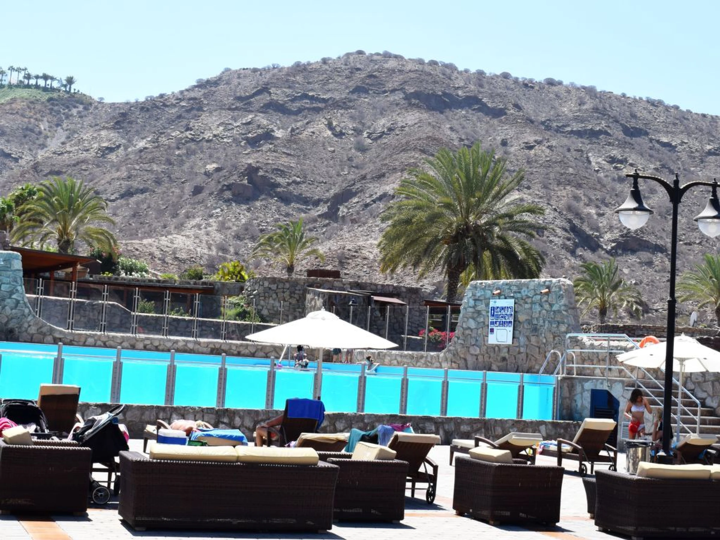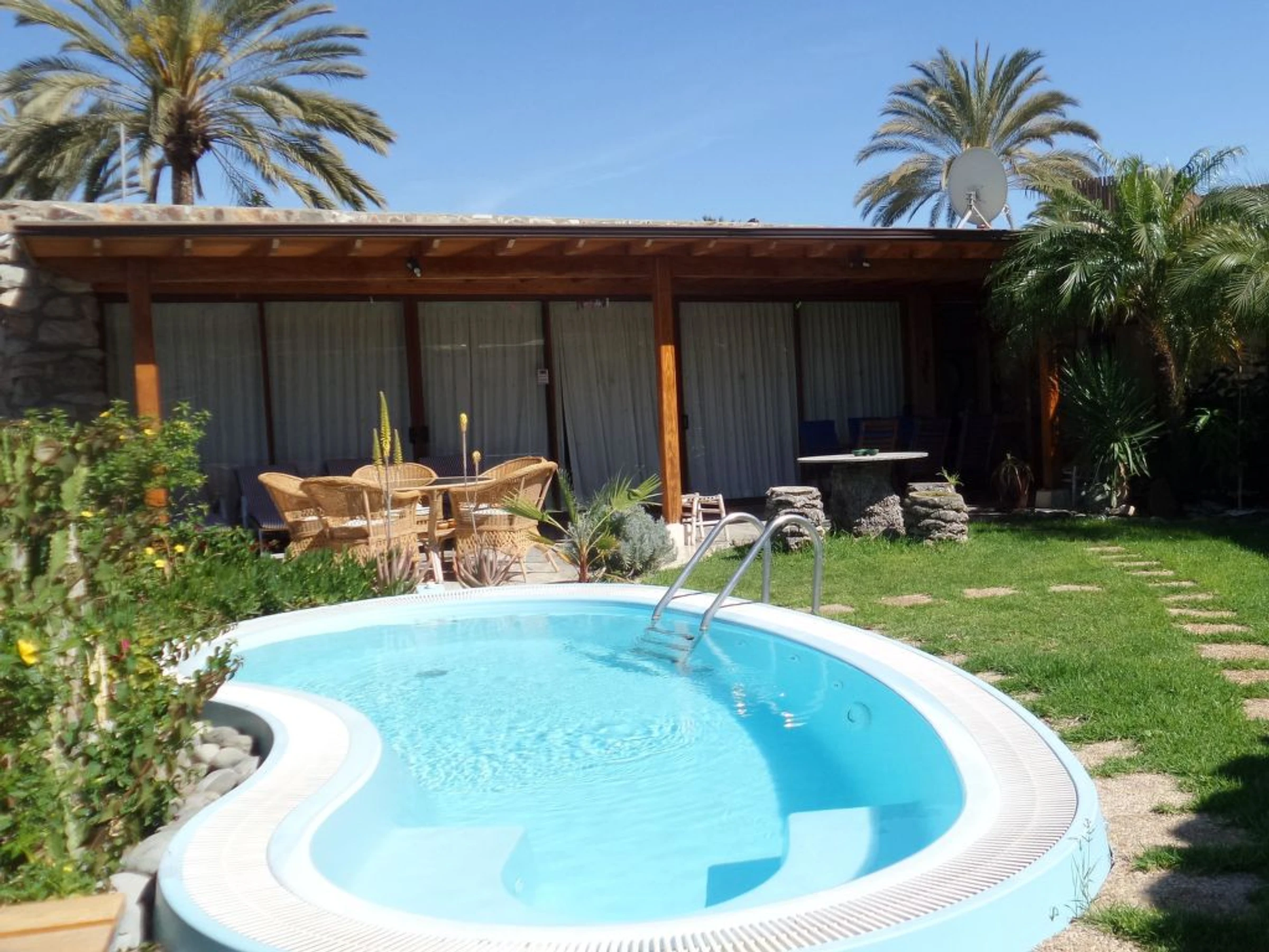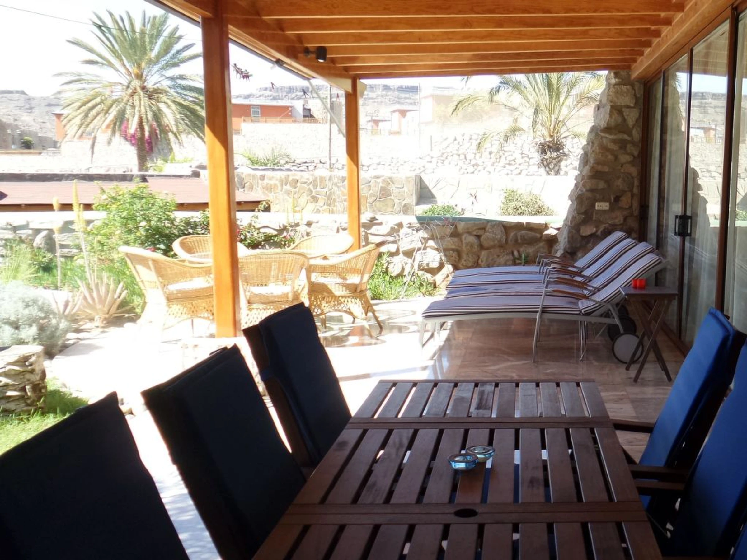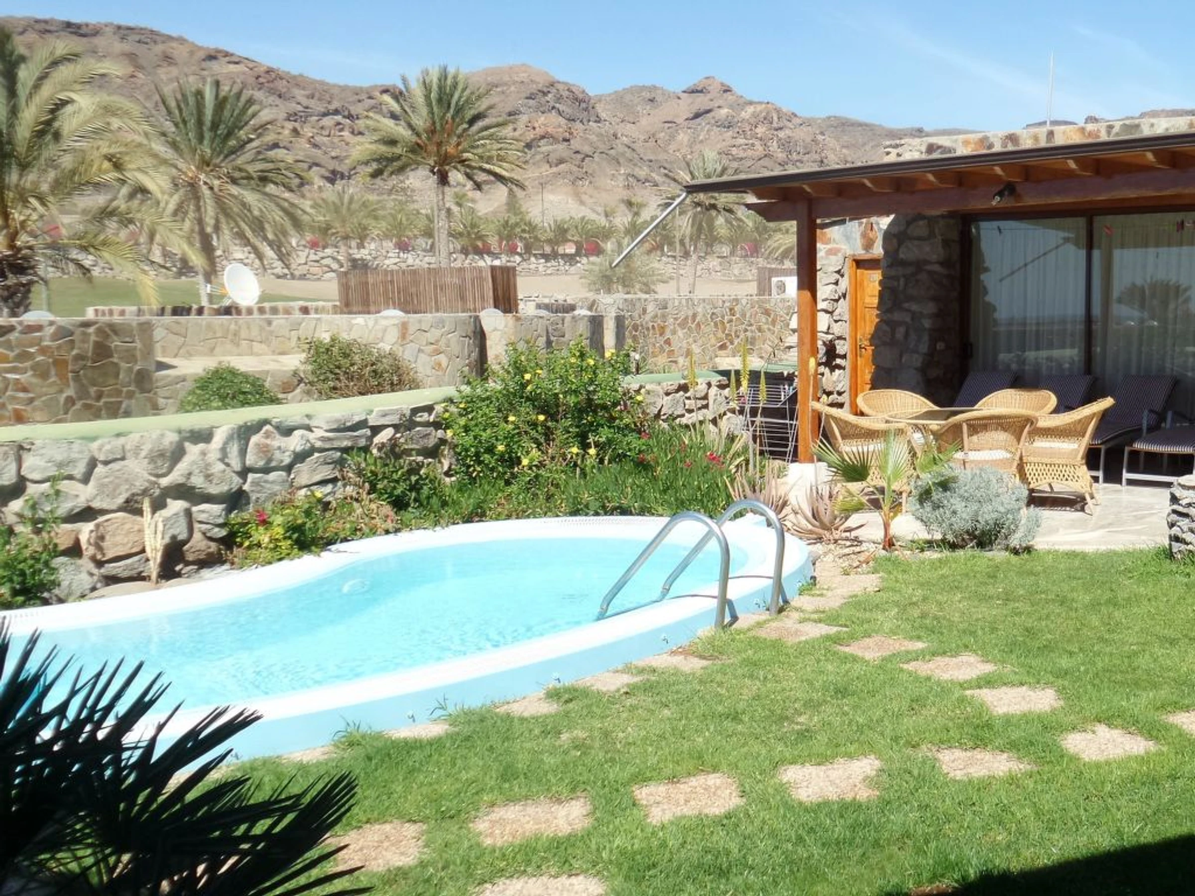 Villa, amplia, confortable, agradable "Exclusive Villa Anfi Tauro Golf". Equipamiento de la vivienda: aire acondicionado, solarium, lavadora (privado). Parking: parking al lado de la vivienda. Acceso en coche todo el año. Coche recomendado. Situación: lugar tranquilo en la playa. Vista desde la vivienda al mar y a las montañas. Entorno de la vivienda: piscina (privado), piscina (desmontable, comunitario, climatizada), ducha exterior (comunitario), parque infantil (comunitario), tenis de mesa (comunitario), barbacoa (privado). Infraestructura y distancias: tienda de comestibles 50 m, supermercado 50 m, restaurante 50 m, piscina 20 m, playa de arena 2.5 km, campo de golf 100 m. A tener en cuenta, en las proximidades hay una autopista a 350 m y un aeropuerto a 40 km.