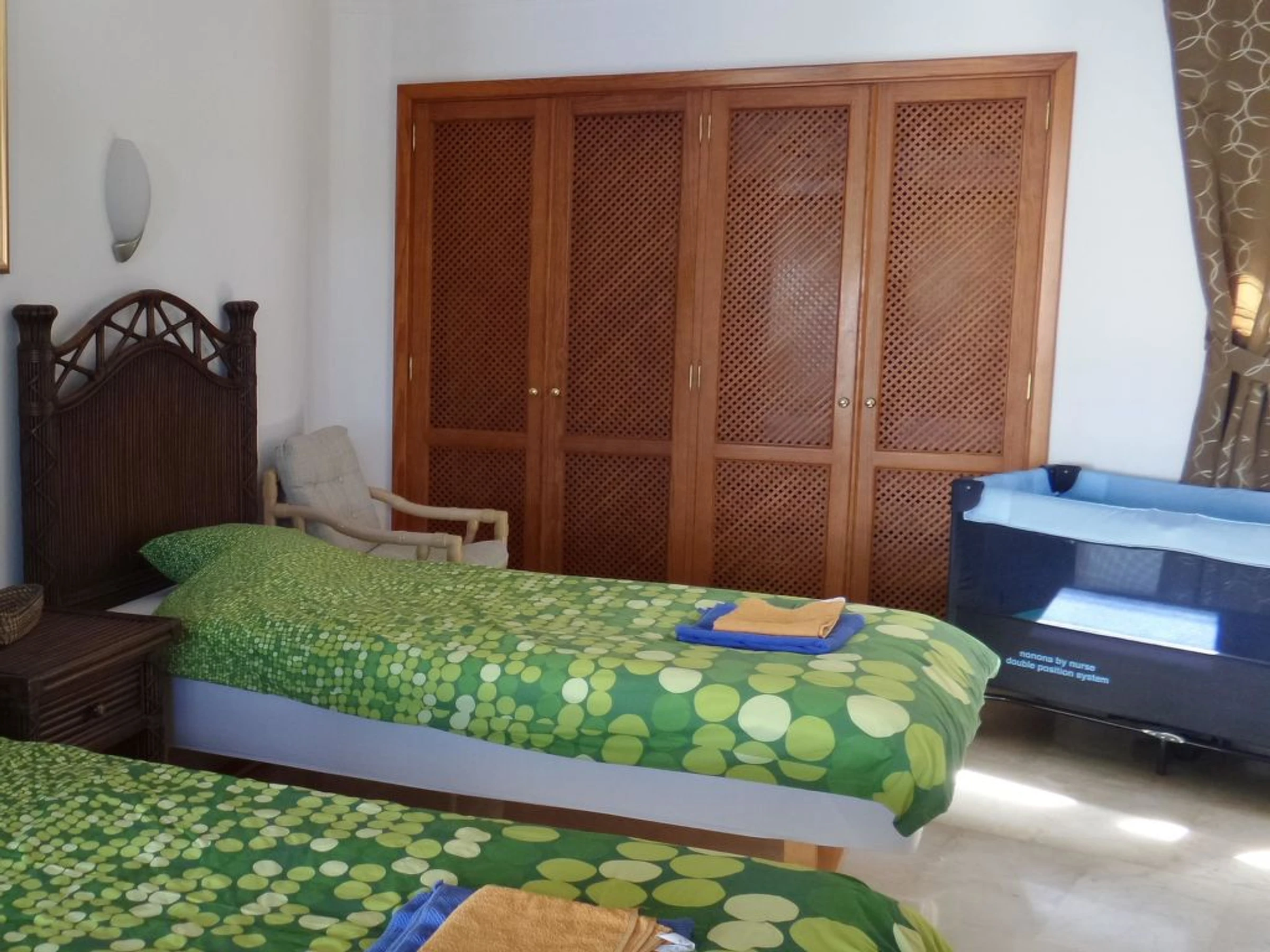 Casa independiente, 4 piezas para 7 personas, 200 m2, con mobiliario confortable y agradable. Salón-comedor con TV regional y DVD. Fumar no permitido. Internet (Wifi). Dormitorio con 1 cama de matrimonio. Dormitorio con 3 camas individuales. Dormitorio con 2 camas individuales. Cocina con 3 quemadores, microondas, horno, grill, lavavajillas, frigorifico y congelador. Ducha/WC. Terraza-jardín 50 m2, muebles de terraza. Otros equipamientos: trona, secador de pelo, plancha. Incluye: Limpieza final, Consumo energético, ERV assurance annulation gratuite, Toallas (primer juego), Calefacción, Aire acondicionado, Ropa de cama (primer juego), Cama para niños (hasta 2 años)