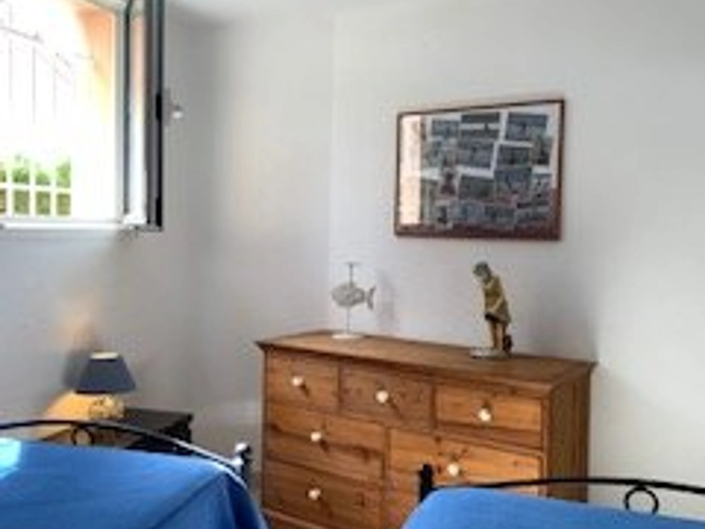 - Dormitorio 2 con dos camas individuales (90 cm), mesitas de noche y cómoda