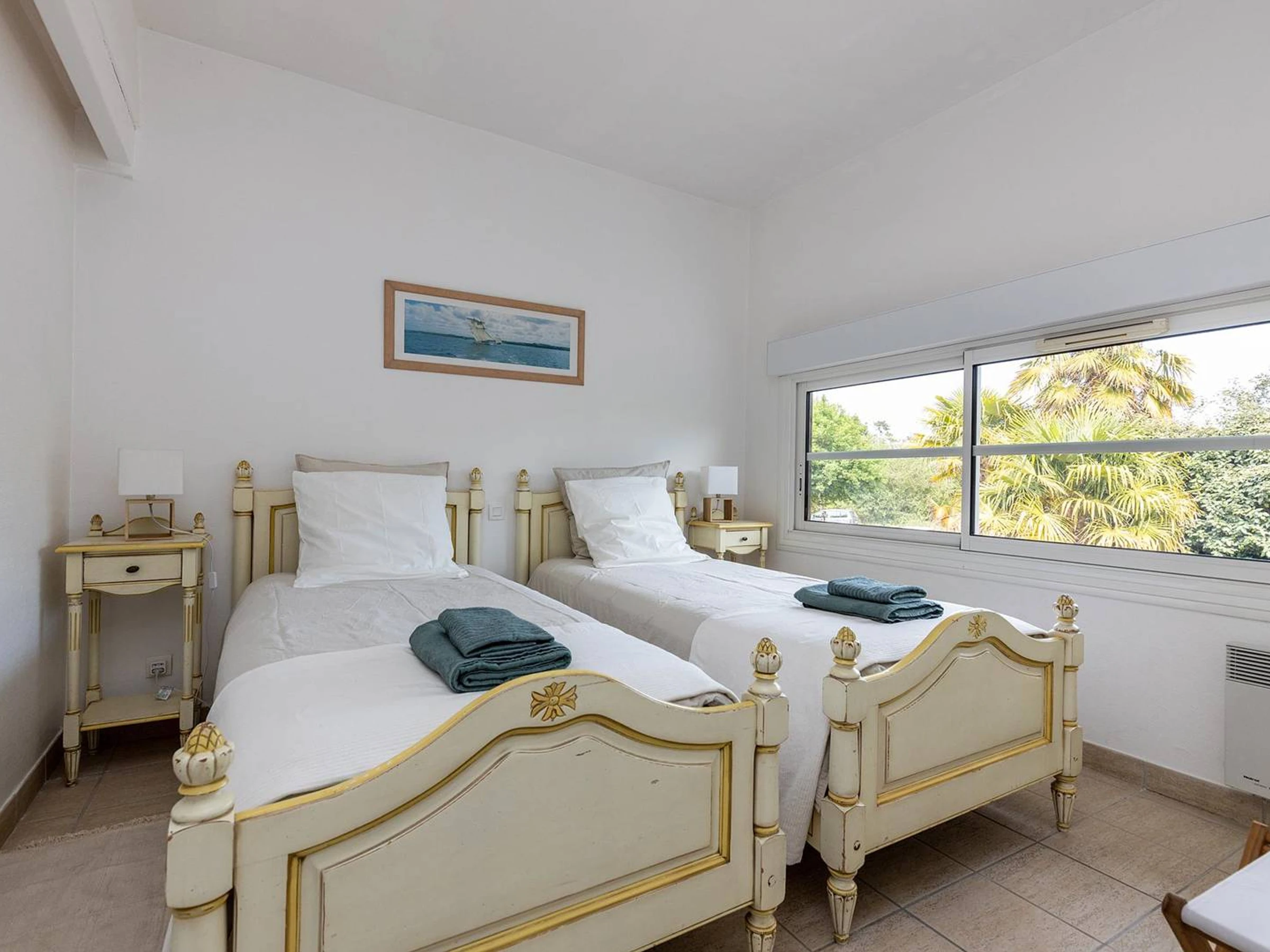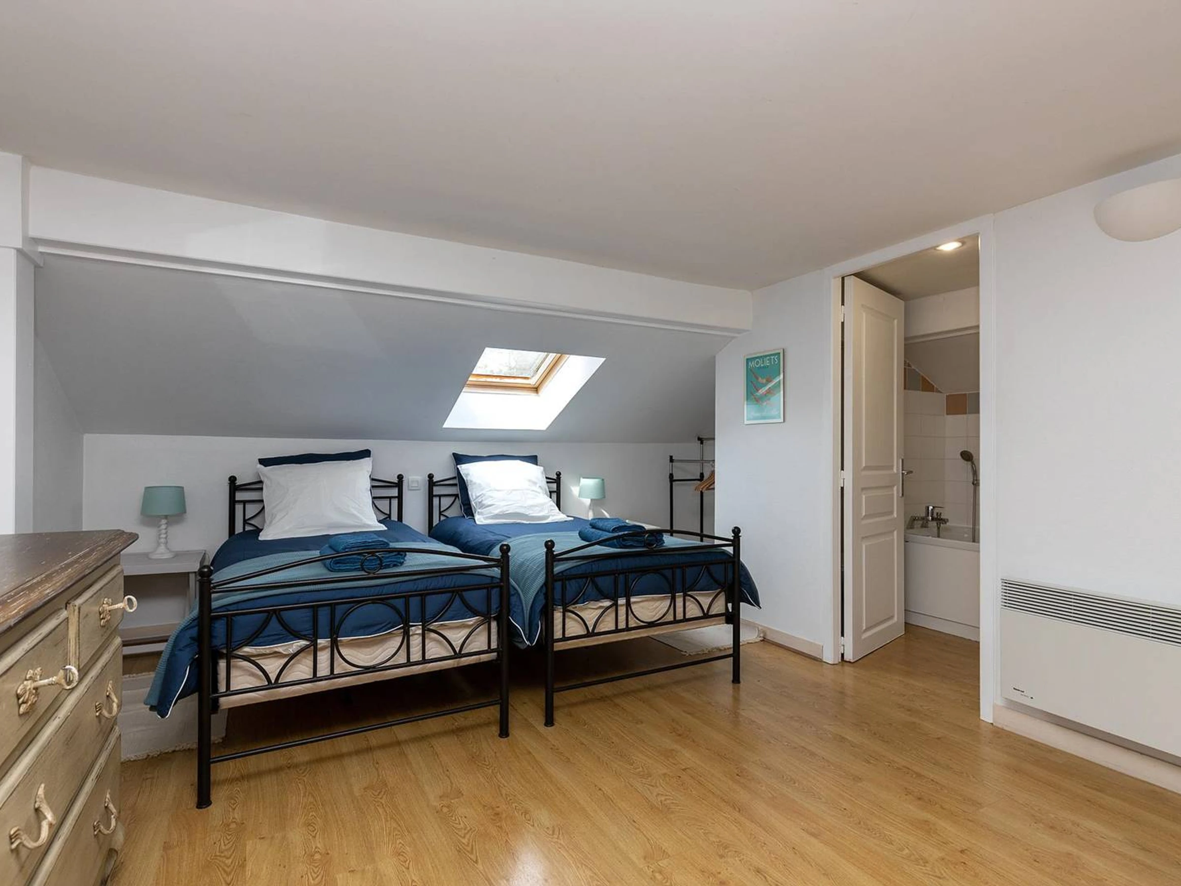 - Dormitorio 4: 2 camas individuales (90 cm), mesitas de noche, armario.