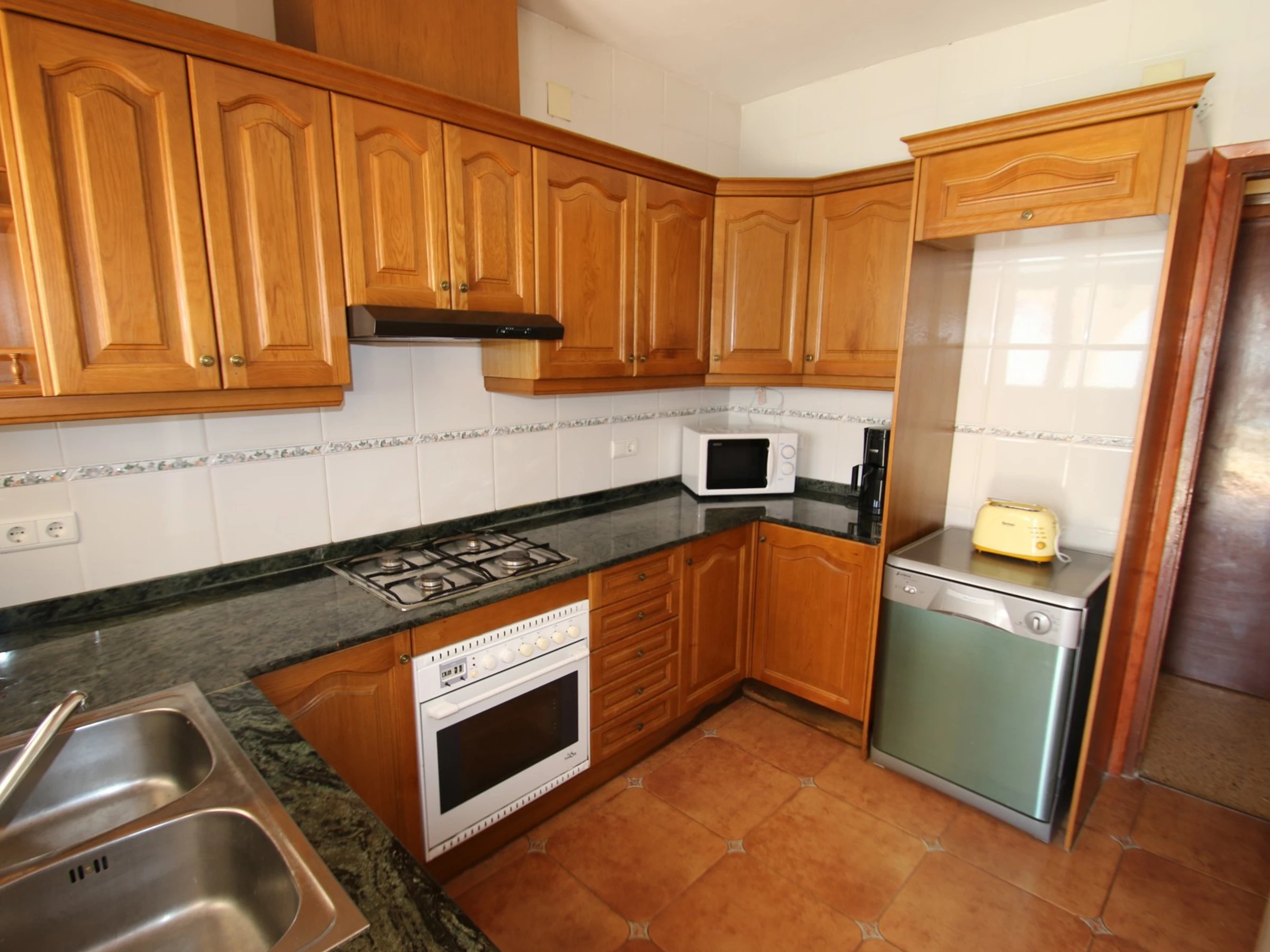 La cocina está totalmente equipada con nevera con congelador, microondas, horno, lavadora, lavavajillas, vajilla, utensilios de cocina y cafetera. Se recomienda disponer de coche.