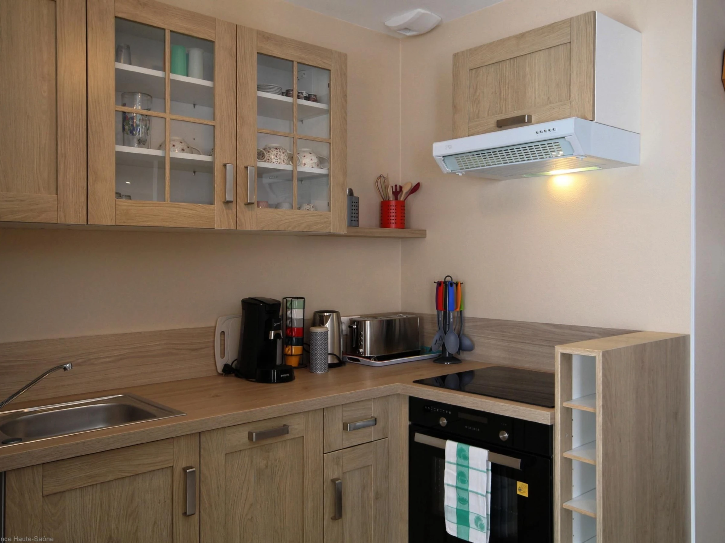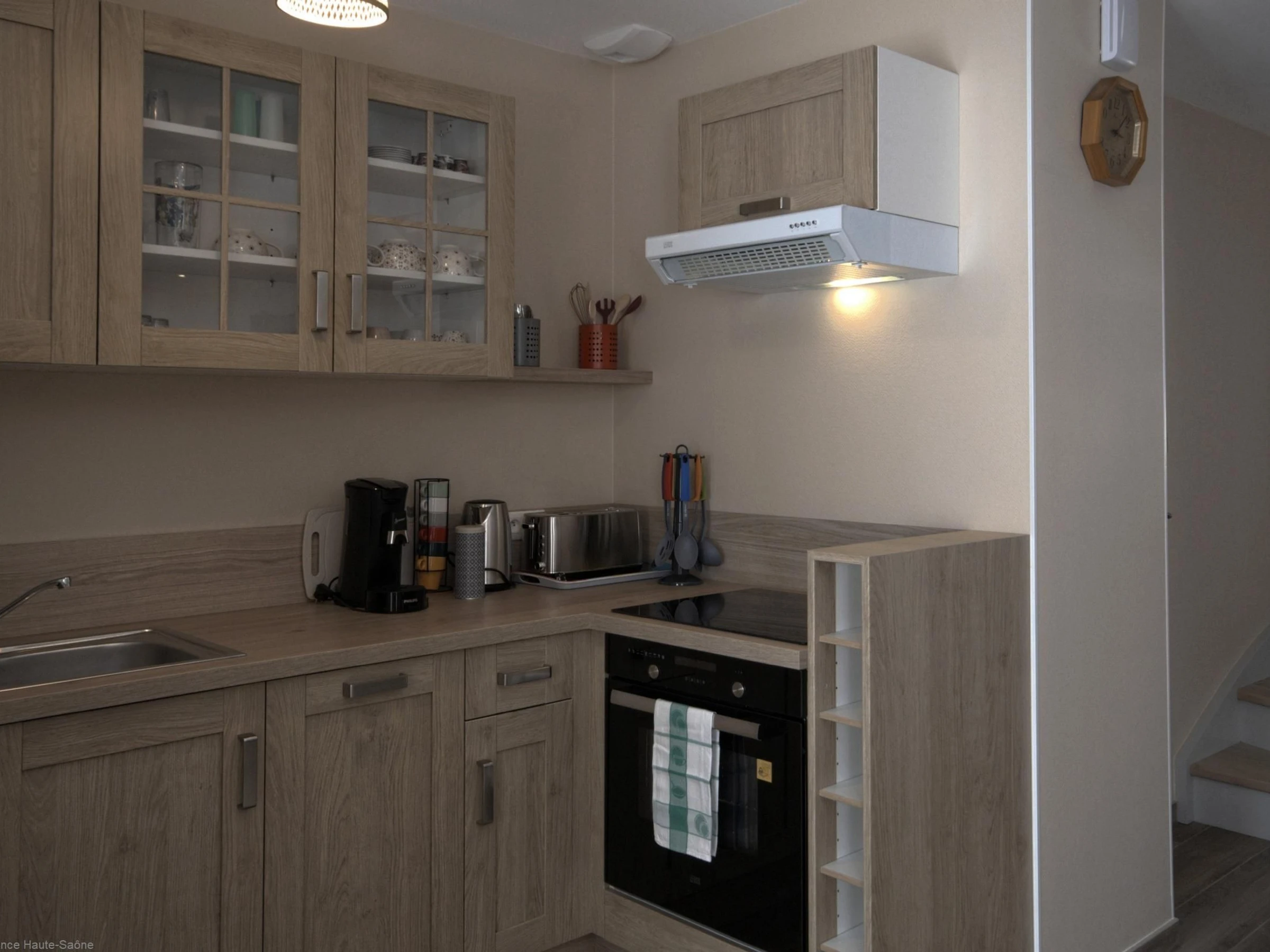- En la planta baja, una cocina totalmente equipada da a un salón-comedor con sofá cama doble y TV. Aseo independiente.