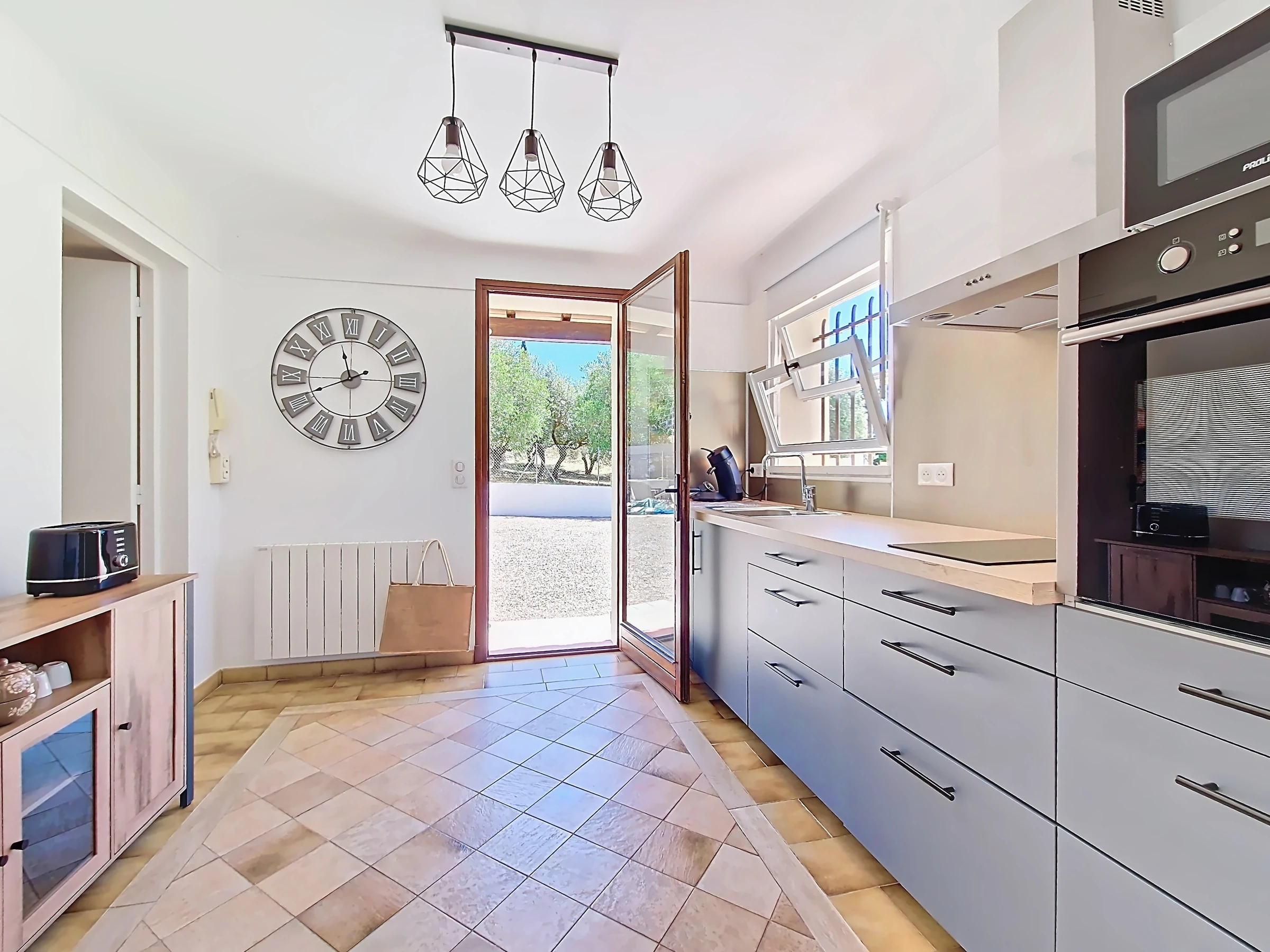 La cocina totalmente equipada le permitirá preparar fácilmente deliciosas comidas y servirlas en la encantadora y soleada terraza con vistas al jardín y a los olivos de los alrededores.