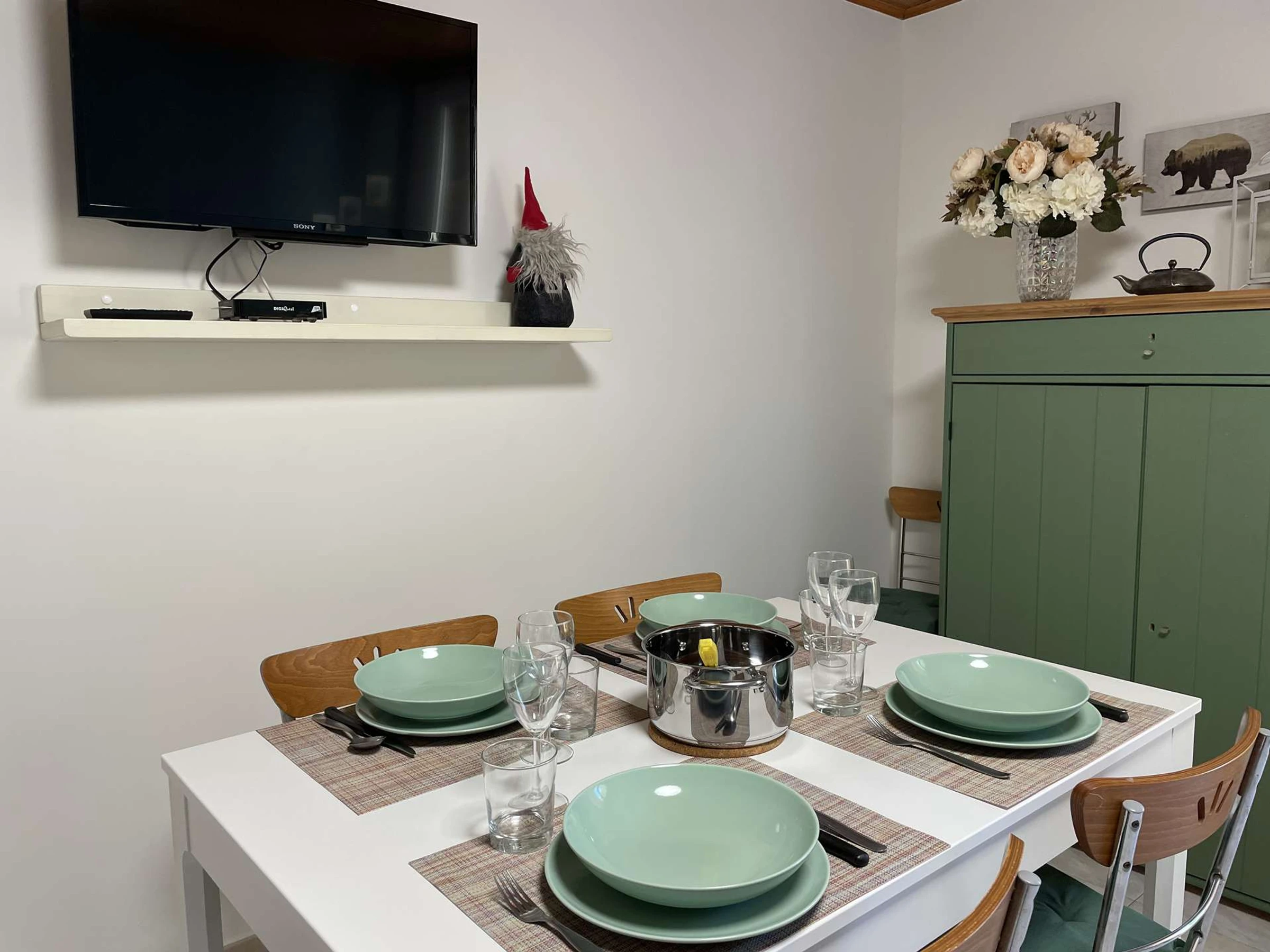 Salón con sofá cama doble (160 cm) y televisión.