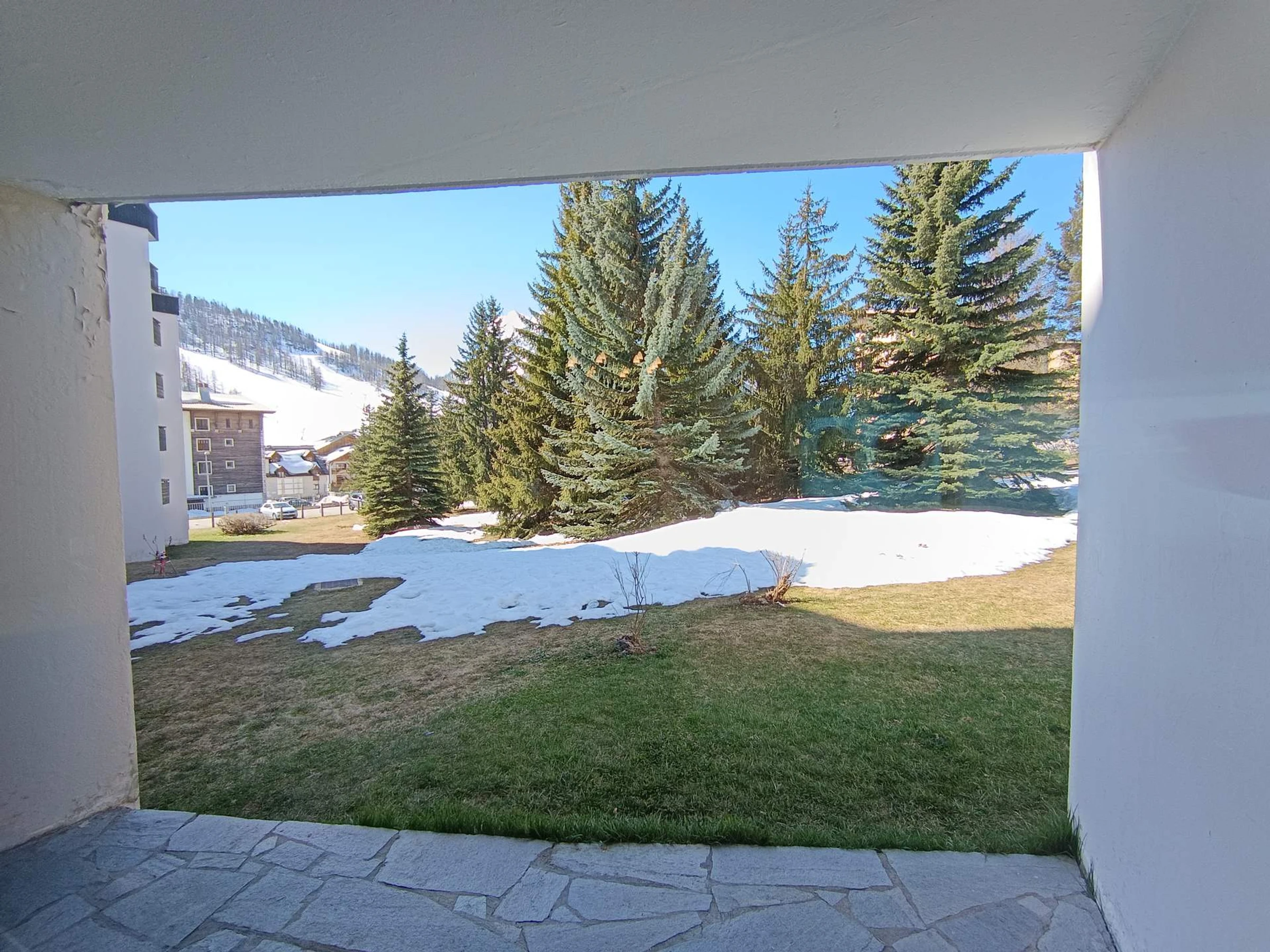 Ventaja: Apartamento con mobiliario rústico pero con una bonita superficie para 6 personas. Buena orientación: El ventanal da al jardín de la residencia.