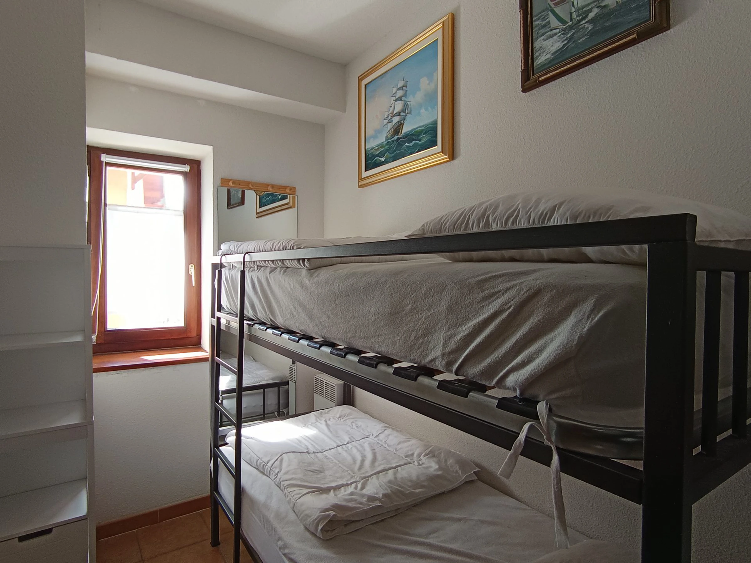 Dormitorio: 1 cama doble (160 cm) + armario + ventana.