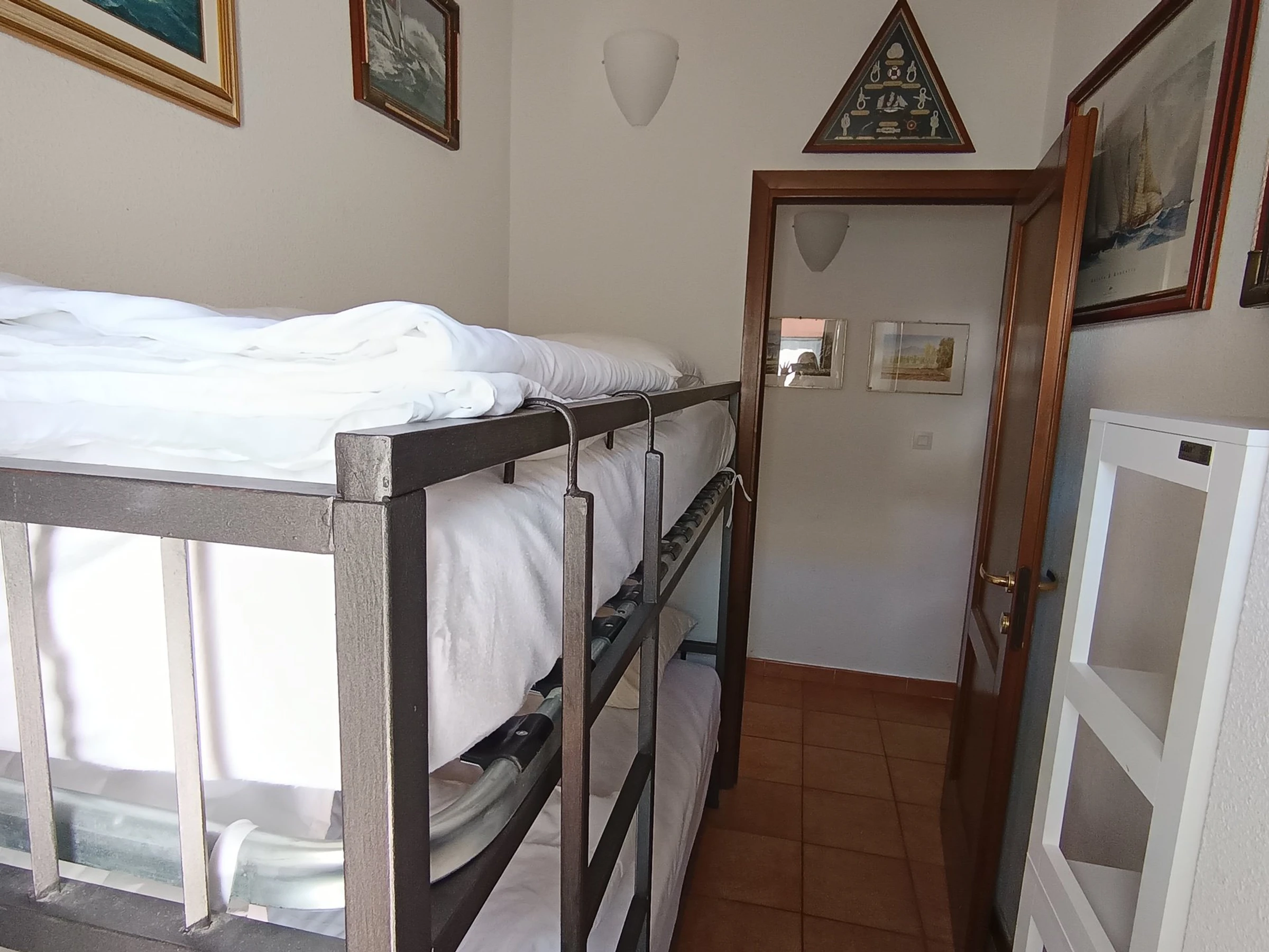 Habitación pequeña: 2 literas individuales + estanterías + ventana.