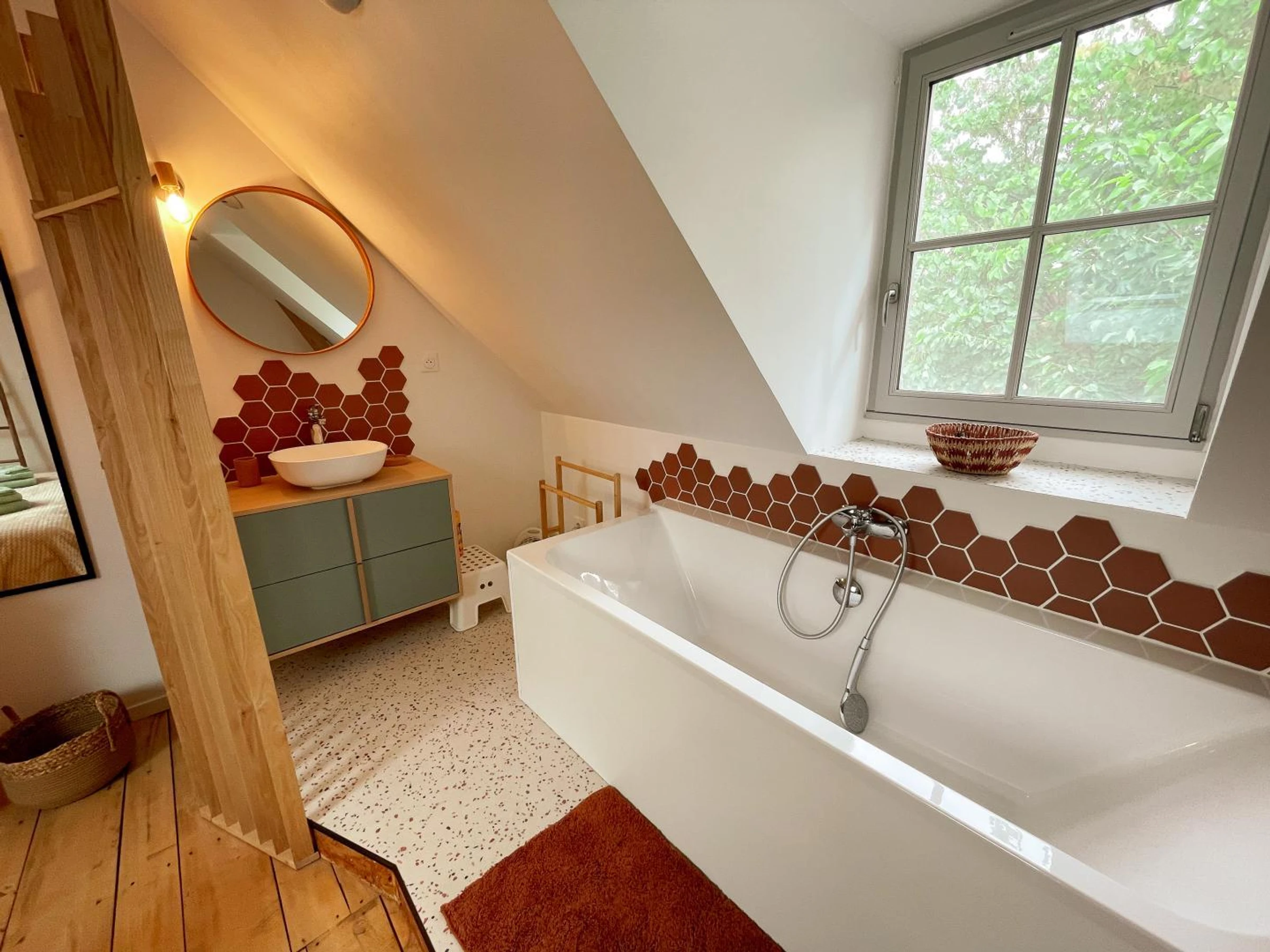 Casa rural con todo incluido (excepto impuesto turístico). Planta baja: entrada, aseo independiente, salón, cocina totalmente equipada (cafetera exprés, cafetera de filtro, cocina de 5 fuegos, etc.) con zona de lavandería (lavadora), baño con ducha, terraza-comedor, dormitorio (cama de 160 x 200 cm). Planta alta: salón con TV, consolas PlayStation y Wii, dormitorio infantil o para adultos (cama de 90 x 200 cm) con muchos juguetes, dormitorio (cama de 160 x 200 cm) con baño abierto (bañera y WC). Calefacción incluida en el precio. Jardín privado y cerrado, juegos al aire libre (ping-pong, etc.), aparcamiento para 3 vehículos. Alojamiento para no fumadores. Con una ubicación privilegiada entre Tours, la capital de Touraine, y Amboise, una ciudad imprescindible de nuestra región, y cerca de los más bellos castillos renacentistas, su casa rural ofrece todos los ingredientes para unas vacaciones inolvidables: decoración refinada, gastronomía exquisita, comidas en la terraza o a la sombra bajo el refrescante follaje de los árboles del jardín, un piano para los amantes de la música en el acogedor salón y un famoso viñedo cercano, Montlouis, que deleita a cualquier amante del vino con sus finas burbujas y diversas variedades de uva que reflejan una experiencia centenaria. Entre el Valle del Loira y el Valle del Cher, abundan las rutas de ciclismo y senderismo, a menos que prefiera un paseo en canoa o un paseo en barco tradicional. Maravillas como Chenonceau, Azay-le-Rideau, Villandry, Loches, Chinon y Langeais, así como Chaumont-sur-Loire, Chambord y, por supuesto, el zoológico de Beauval, están a poca distancia. El precio no incluye: NO SE PERMITE CARGAR SU VEHÍCULO ELÉCTRICO EN ESTE ALOJAMIENTO.