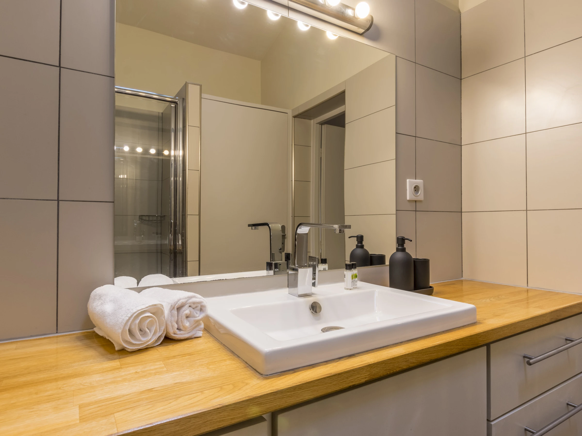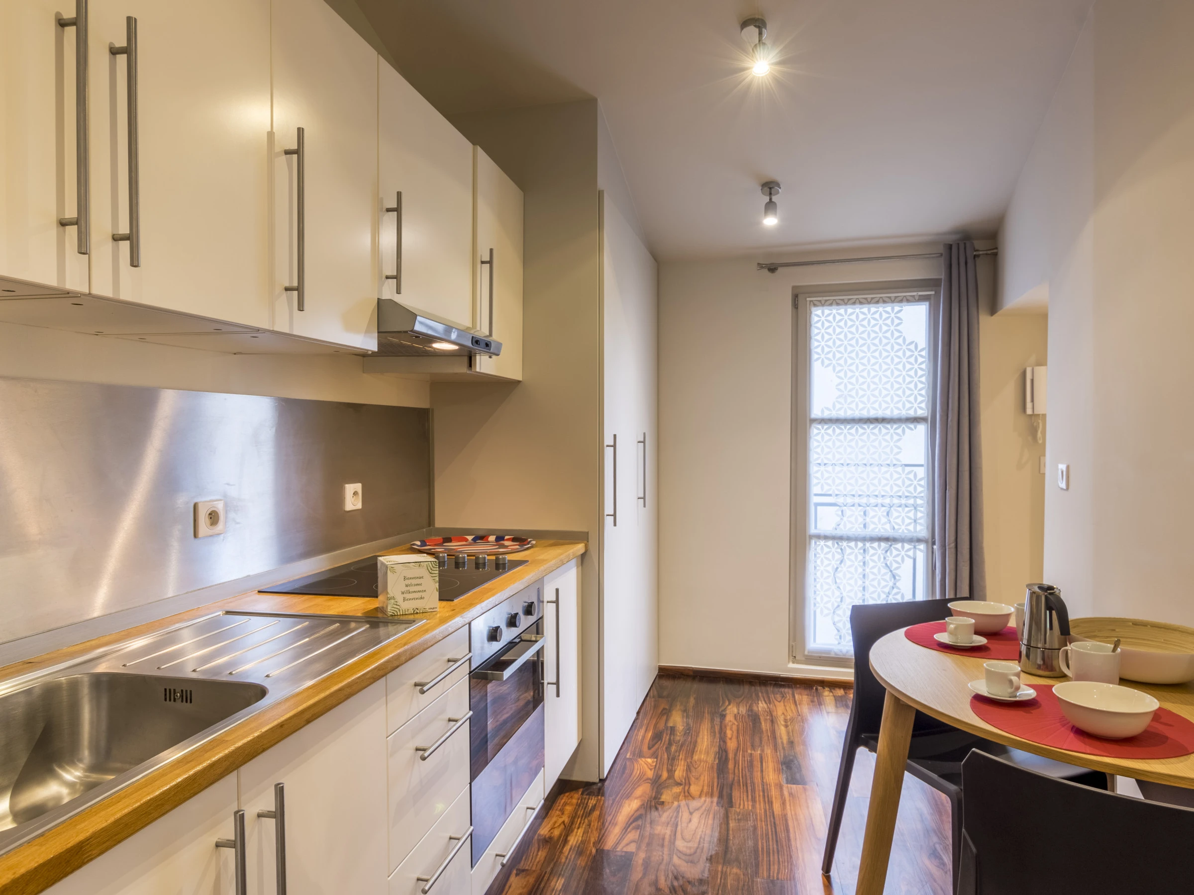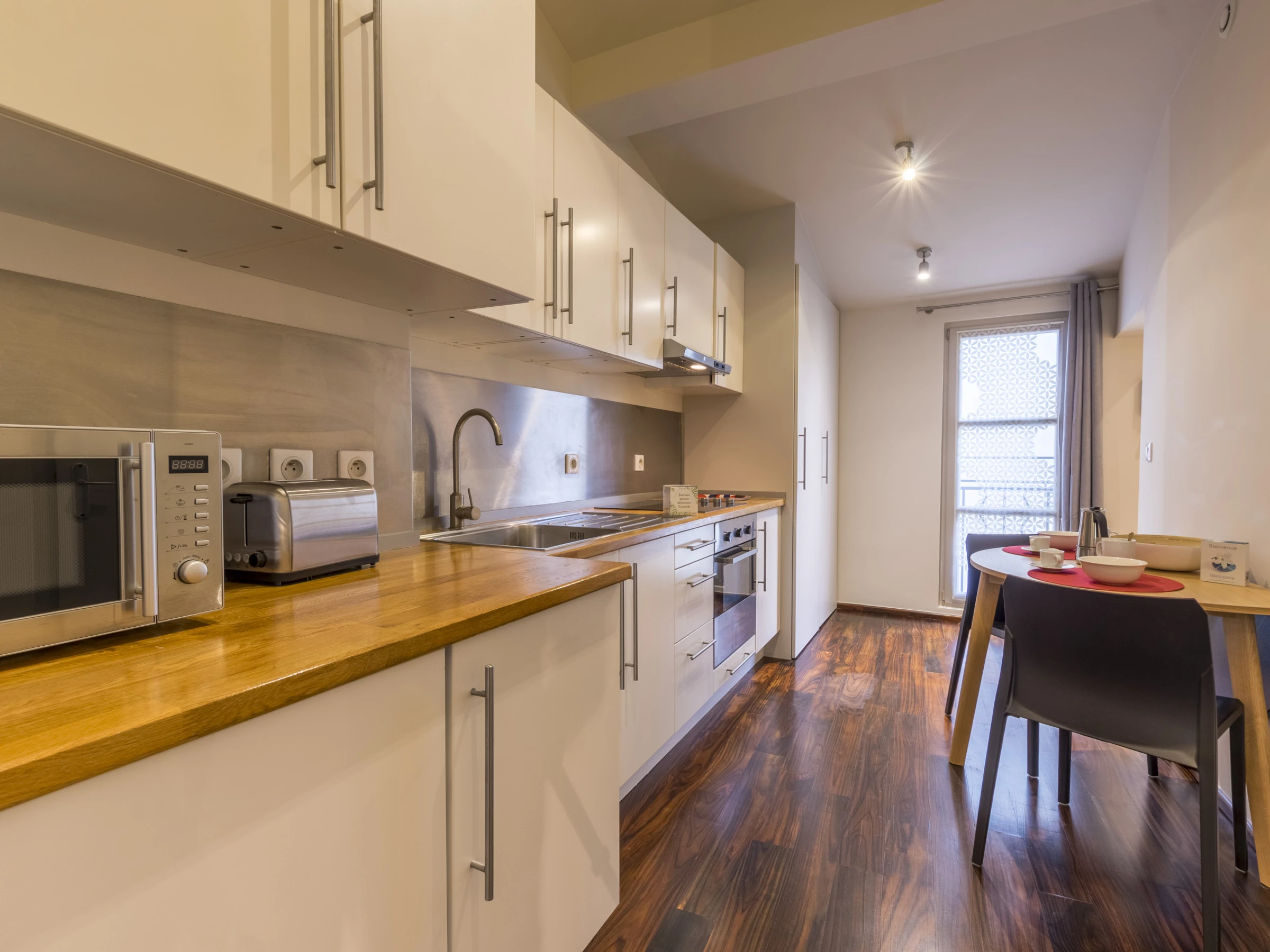 L'autre partie du logement est dédié à une spacieuse cuisine américaine entièrement équipée avec des équipements de qualité.