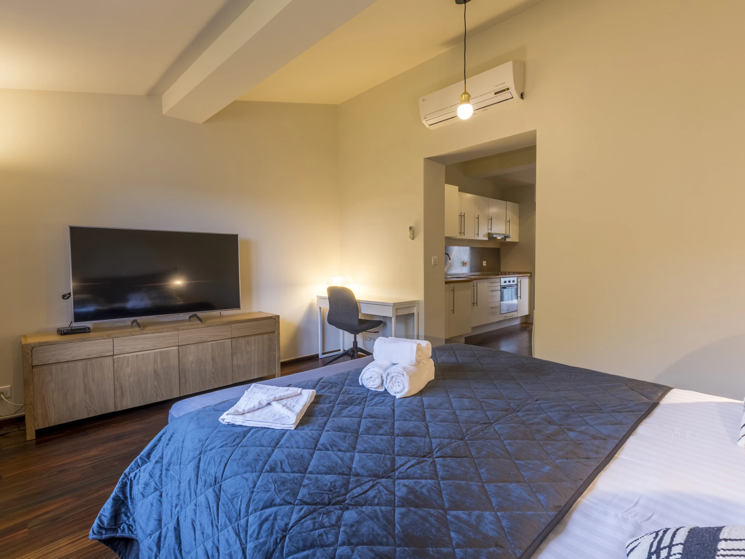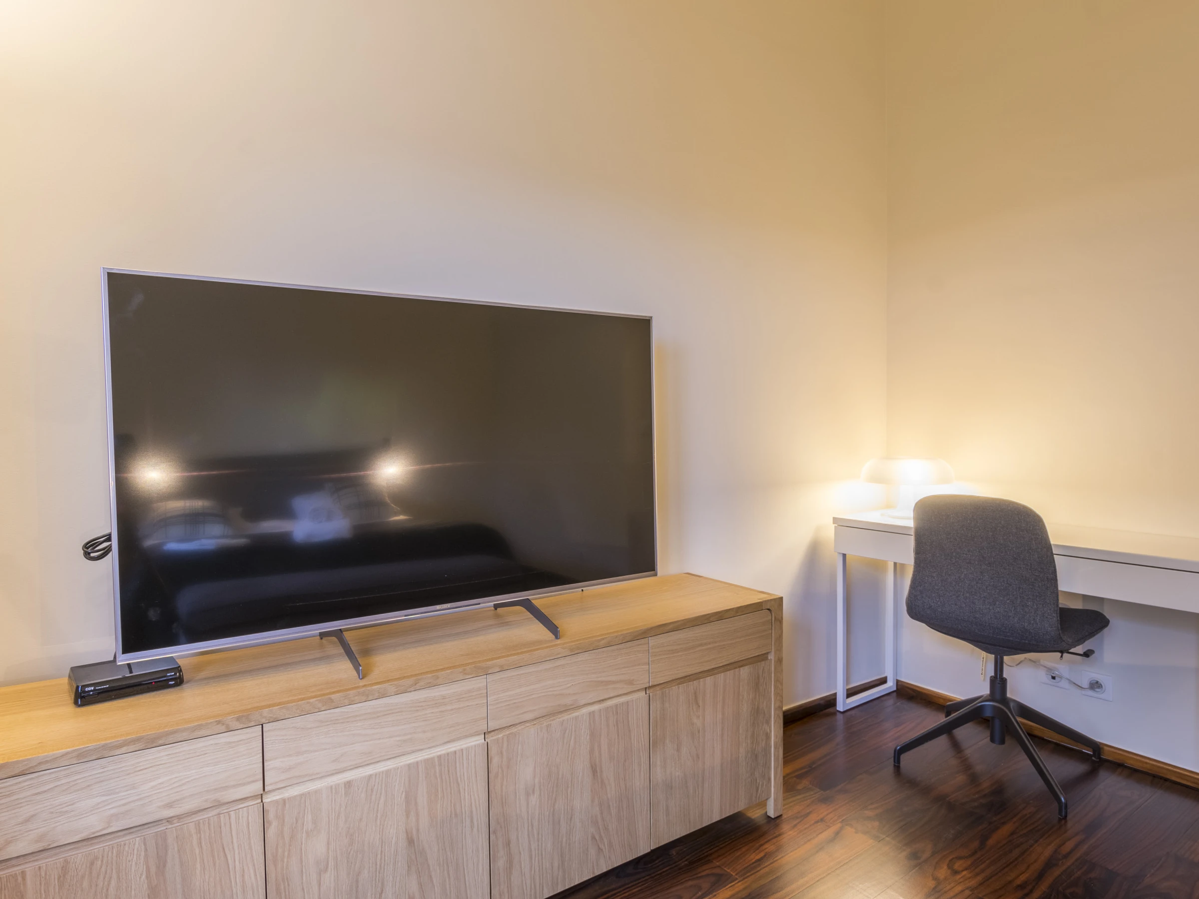 Ce logement a été intelligemment séparé en 2 sections afin de bénéficier d'une grande chambre très lumineuse, équipée d'une télévision écran plate et d'un coin bureau, idéal pour le télétravail, formations à distances, révisions...
