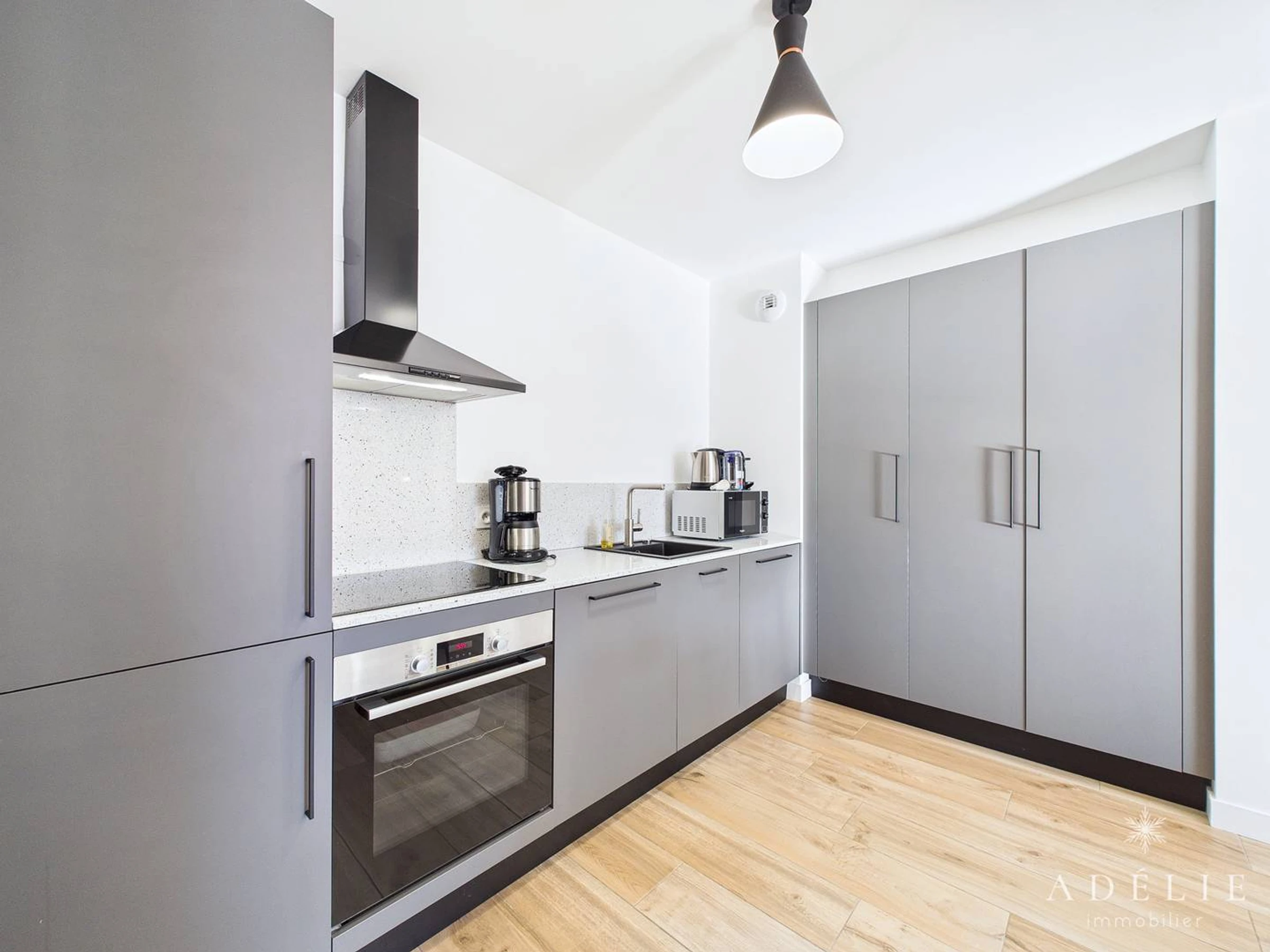 - Electrodomésticos: horno. Microondas, placa de inducción, nevera grande con congelador, cafetera Nespresso, hervidor de agua, tostadora, lavadora/secadora