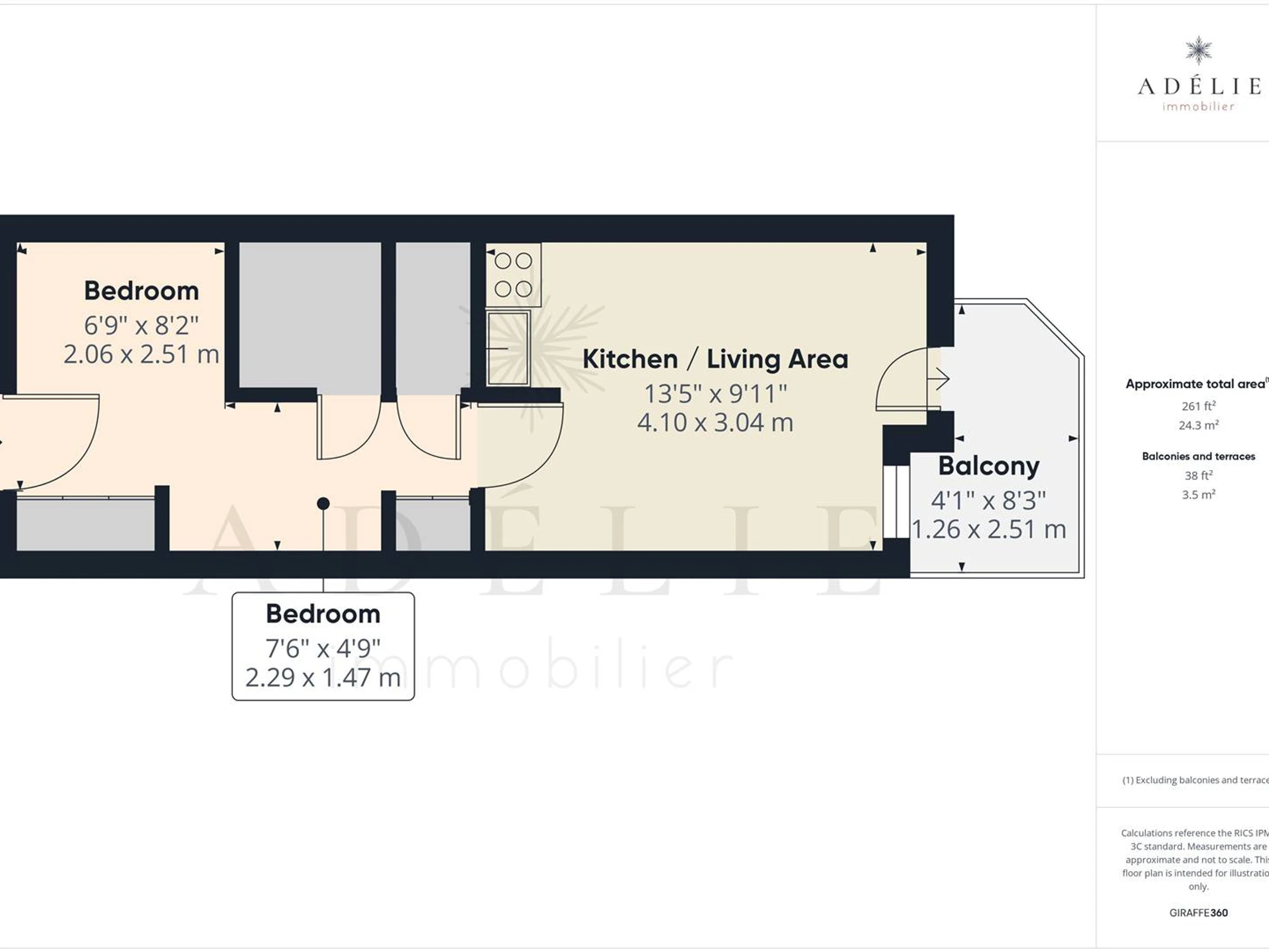 BQA017: CABAÑA ESTUDIO de 2 estrellas de 26 m² para 4/5 personas, ubicada en la 1.ª planta.