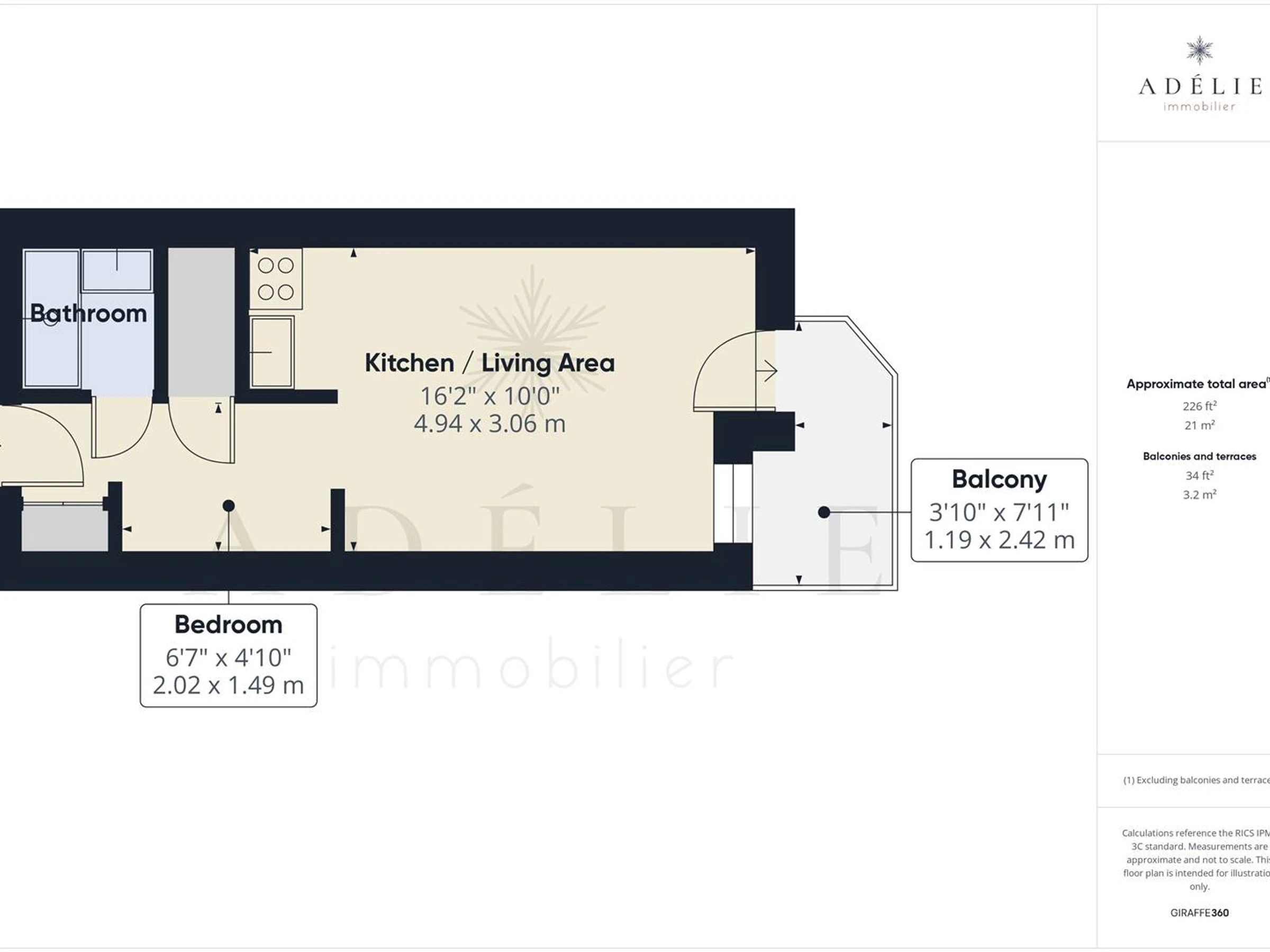BQA019: Estudio de 22 m² recientemente renovado para 4 personas, ubicado en la planta baja elevada. Calificación 2*.