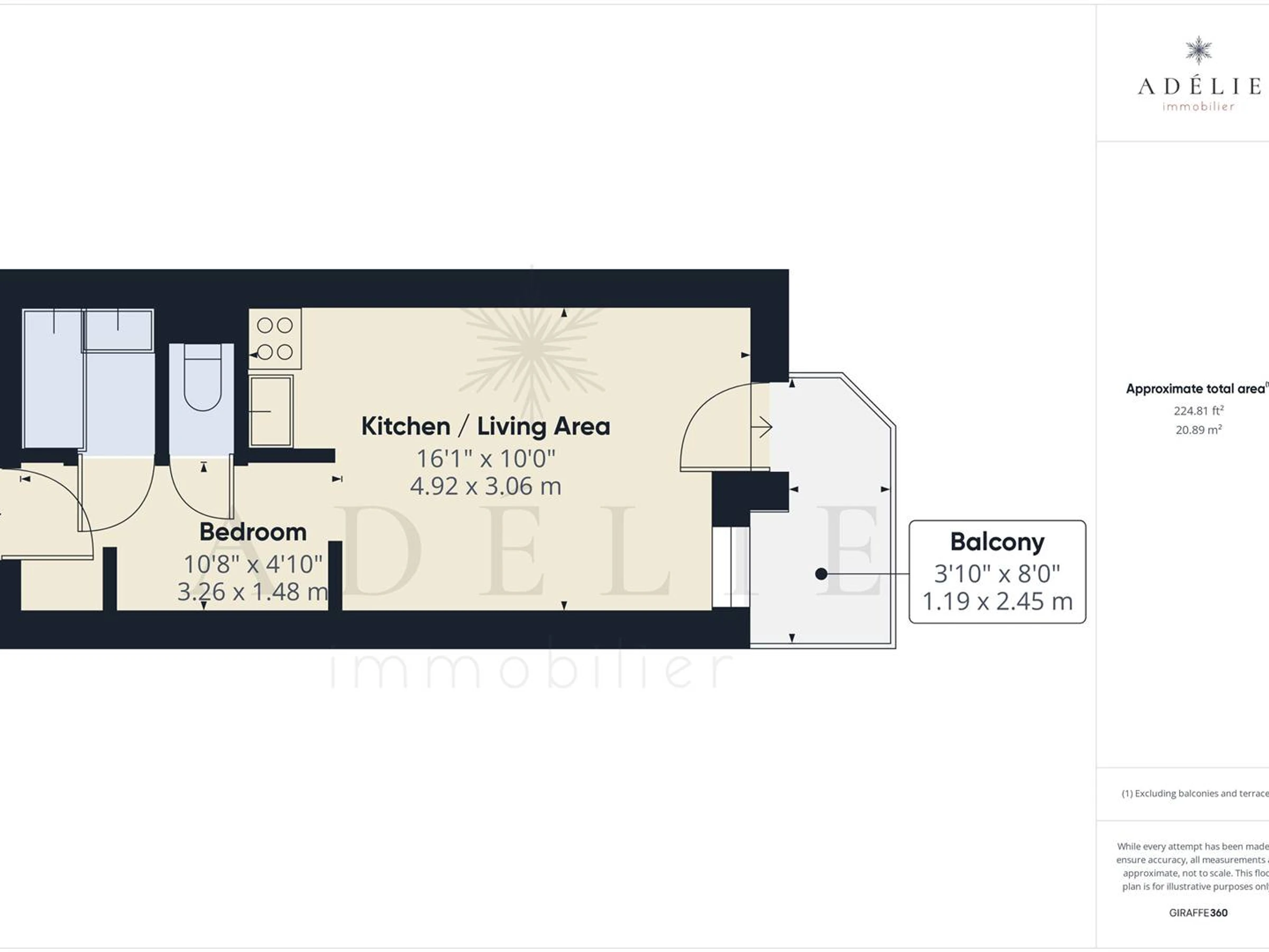 BQA220: Estudio de 22 m² para 4 personas, ubicado en la 2.ª planta. 2 estrellas.