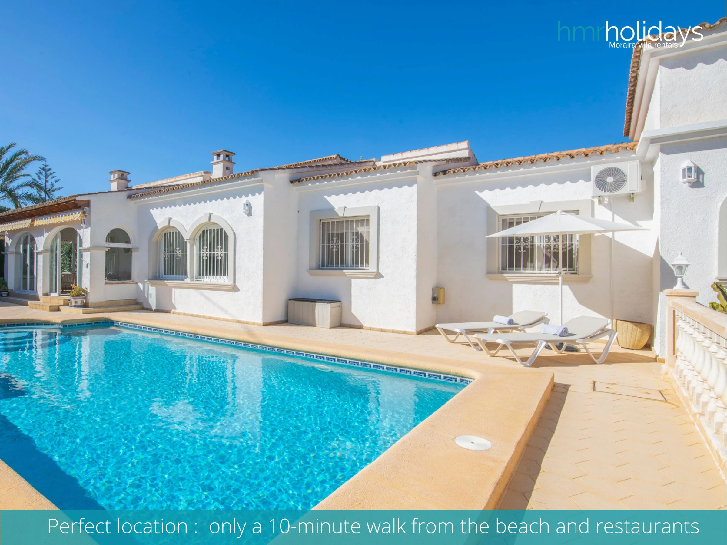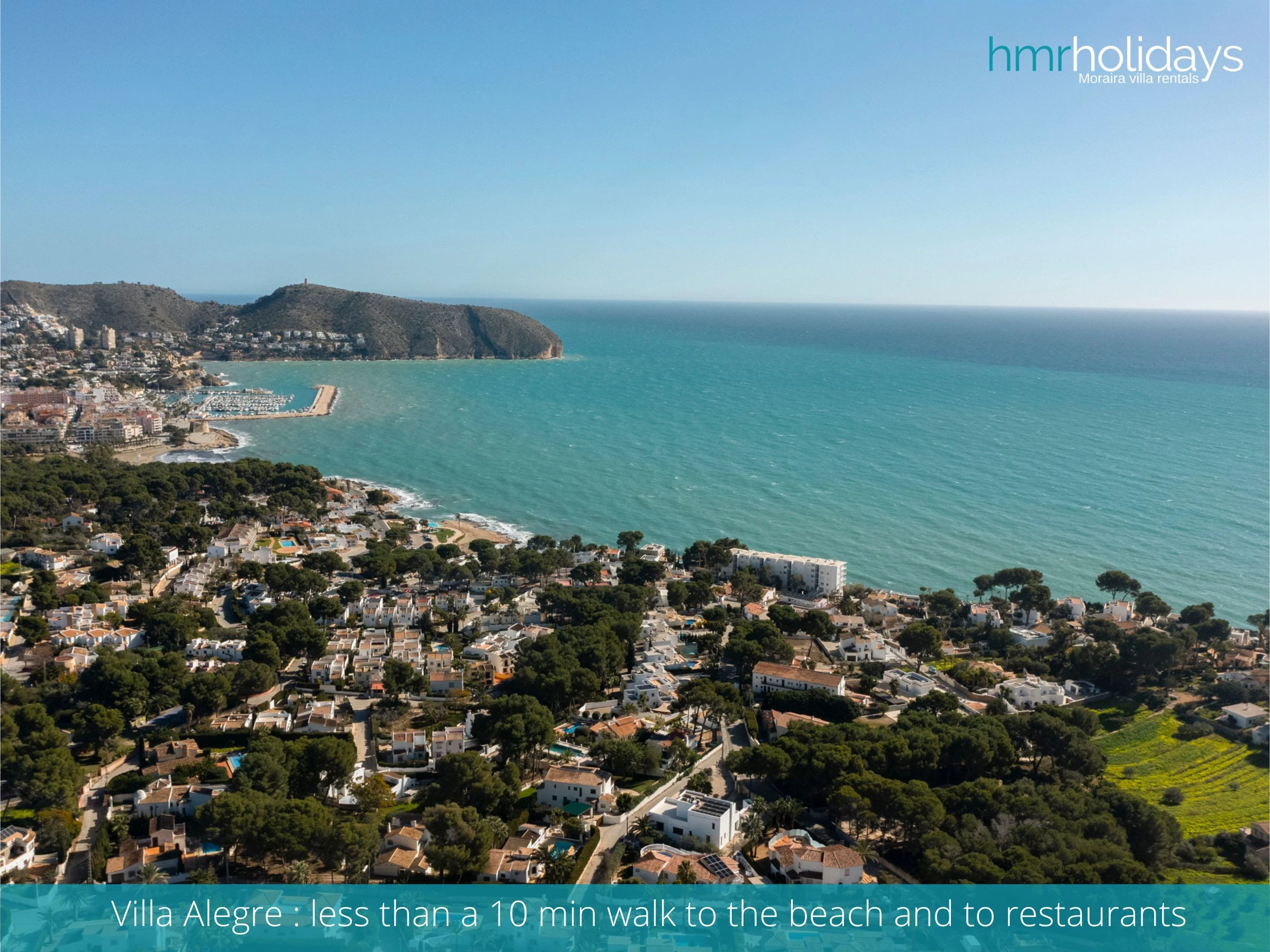 Con la playa a poca distancia y los restaurantes, tiendas y el puerto deportivo de Moraira muy cerca, Villa Alegre es un alquiler vacacional en Moraira muy bien ubicado para quienes desean disfrutar tanto de la costa como del pueblo sin necesidad de usar el coche.