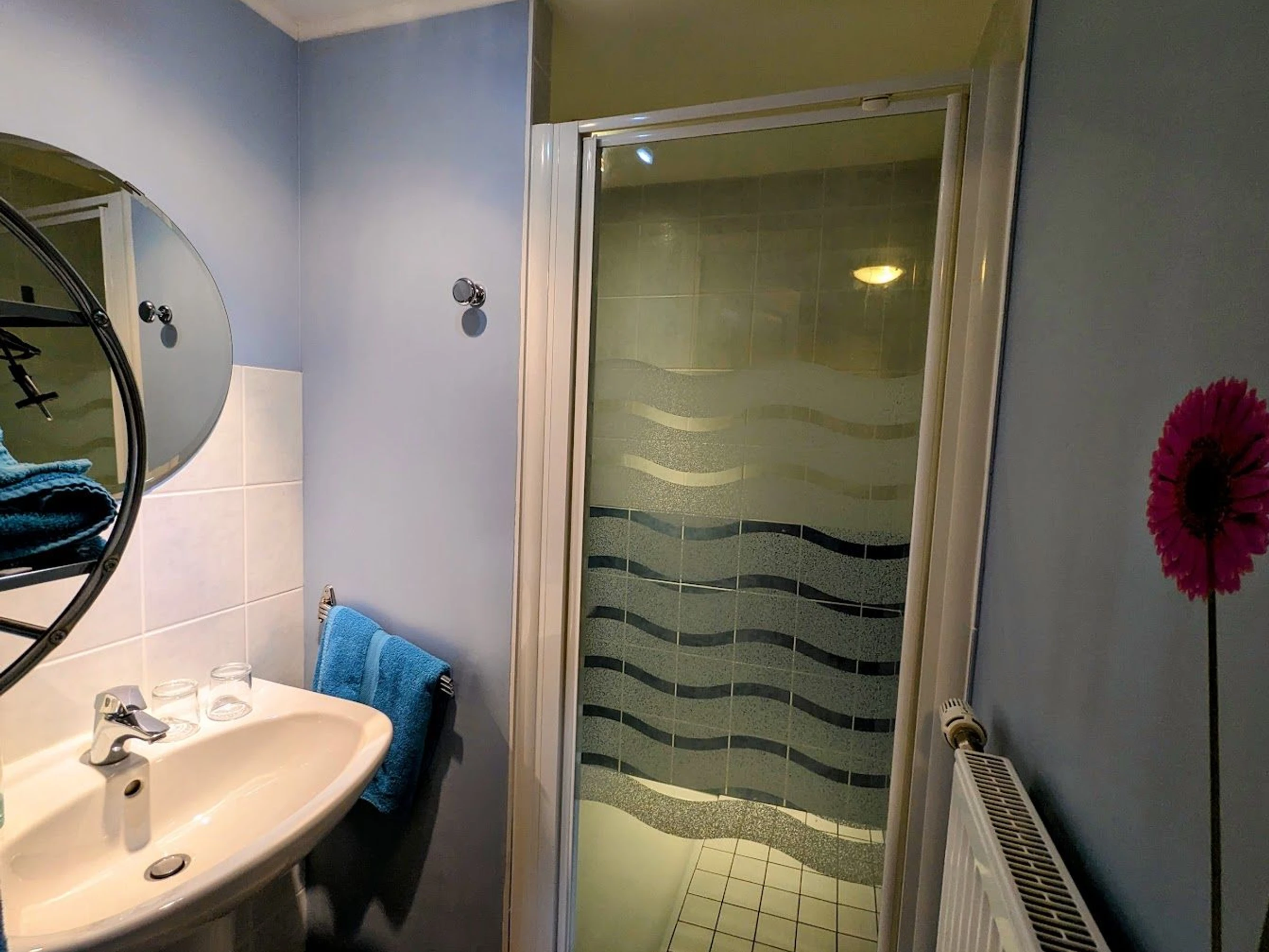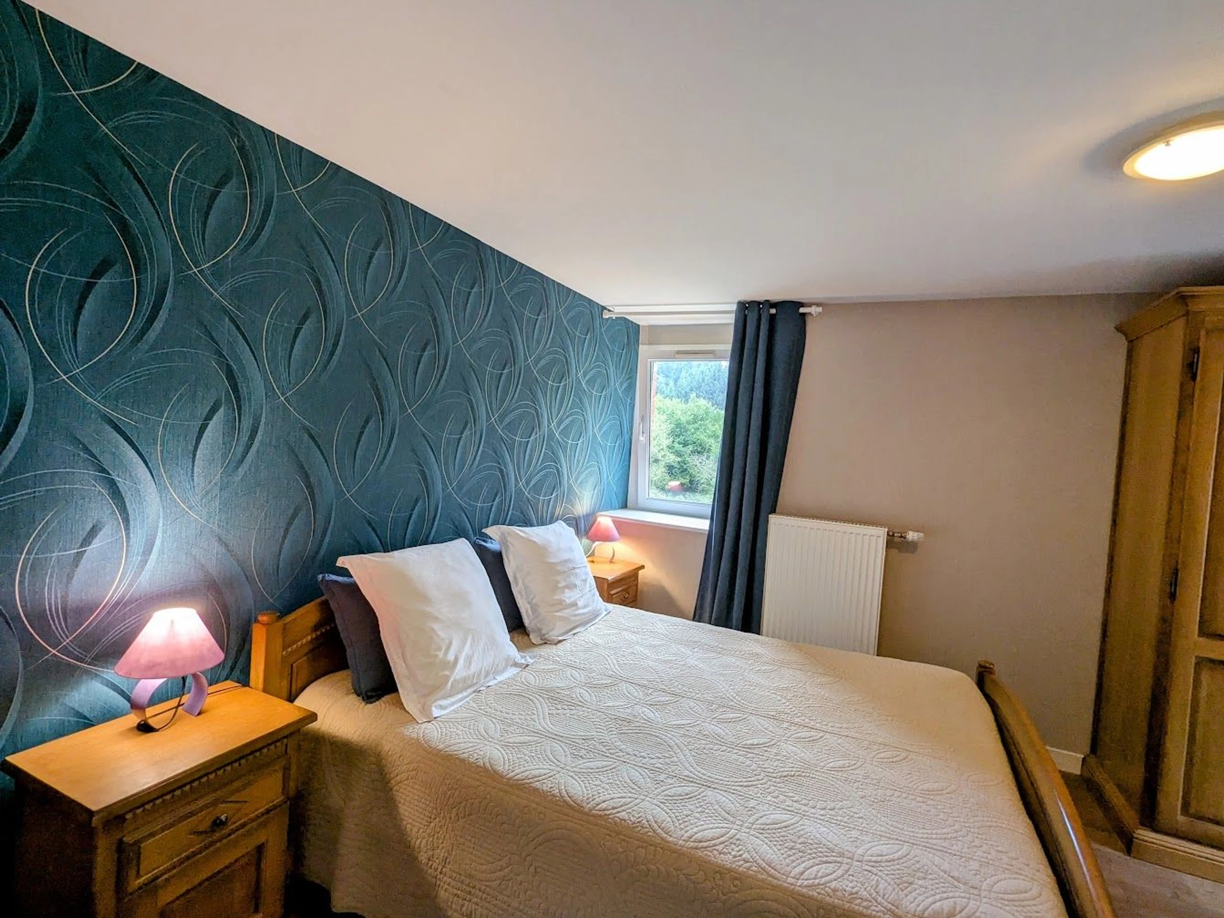 La habitación Iris cuenta con una cama de 160 x 200 cm, baño contiguo y aseo independiente.