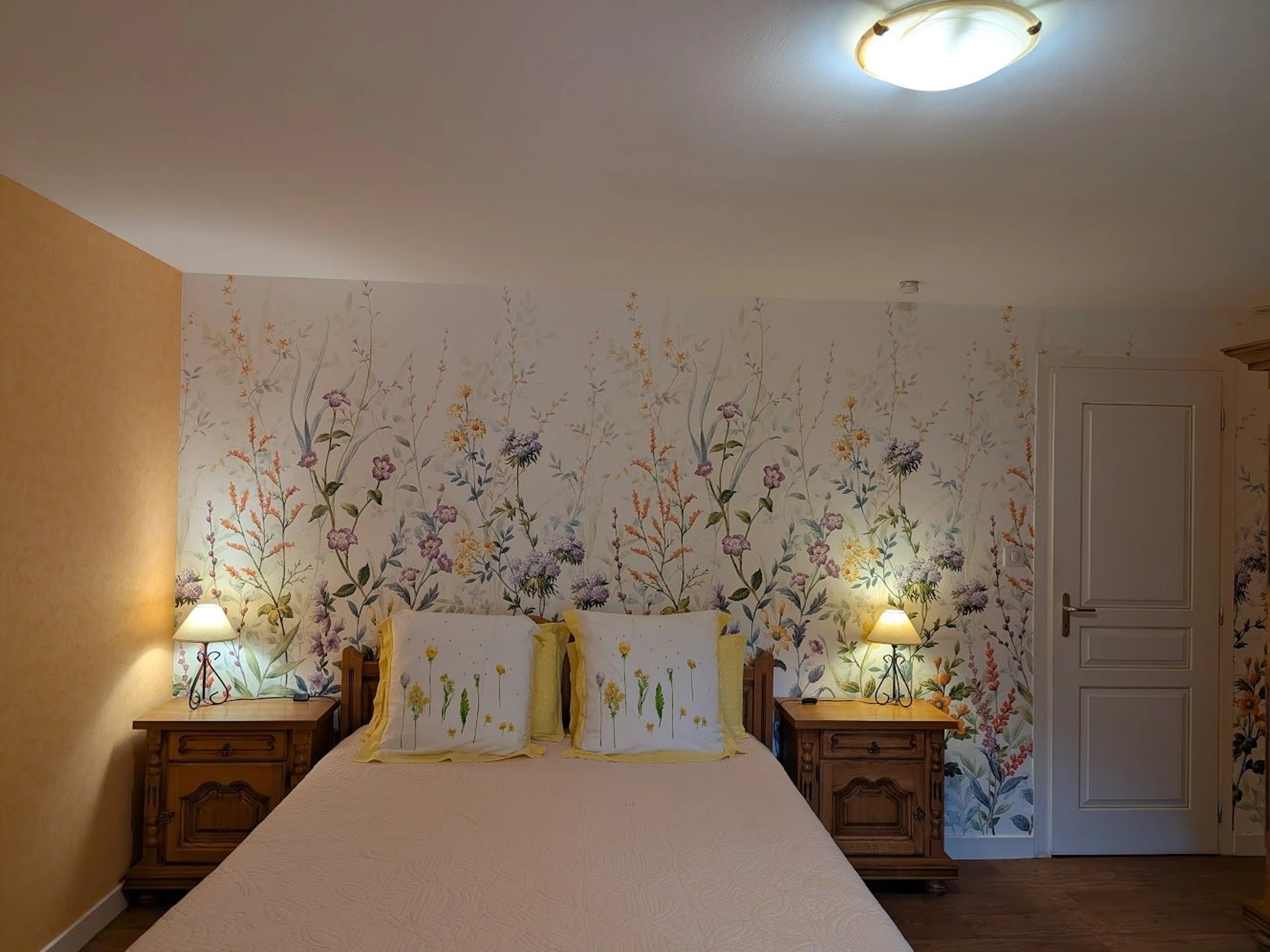 La habitación Jonquille, para 3 personas, consta de una cama de 160 x 200 cm y una cama de 90 x 190 cm, con baño contiguo y aseo independiente.