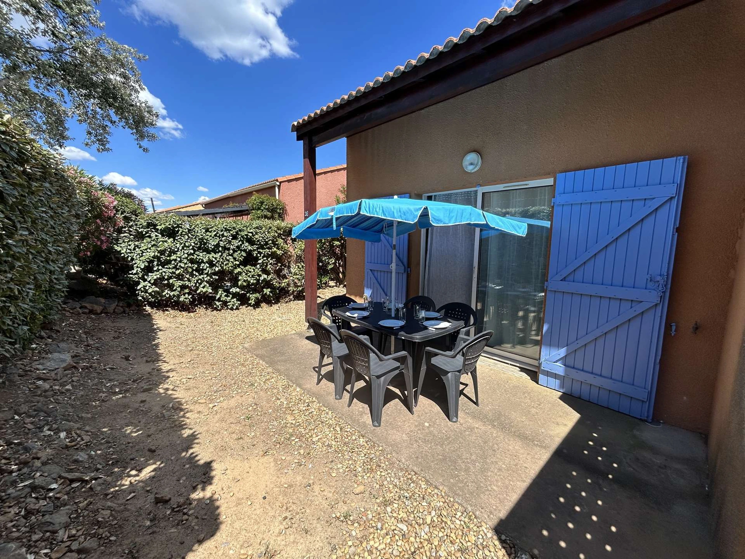 Descubra esta encantadora casa de vacaciones ubicada en una tranquila residencia con piscina compartida. La planta baja ofrece un cómodo salón con sofá y televisión, una práctica cocina americana y un dormitorio con cama doble. Un baño con ducha y WC completa esta planta.