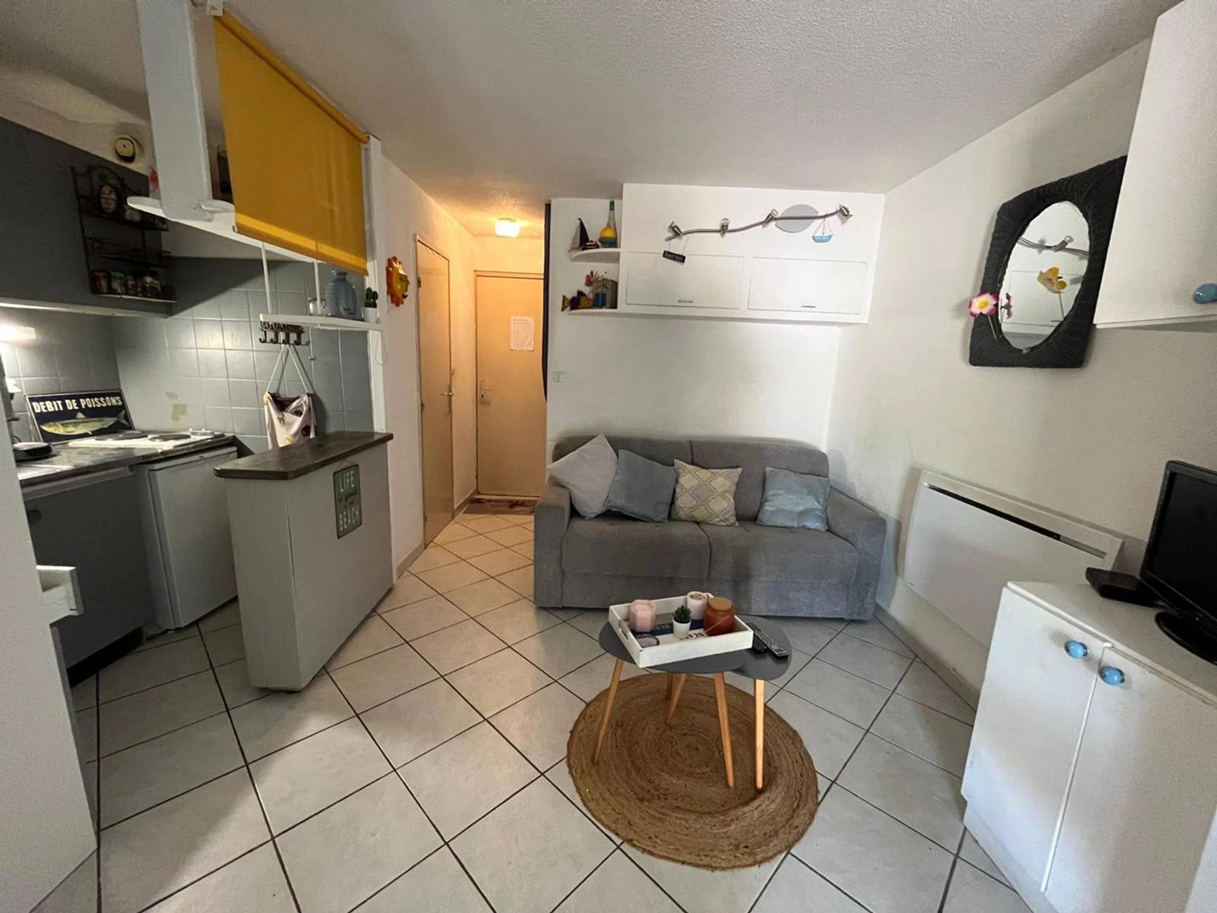 Residencia situada cerca de los comercios y de la playa, este apartamento consta de una habitación principal con sofá cama para 2 personas, televisión y zona de cocina equipada: vitrocerámica, frigorífico top, microondas, zona de comedor. En la entrada tienes una cama alta para 1 persona. El apartamento también dispone de un dormitorio con cama de matrimonio para 2 personas con trastero. ¡También tendrás acceso a una agradable terraza para disfrutar de tus comidas y del sol!