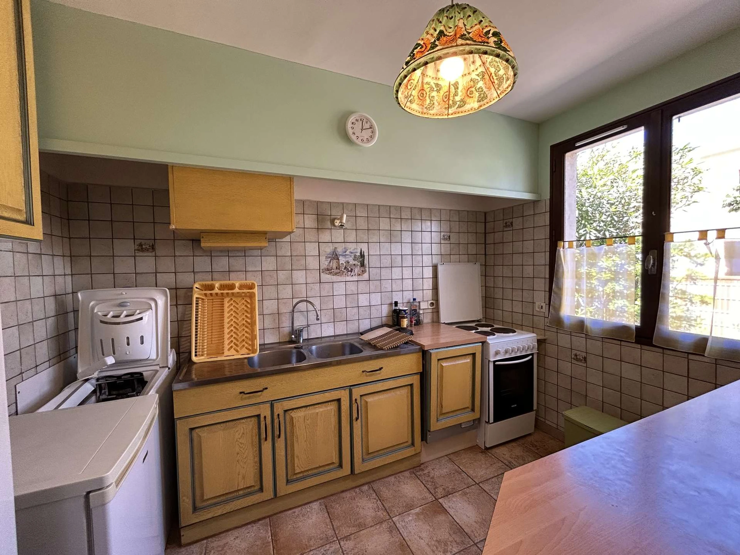 Se compone de una sala de estar, que da a una terraza, una cocina equipada, dos dormitorios cada uno con una cama doble (2x140*) y un baño con WC.