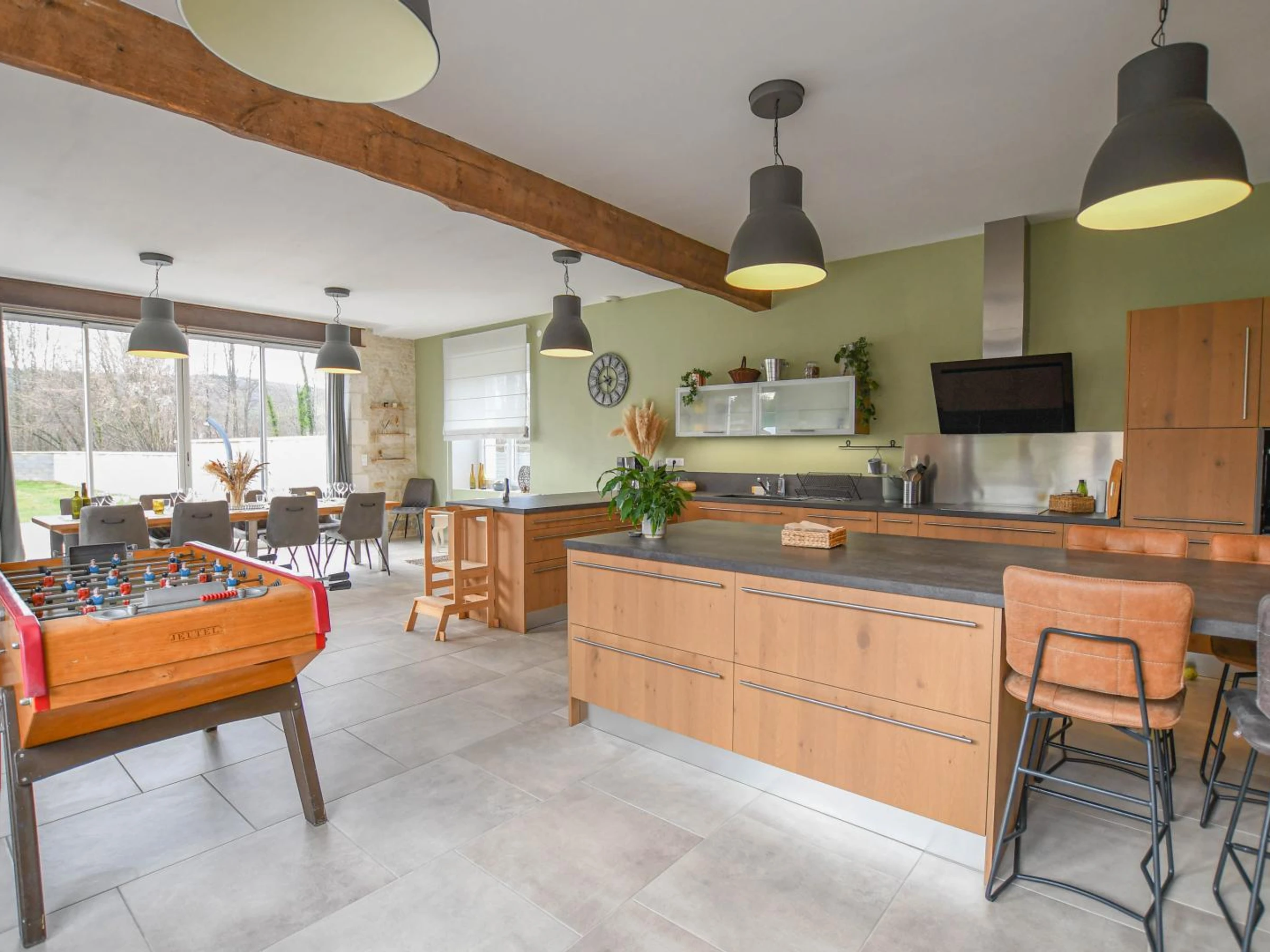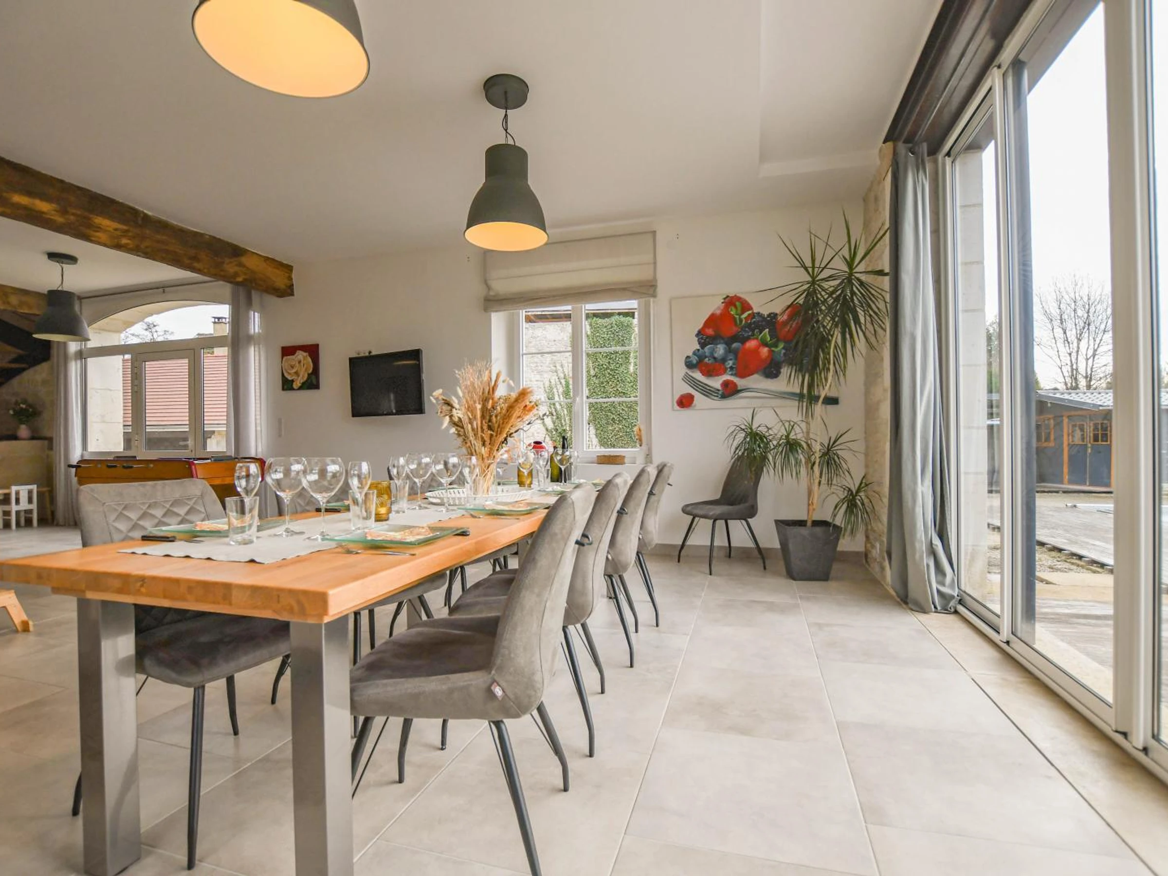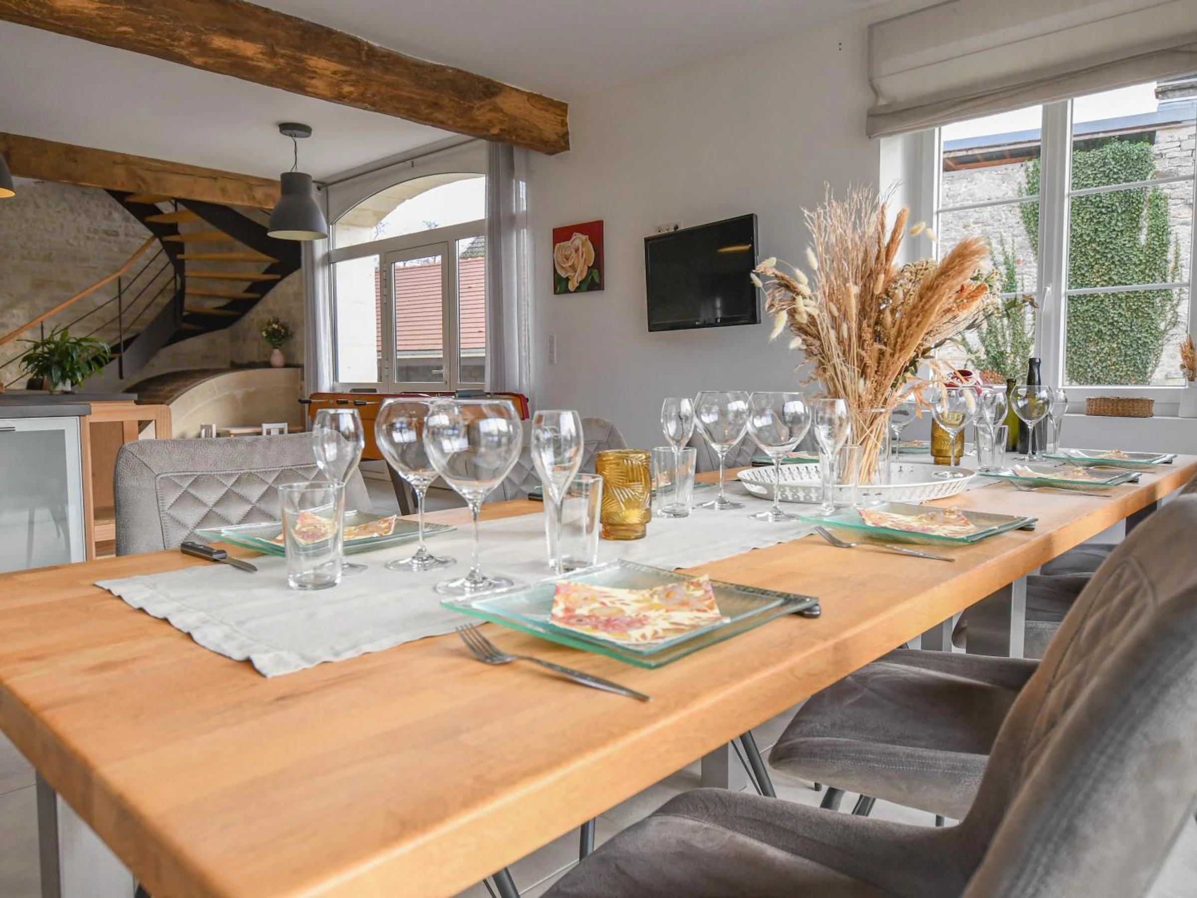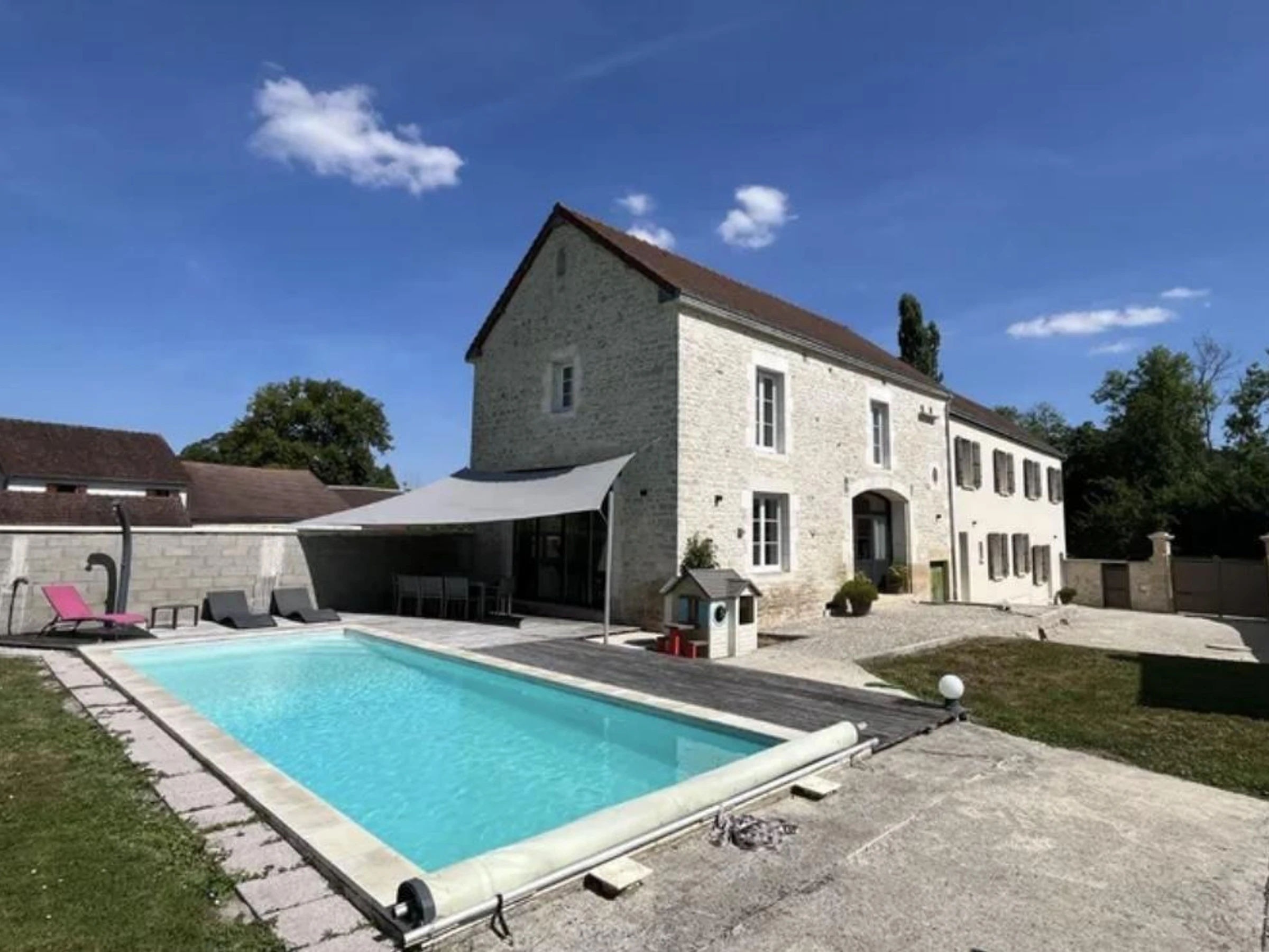 En la planta baja: salón con cocina totalmente equipada, comedor, rincón de relax, futbolín, lavadero y aseo. En la planta alta: salón con televisión y biblioteca, suite principal (vestidor, bañera, ducha y lavabo), dormitorio infantil con cuatro camas de 90x200 cm (incluidas dos literas) y dos dormitorios dobles con sofás cama para huéspedes adicionales. Cuarto de ducha (ducha e inodoro). En el exterior, disfrutará de una piscina privada sin climatizar (1,50 m de profundidad / 10x3 m) abierta de mediados de mayo a mediados de septiembre (si el tiempo lo permite), equipada con cubierta de seguridad, terraza con tumbonas, muebles de jardín y zona de relax, columpio, cama elástica, aparcamiento cubierto y un jardín completamente cerrado con acceso al río. Para mejorar su estancia, las camas estarán hechas a su llegada, se proporcionan toallas y sábanas, y la calefacción, la electricidad y la limpieza de final de estancia están incluidas. No se permiten fiestas ni reuniones. En el corazón de un encantador pueblo vinícola, a las puertas de Borgoña, a 45 minutos de Troyes, disfrute de una escapada inolvidable en esta magnífica, espaciosa y encantadora casa de piedra, ideal para hasta 10 personas. Aquí se combinan la autenticidad y el confort moderno para unas vacaciones relajantes con amigos o familia. El diseño interior ha sido cuidadosamente pensado: elegancia refinada, líneas limpias y tonos naturales crean un ambiente relajante y luminoso, perfecto para todas las estaciones. Tendrá la opción de programar una cata de champán o una visita a la bodega previa reserva.