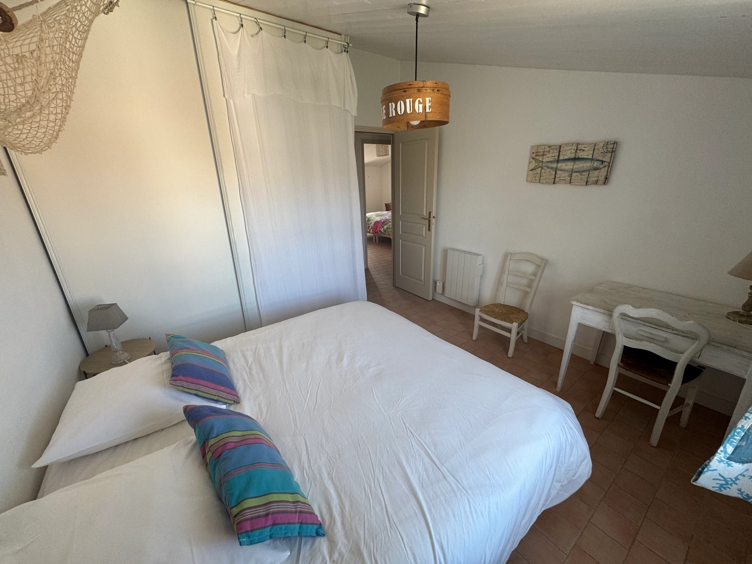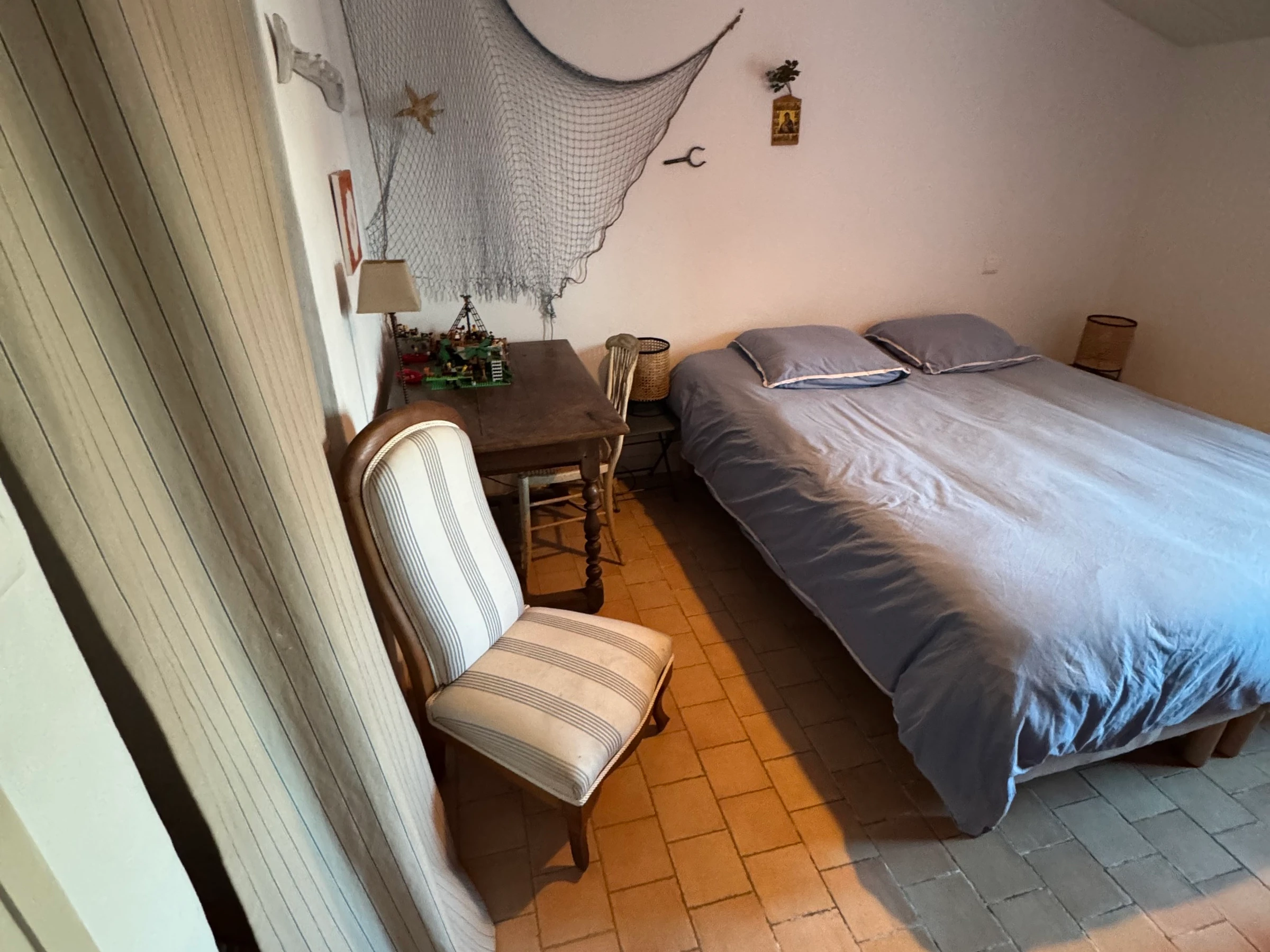 Cómoda y espaciosa casa de dos plantas (aproximadamente 160 m²) con capacidad para 10 personas. La planta baja consta de salón-comedor con chimenea, cocina totalmente equipada, dormitorio 1 con cama de matrimonio (160 cm), dormitorio 2 con dos literas individuales (90 cm), baño, aseo independiente, sala de juegos/TV y lavadero. En la planta superior se encuentran el dormitorio 3 con dos camas individuales (80 cm, convertibles en cama de matrimonio), el dormitorio 4 con cama de matrimonio (160 cm), el dormitorio 5 con dos camas individuales (90 cm), baño y aseo independiente. Dispone de placa de inducción, horno, microondas, lavavajillas, frigorífico/congelador, procesador de alimentos, lavadora, secadora, televisión y wifi gratuito. También incluye trona, cuna de viaje y cambiador para bebés. Jardín cerrado con 2 terrazas, 2 conjuntos de muebles de jardín, sombrilla, barbacoa, plancha, 8 tumbonas, mesa de ping-pong y ducha exterior con agua caliente y fría. Aparcamiento en la calle. No se admiten mascotas. Servicio de limpieza disponible por 200 €.