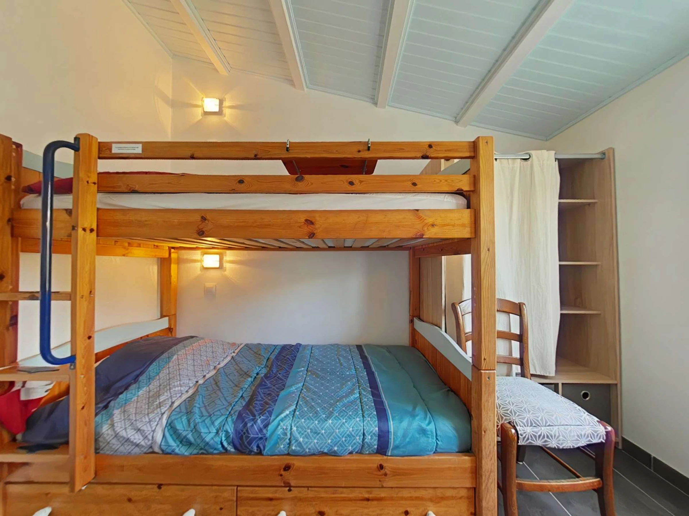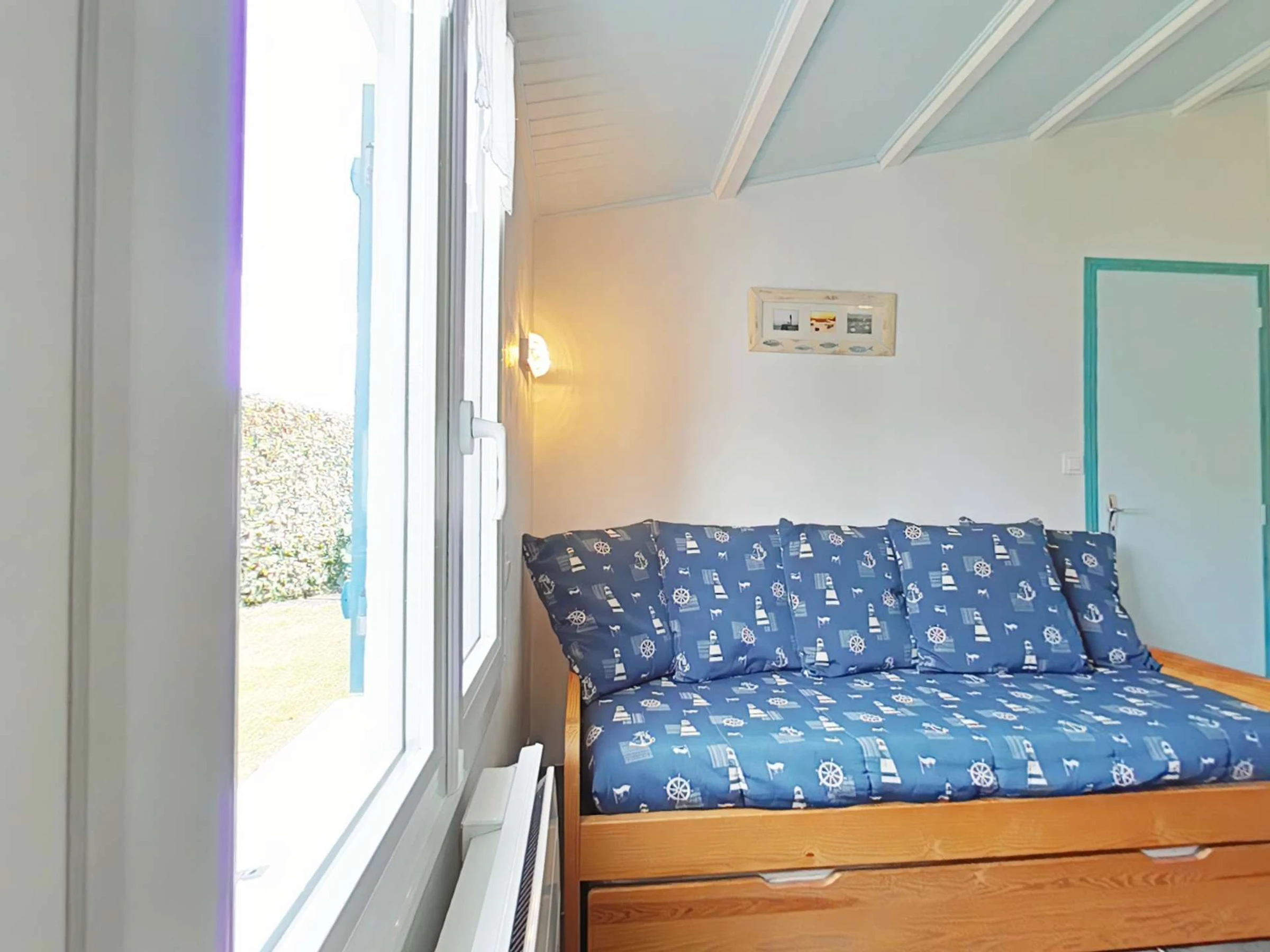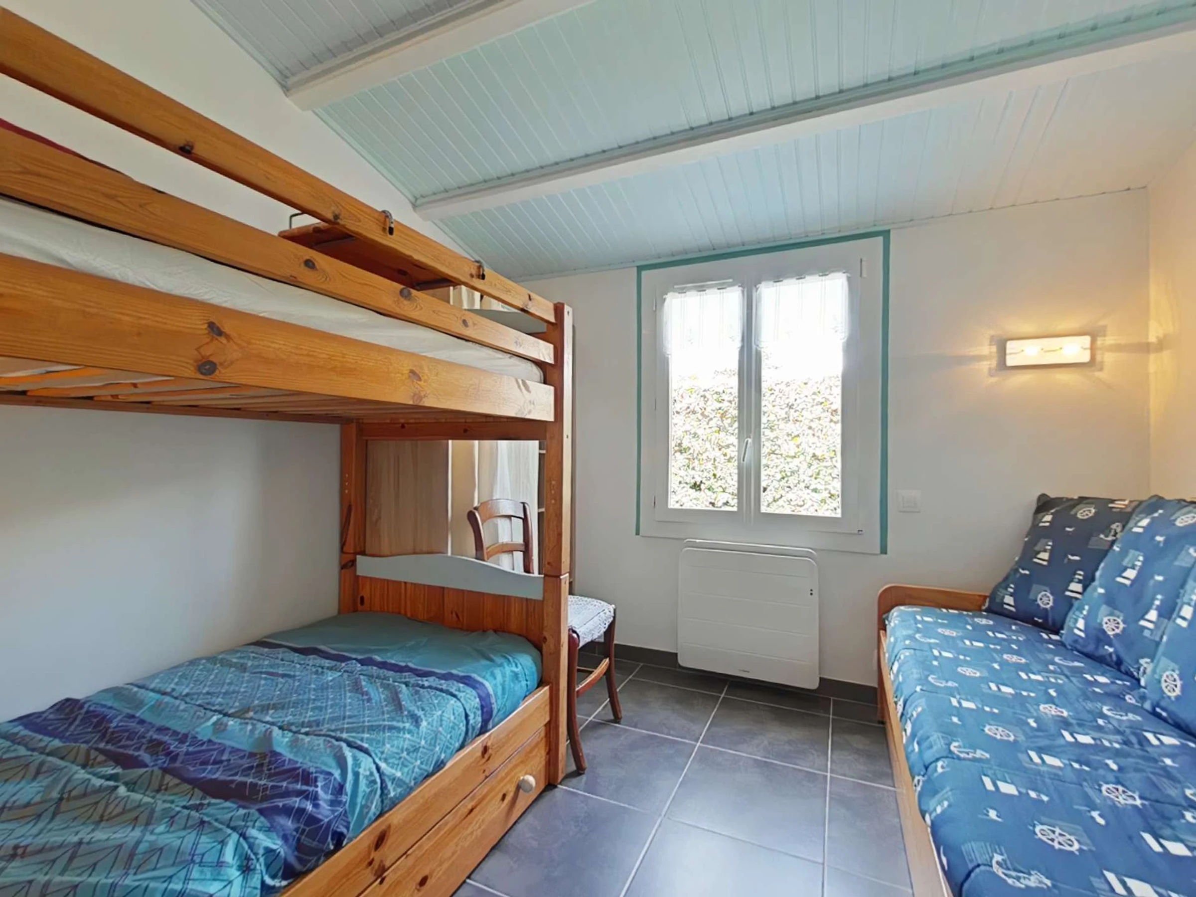 A sólo 600 m de la playa de Sableaux, descubra esta encantadora casa de vacaciones, ¡ideal para sus escapadas! Ofrece una cocina abierta totalmente equipada, un luminoso salón con acceso directo a una agradable terraza, un dormitorio con cama de matrimonio y televisión, así como un acogedor dormitorio con dos literas y una cama individual. También apreciará el moderno cuarto de baño y el WC separado.