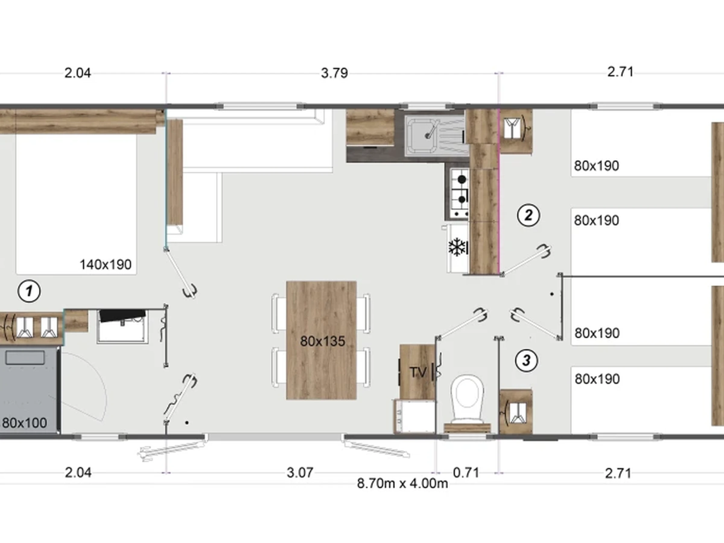 Cámping Nonette-Orsonnette-Nonette, 3 dormitorios, 8 personas - API-1-52-2687