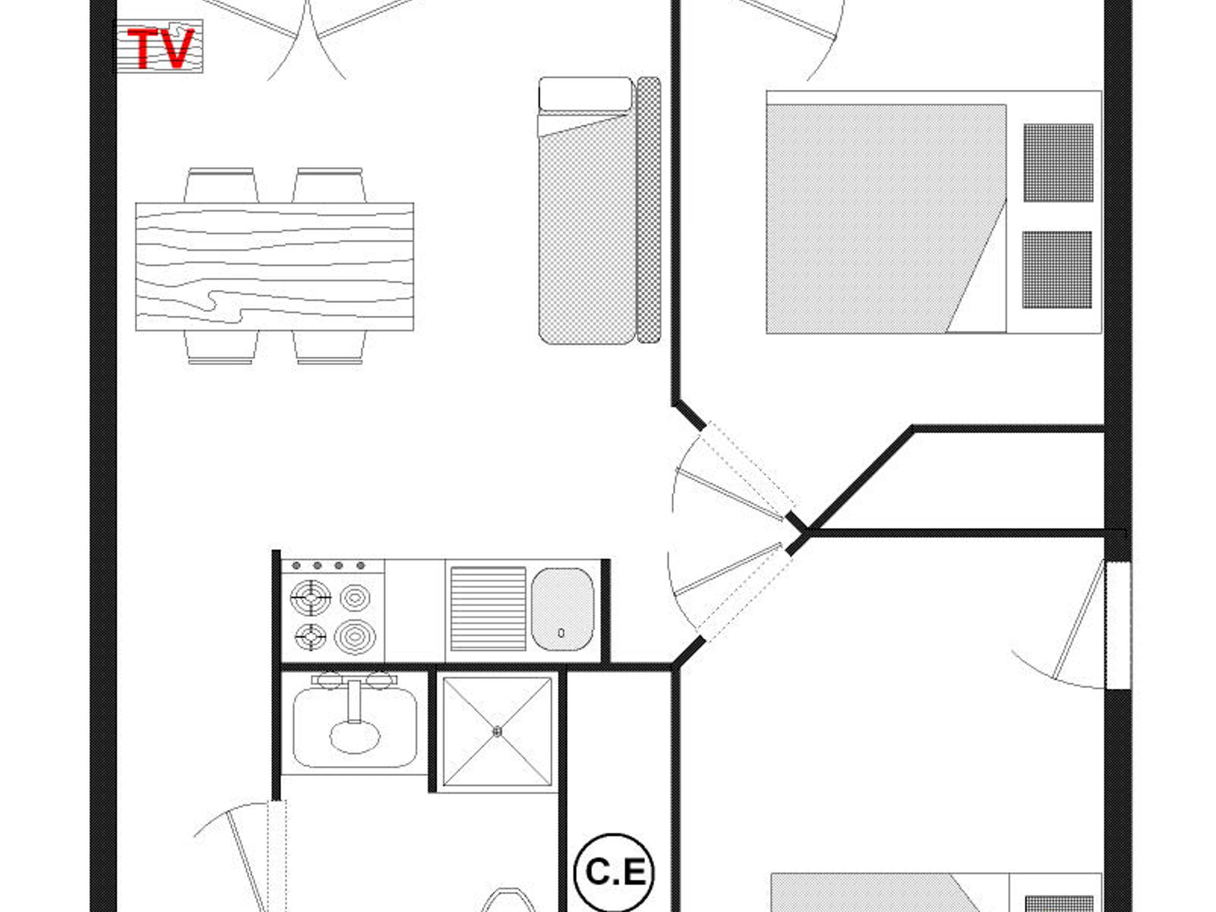 Apartamento de 33 m² para seis personas, ubicado en la planta baja de una residencia a pie de pistas de Espace Diamant.
