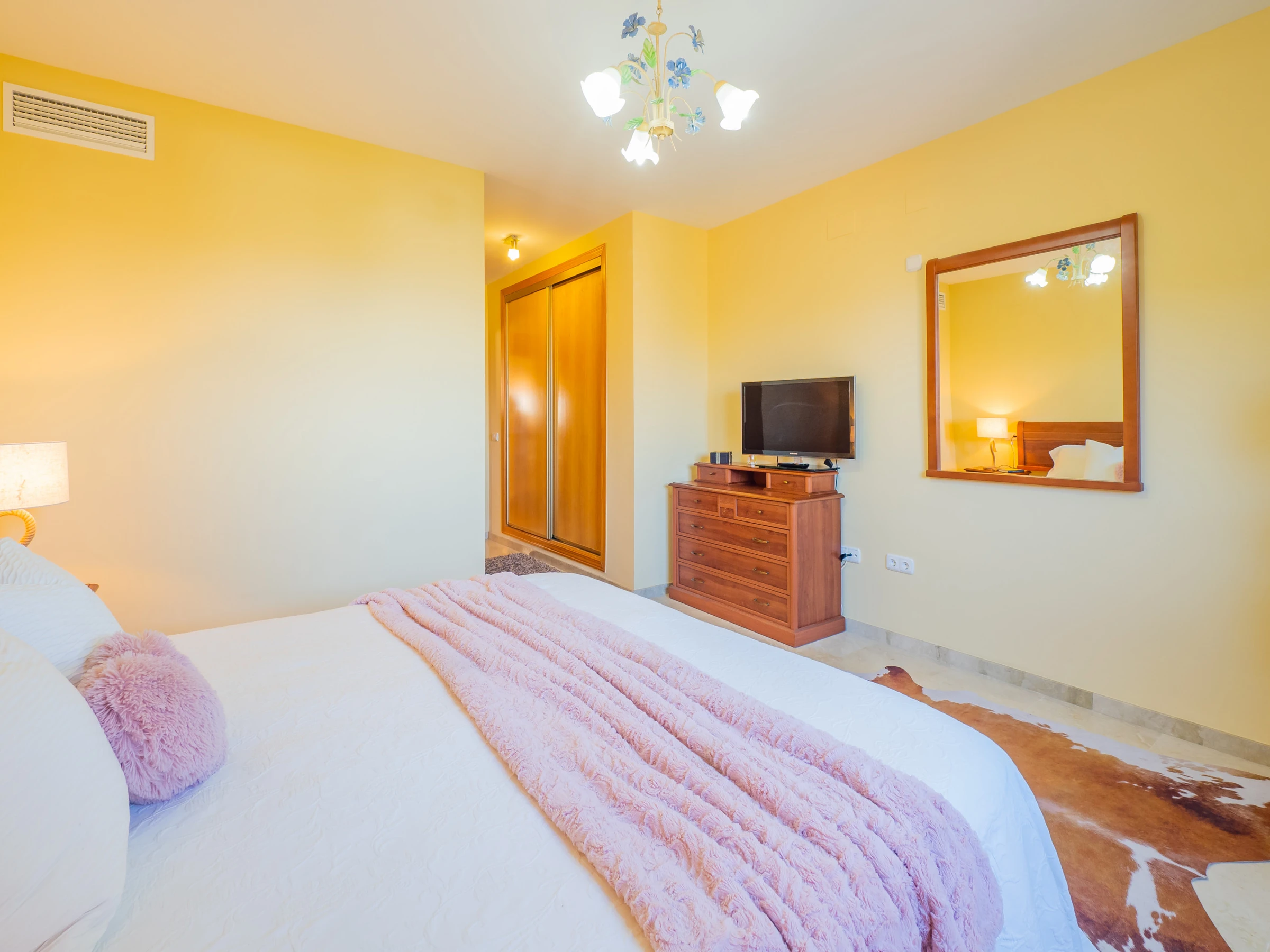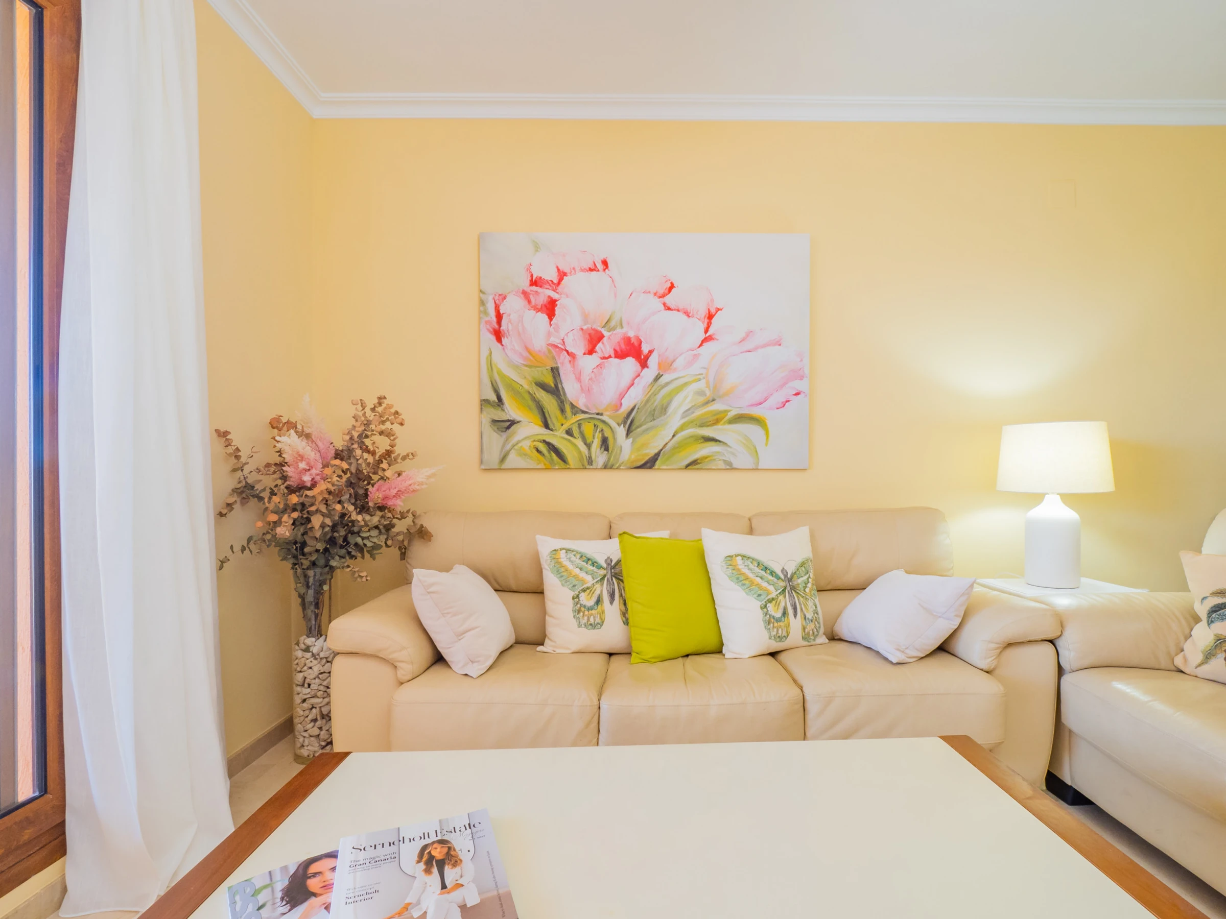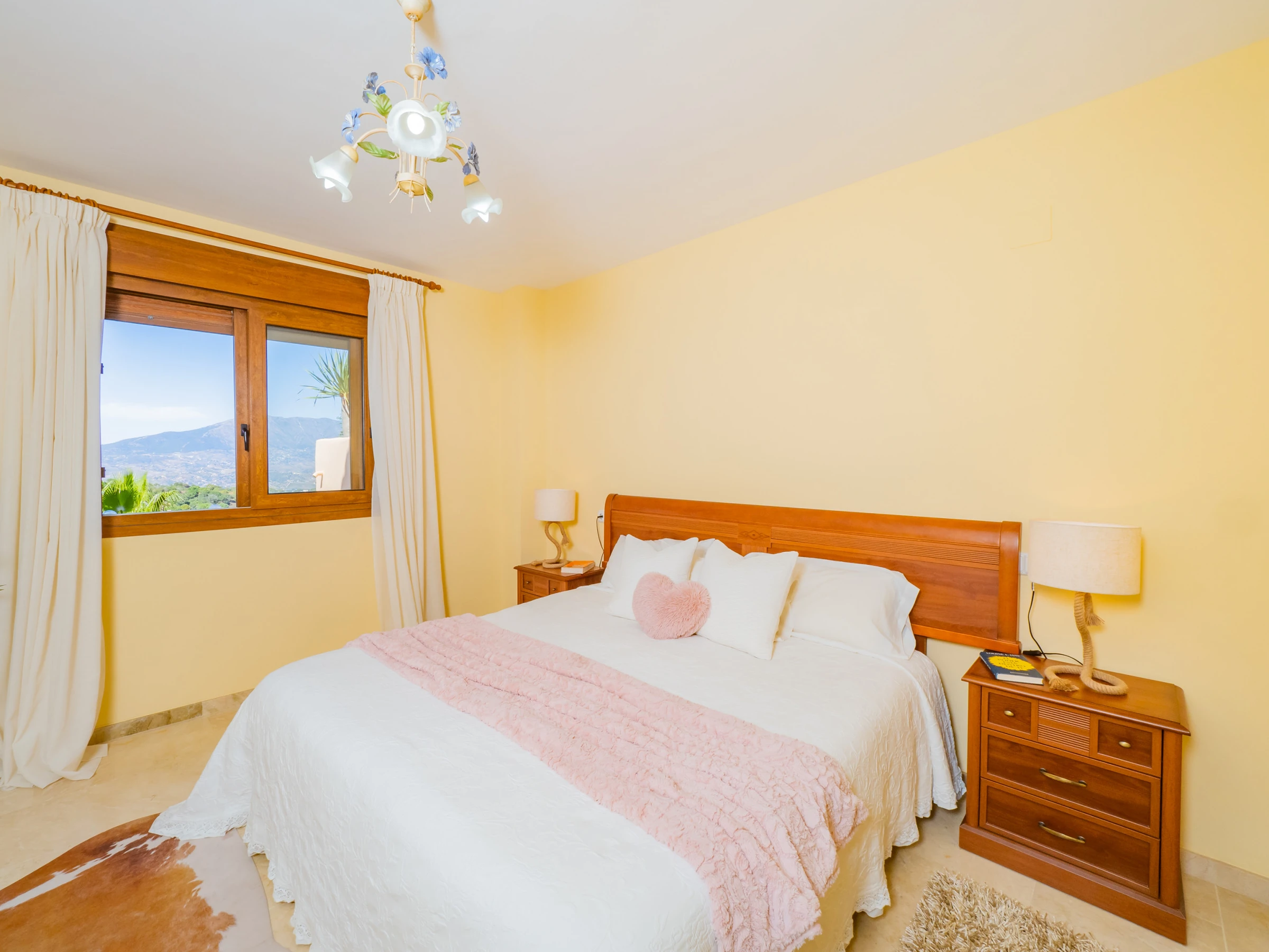 Este apartamento en una urbanización exclusiva en Soto de Marbella ofrece todo lo necesario para unas vacaciones inolvidables. Ubicado dentro de una comunidad tranquila con jardines cuidados, piscina comunitaria, piscina infantil y pista de pádel, el alojamiento permite también acceso al club social, que incluye gimnasio, sauna y pistas de pádel y golf, previa reserva. Podrás disfrutar de la amplia terraza cubierta con vistas a la montaña y al jardín, perfecta para desayunos, almuerzos o cenas en familia, sumergiéndote en un entorno natural y relajante.