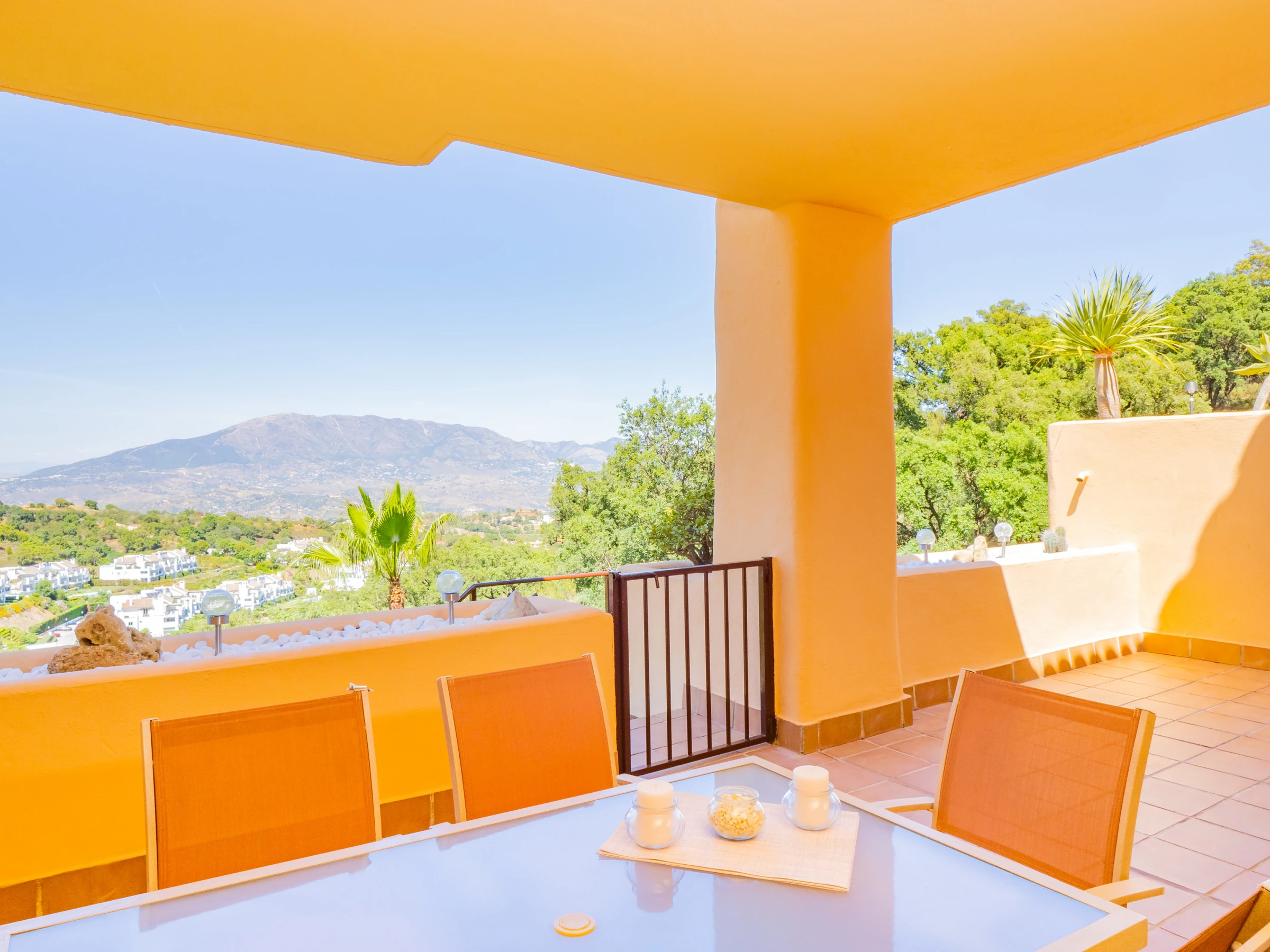 Apartamento en Soto de Marbella con vistas a la montaña, piscina y pista de pádel, ideal para familias y amantes del deporte y la naturaleza 🌞🏡.