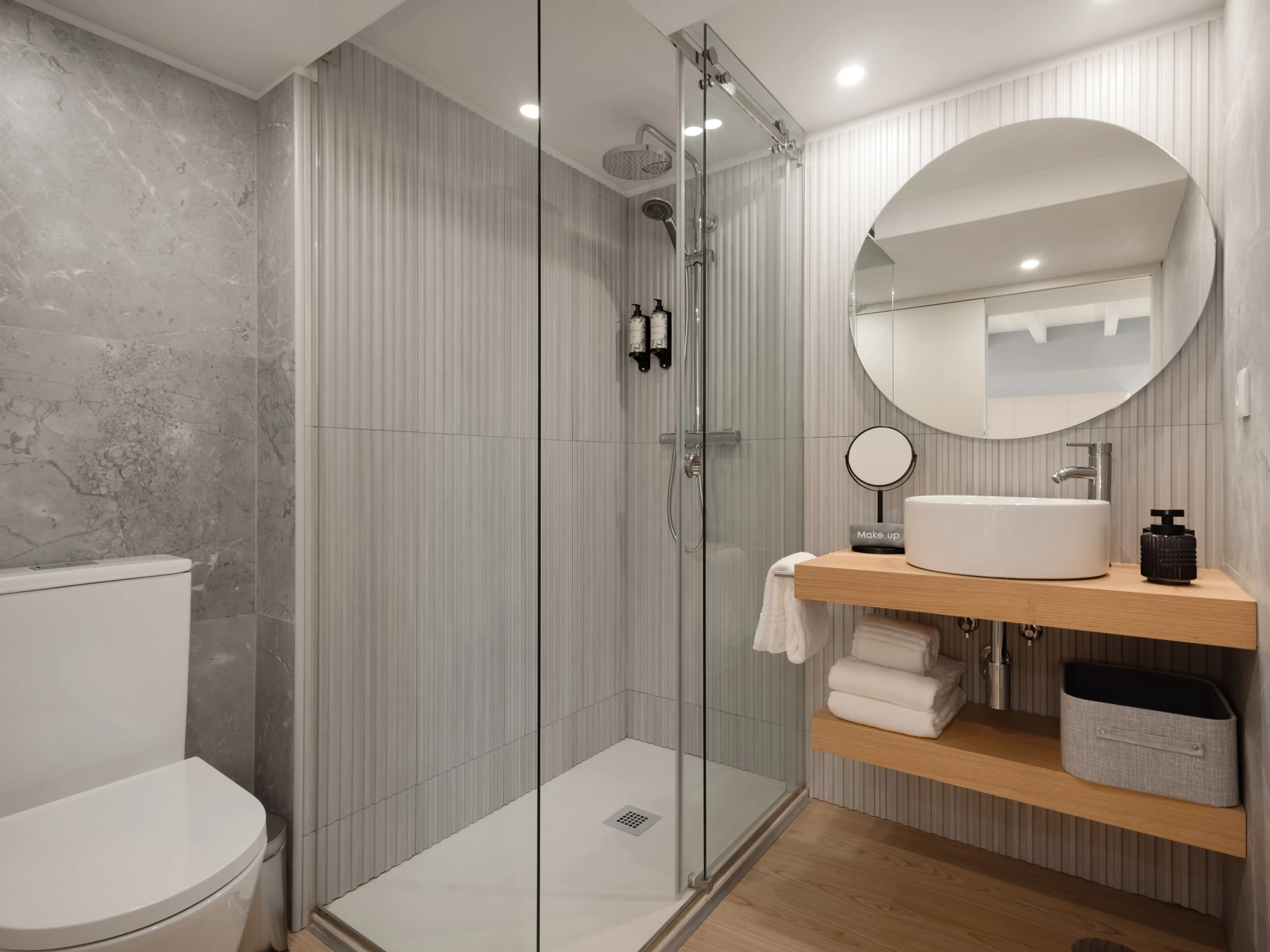 Disfrute de la comodidad de un baño individual con ducha y aproveche las amenidades adicionales como una plancha y un televisor. El apartamento presume de un hermoso balcón, perfecto para disfrutar de un café matutino o una bebida nocturna mientras se contemplan las vistas de la ciudad.