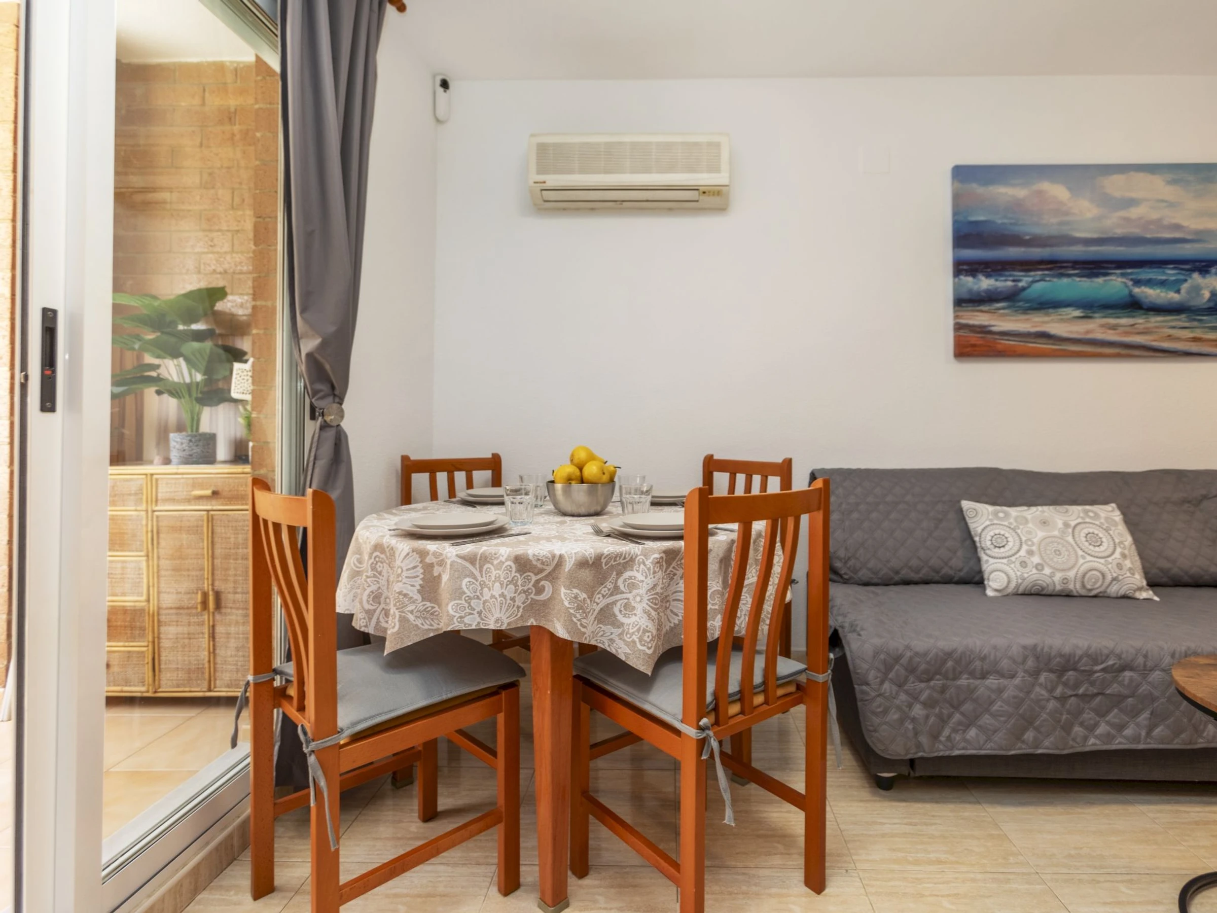 Apartamento de 3 estancias 60 m2 en el 7° piso. Luminoso, con mobiliario sencillo y funcional: salón-comedor con TV digital. Salida al balcón. 1 dorm. con 1 cama de matrimonio (1 x 135 cm, 190 cm de longitud), baño/bidet/WC. 1 dorm. con 2 camas (90 cm, 190 cm de longitud). Pequeña cocina en la entrada (horno, 4 placas de vitrocerámica, microondas, cafetera eléctrica, Cápsulas de café (Dolce Gusto) extra) con calentador (80 litros). Ducha/bidet/WC. Balcón 8 m2. Muebles de balcón. Vista lateral al mar y al paisaje. El alojamiento dispone de: lavadora, plancha, secador de pelo. Internet (Wifi, gratis). Plaza de aparcamiento n. 69 (cubierto, 1 coche). Adecuado para familias. [hidden] // Reg. Nr.: ESFCTU000012026000389735000000000000[hidden]7