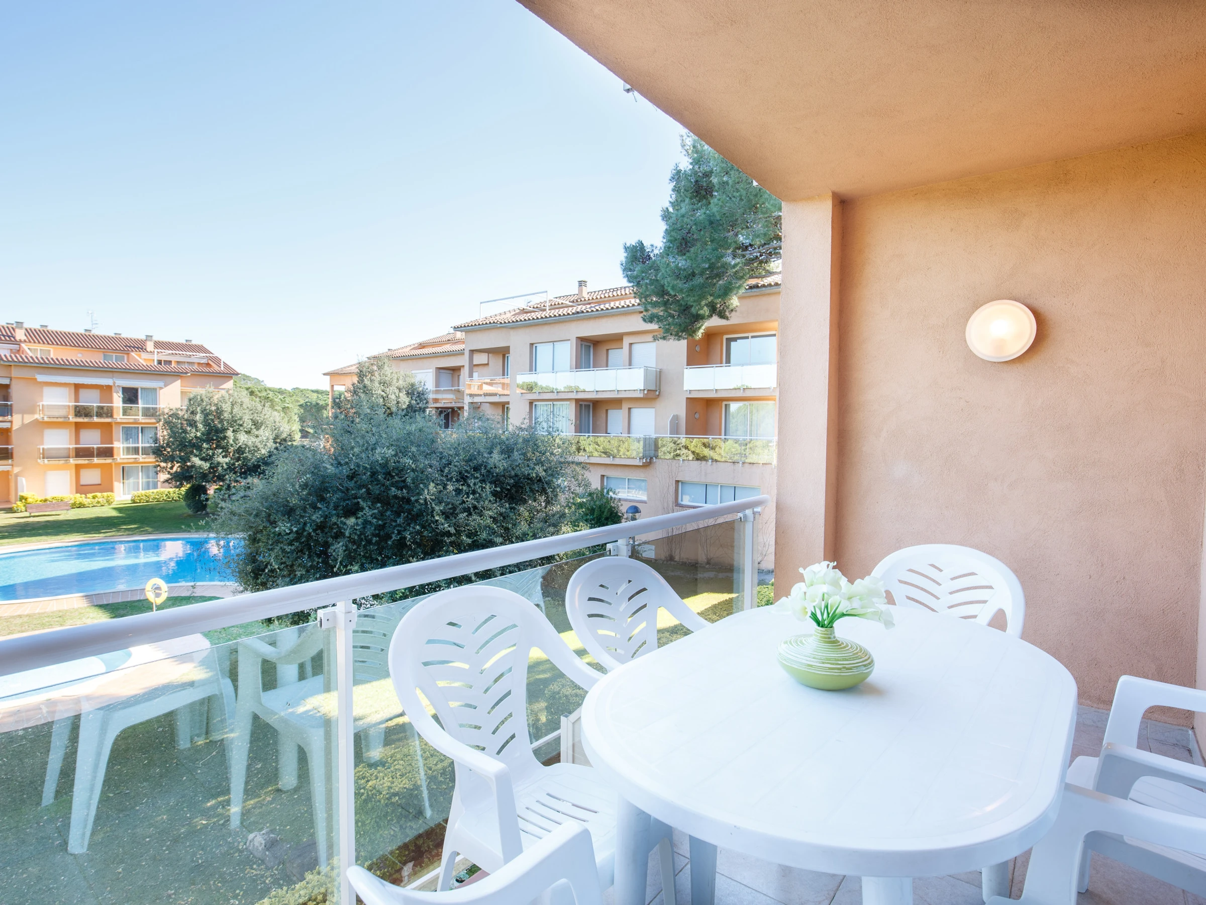Este apartamento, situado en un encantador complejo residencial con jardín y dos piscinas comunitarias (una para niños y otra para adultos), ofrece un espacio tranquilo y rodeado de naturaleza, ideal para desconectar y disfrutar a pocos minutos de la playa. Con capacidad para 6-7 personas, es una excelente elección para familias y grupos de amigos.