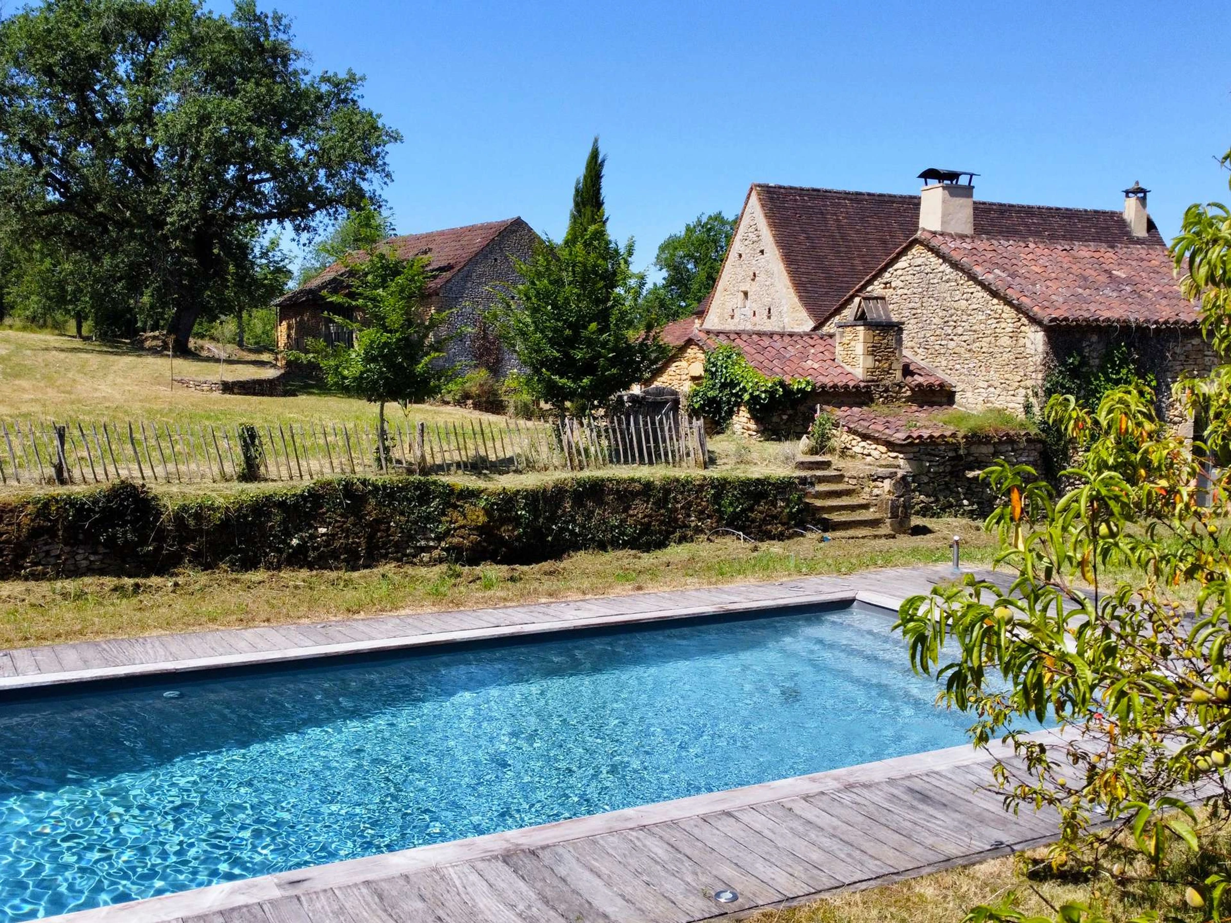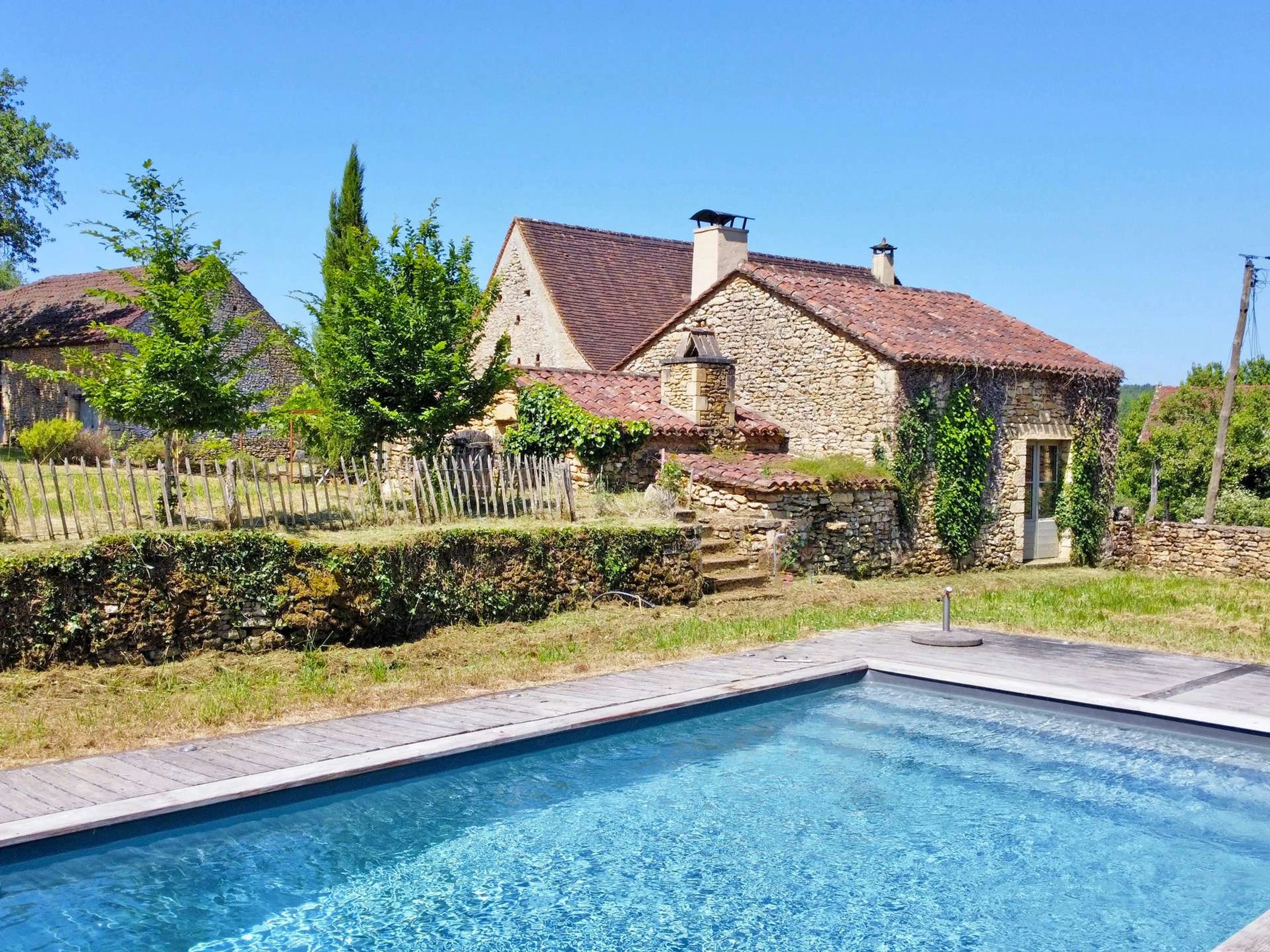 Casa de piedra totalmente renovada, situada a 2 km del pueblo de Trémolat, con piscina privada y un precioso jardín, con capacidad para seis personas.
