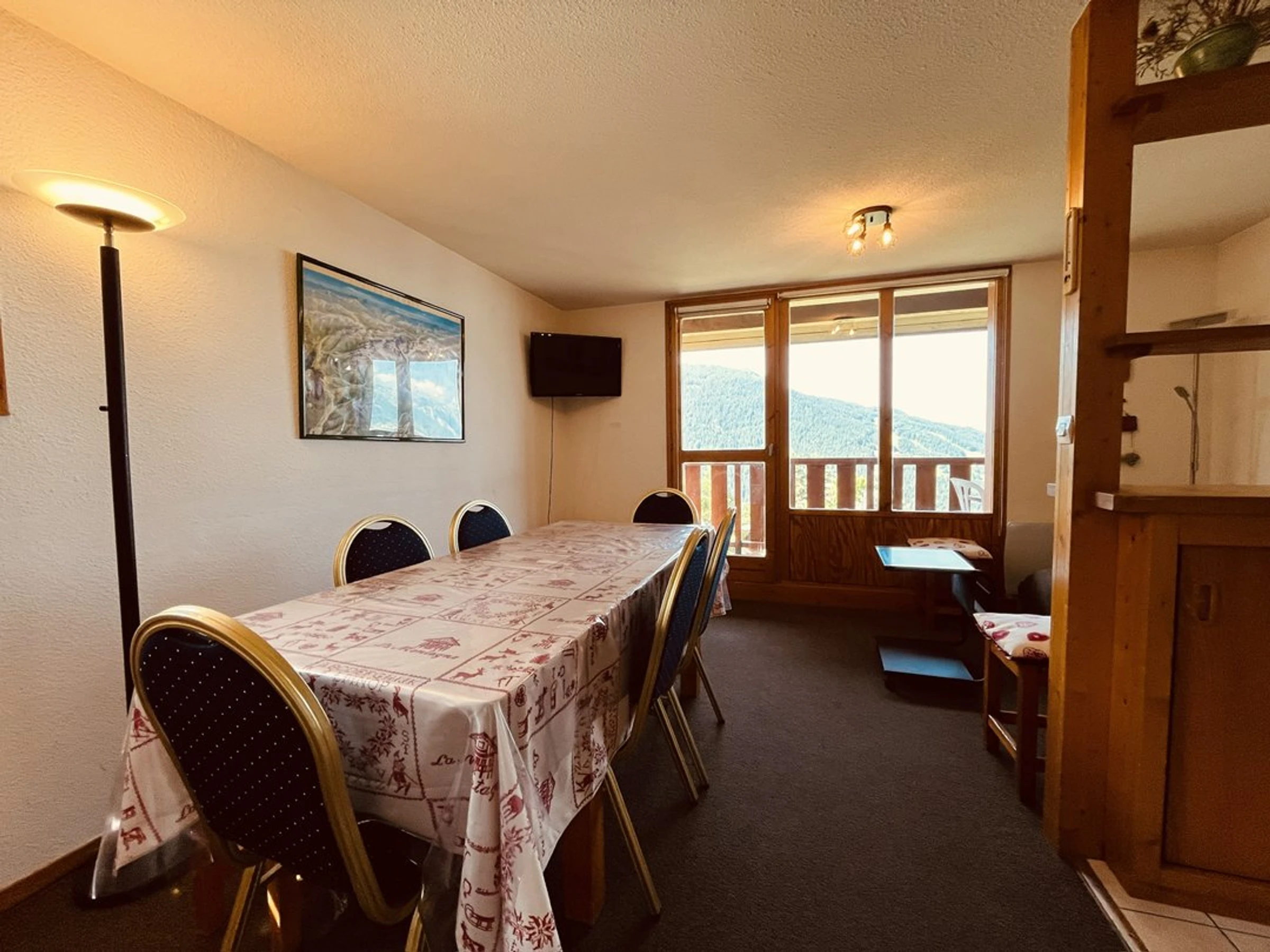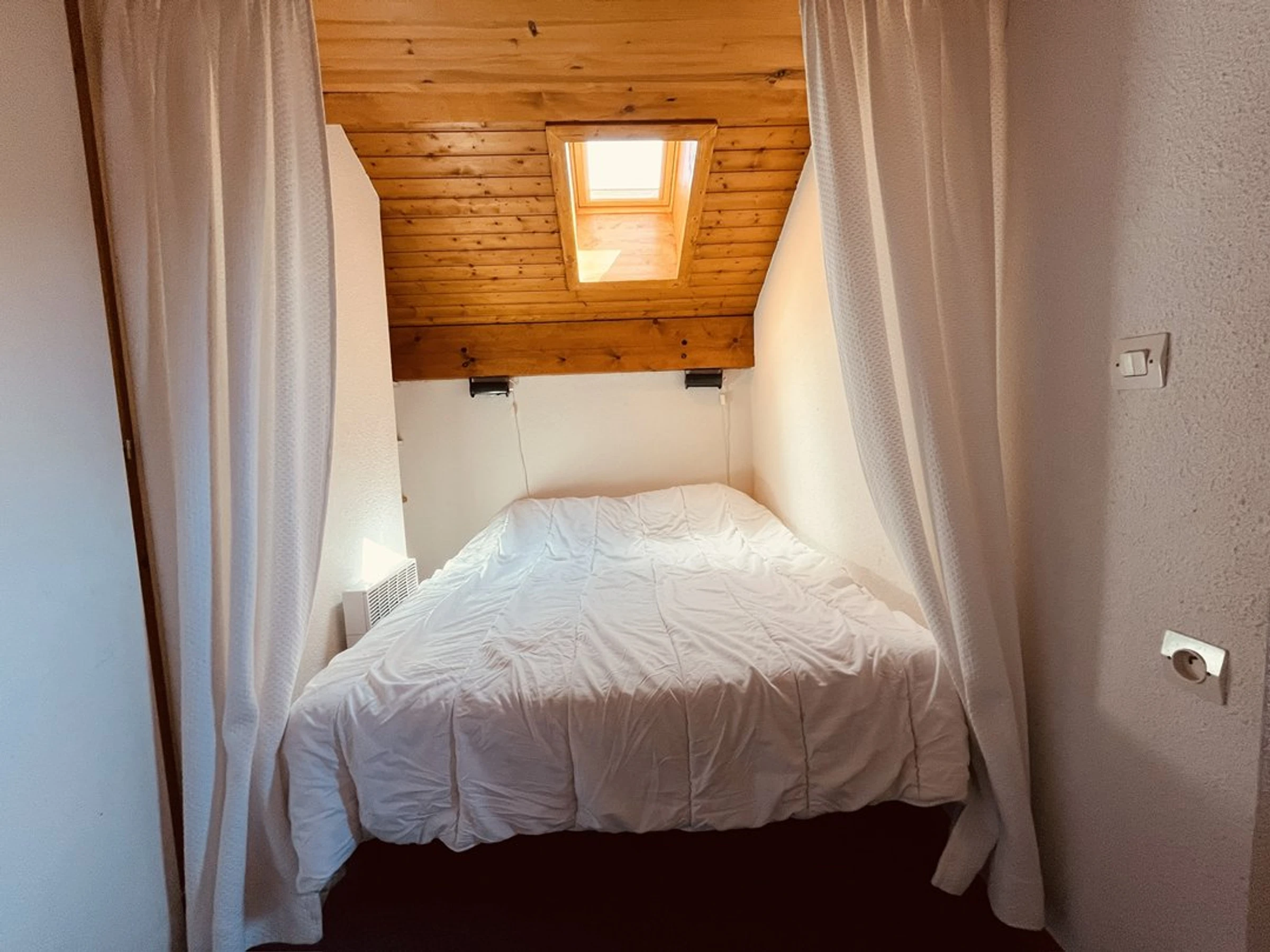 Apartamento dúplex de 3 habitaciones para 8 personas, de 45 m², ubicado en la 1.ª planta con balcón, sin ascensor, con orientación oeste y cerca del centro de la estación y de las pistas.