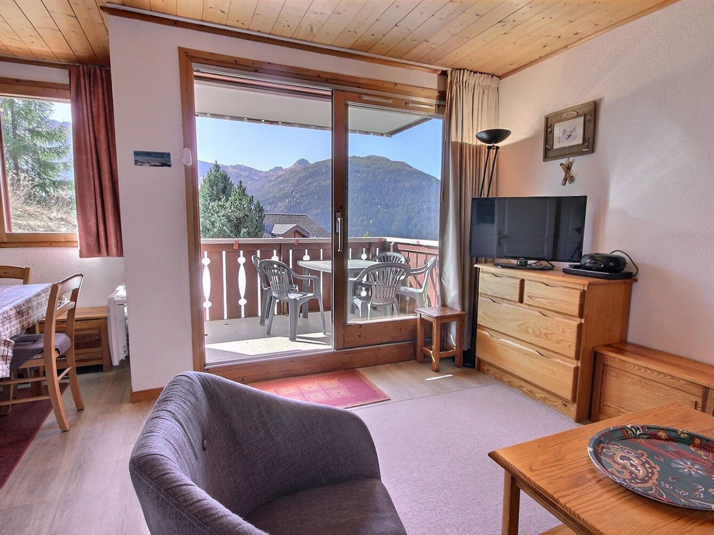 Para sus vacaciones de esquí o de verano en Vallandry, reserve este apartamento de 3 habitaciones con balcón orientado al sur y vistas a las montañas.