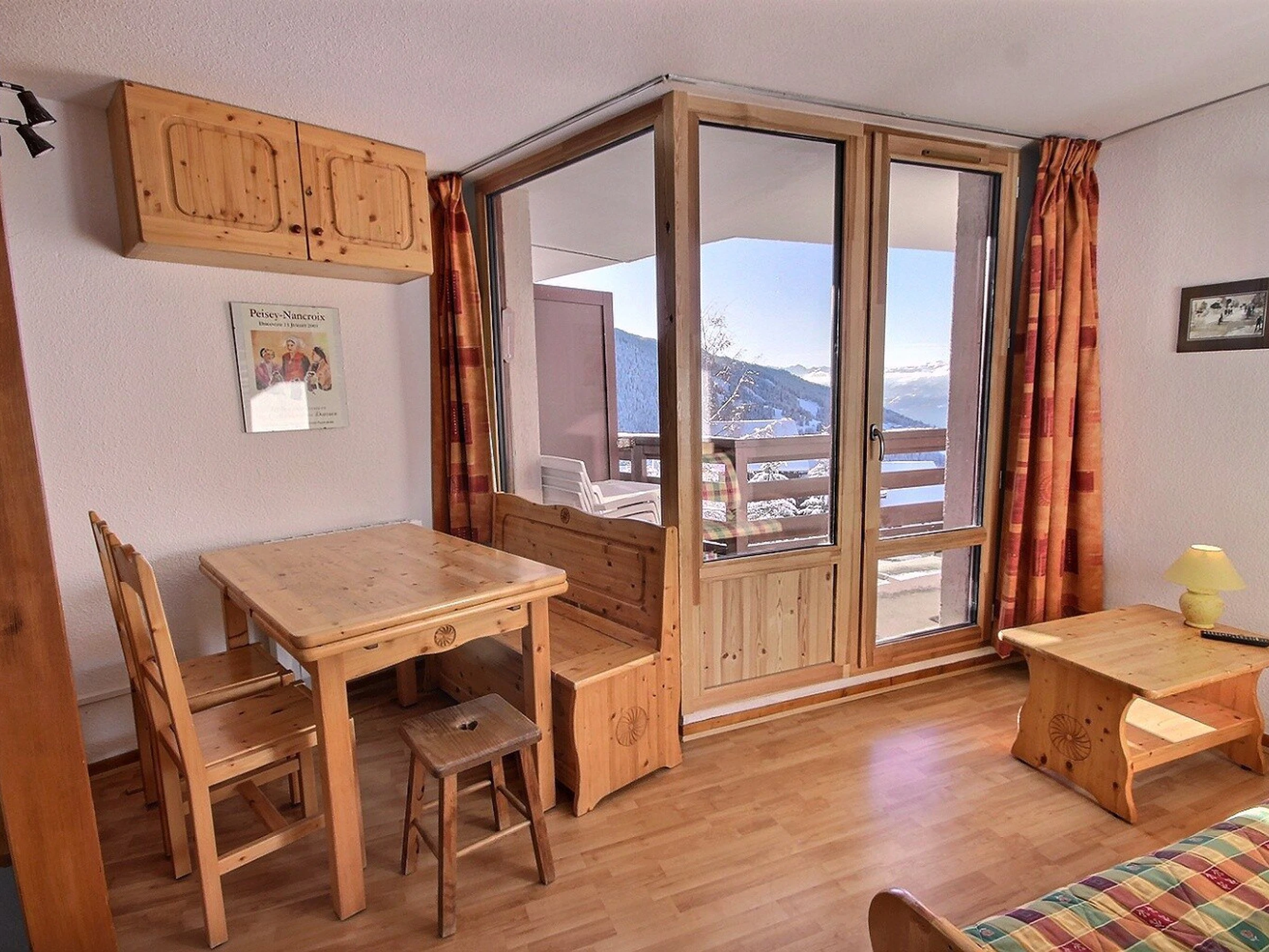 Para tus vacaciones de esquí o de verano en Vallandry, reserva este apartamento de 22m2 con balcón orientado al oeste y vistas a la montaña y la estación.