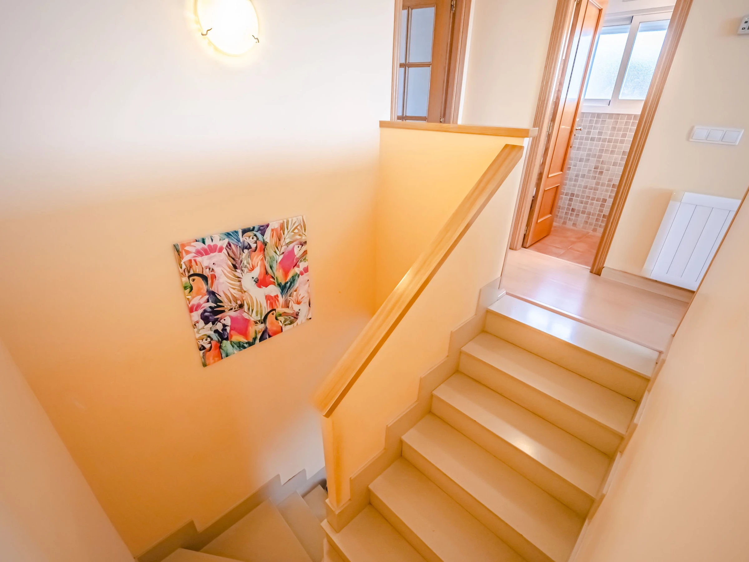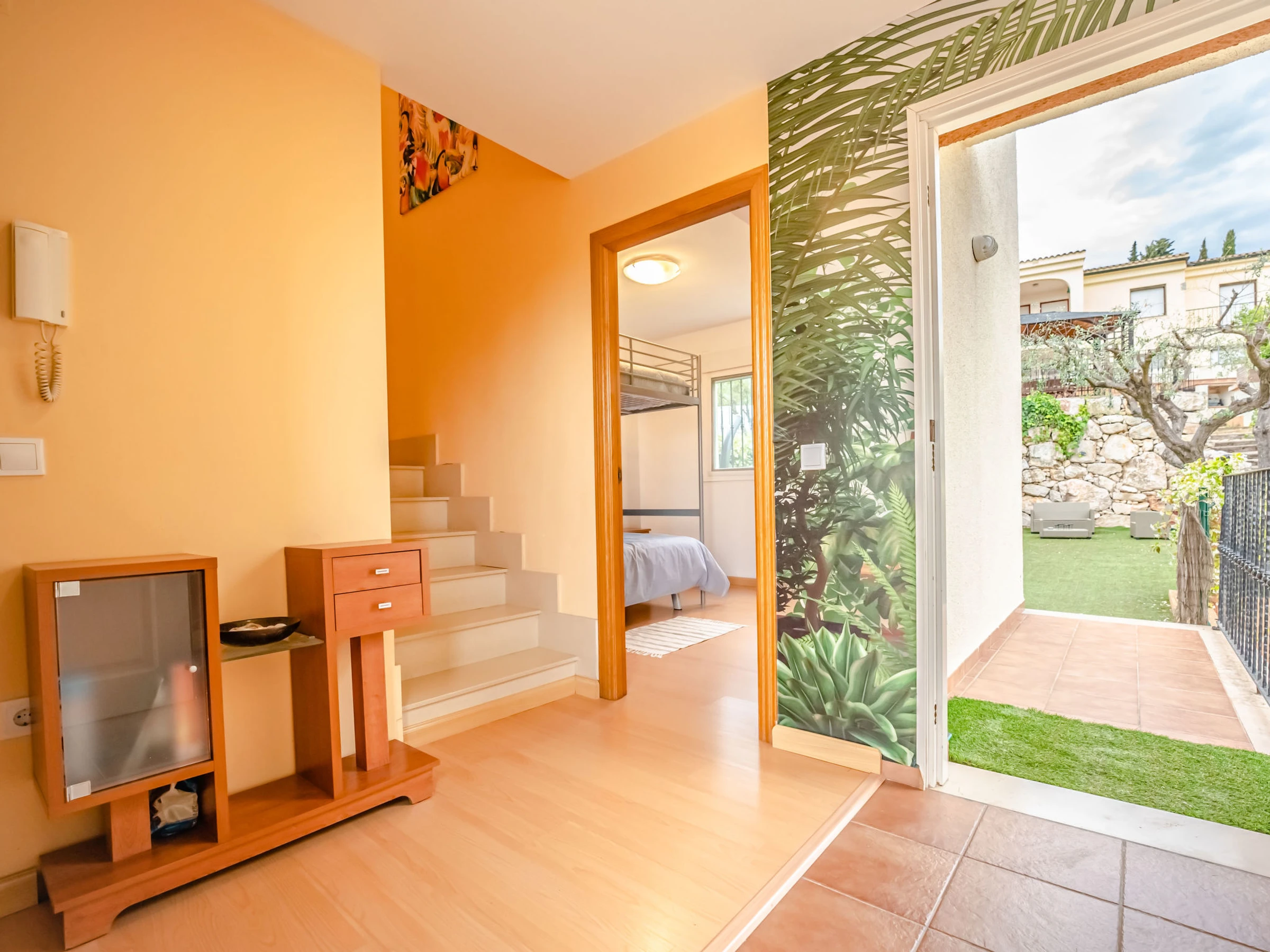 Casa semiadosada "Estibaliz", bonita de 2 plantas. En la localidad, a 500 m del centro de Peñiscola, lugar céntrico, tranquilo, soleado, a 700 m del mar, a 700 m de la playa. Comunitario: jardín grande, 2 piscinas, piscina cubierta (20 x 10 m, 80 - 250 cm de profundidad, Disponible por temporada: [hidden] - [hidden] Piscina para niños, tenis. Privado: jardín en diferentes niveles, 100 m2. Acceso por escaleras (17 escalones) hasta la casa. Posibilidad de aparcamiento en la calle. Tienda de comestibles, supermercado 200 m, restaurante, bar, café 700 m, playa de arena "Playa del Norte" 700 m. A tener en cuenta: vigilancia nocturna. Residencia con puertas de cierre eléctrico. La piscina cubierta permanece cerrada del 15.06 al 15.09.