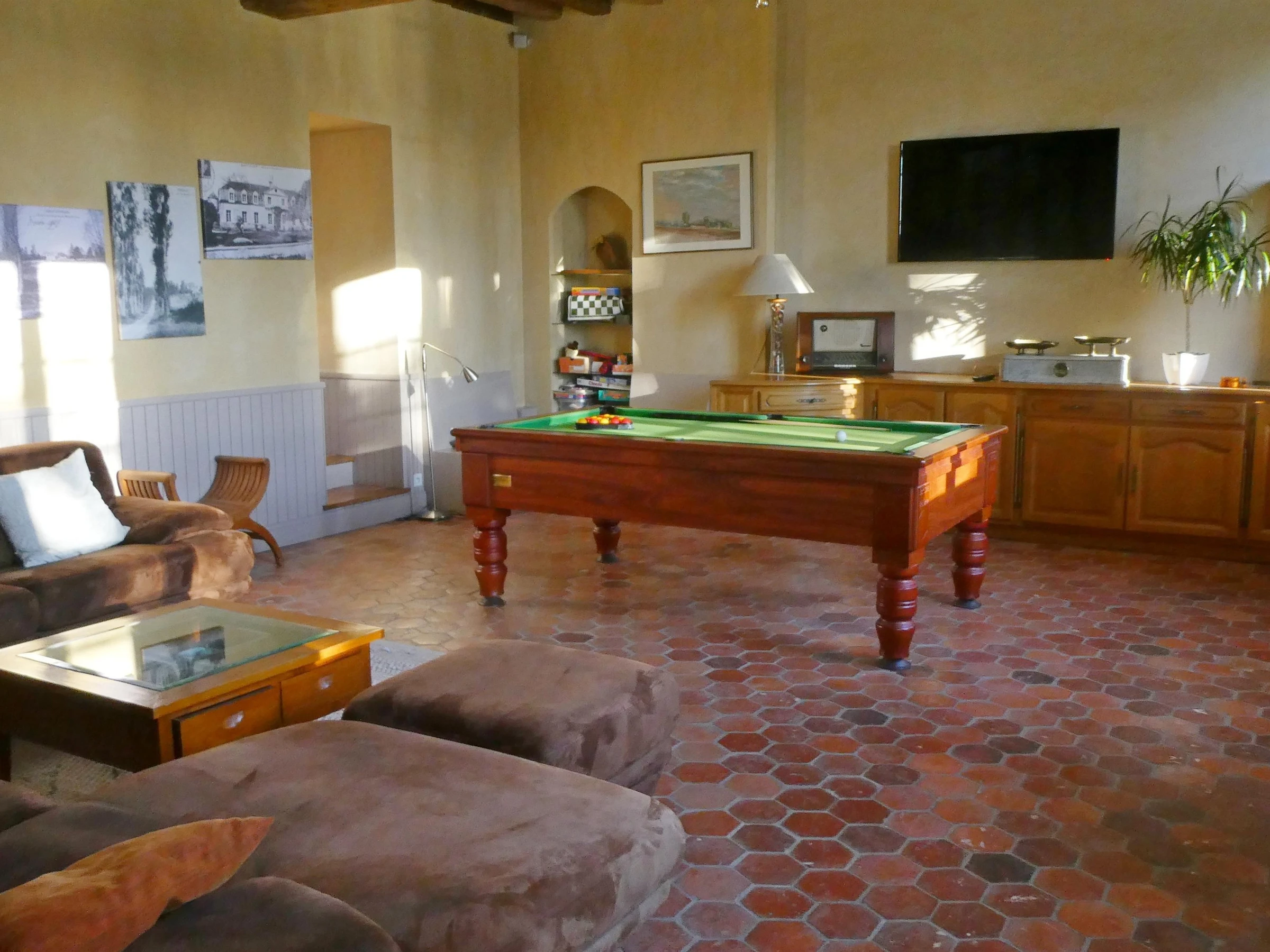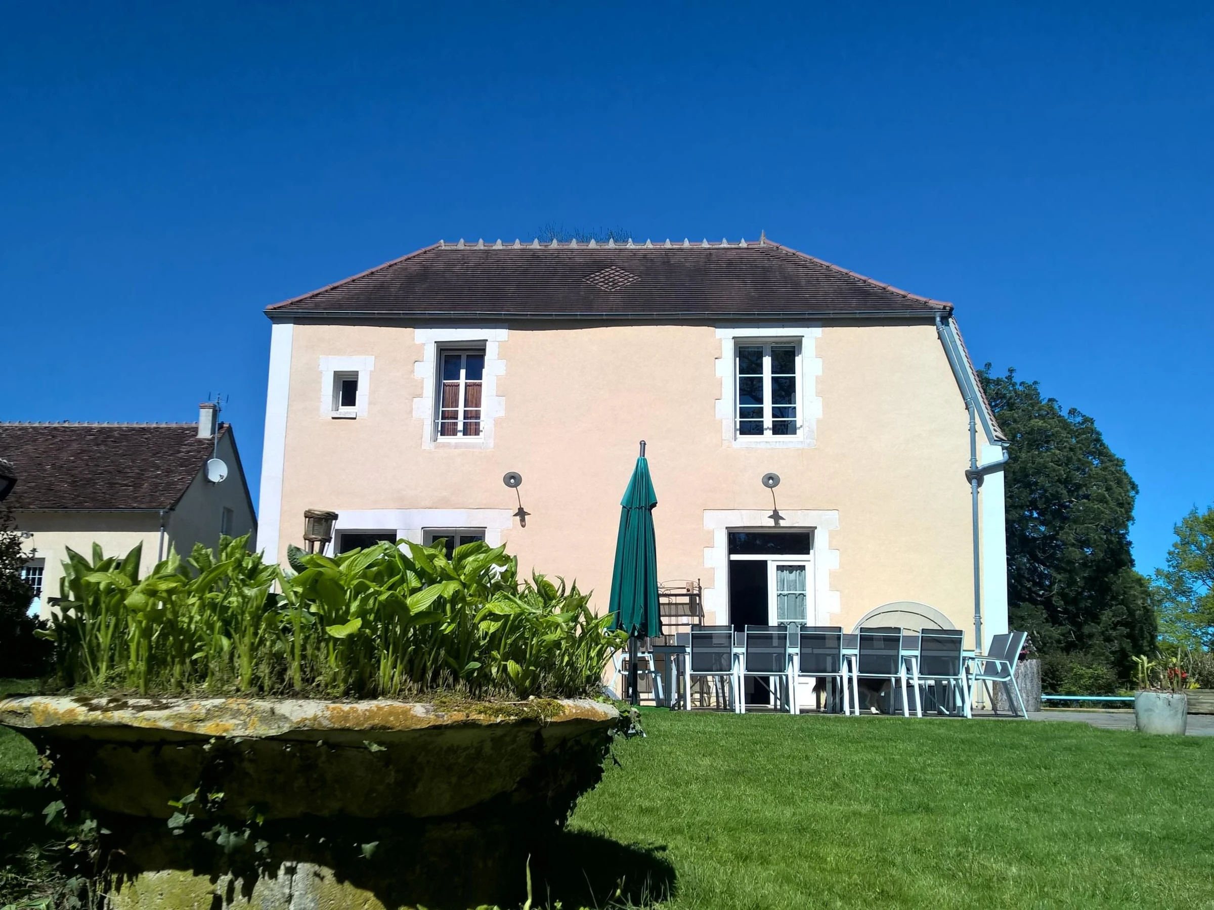 Pasará una estancia inolvidable en una magnífica propiedad del siglo XVIII, totalmente renovada con todas las comodidades modernas, piscina, jacuzzi y vistas panorámicas, a solo 4 km del centro histórico de Auxerre. Ideal para relajarse en familia o con amigos. Planta baja: Entrada con aseo independiente, cocina totalmente equipada con isla central, comedor, salón con un amplio sofá esquinero, mesa de billar americano, TV de pantalla plana de 140 cm y un dormitorio con baño en suite.