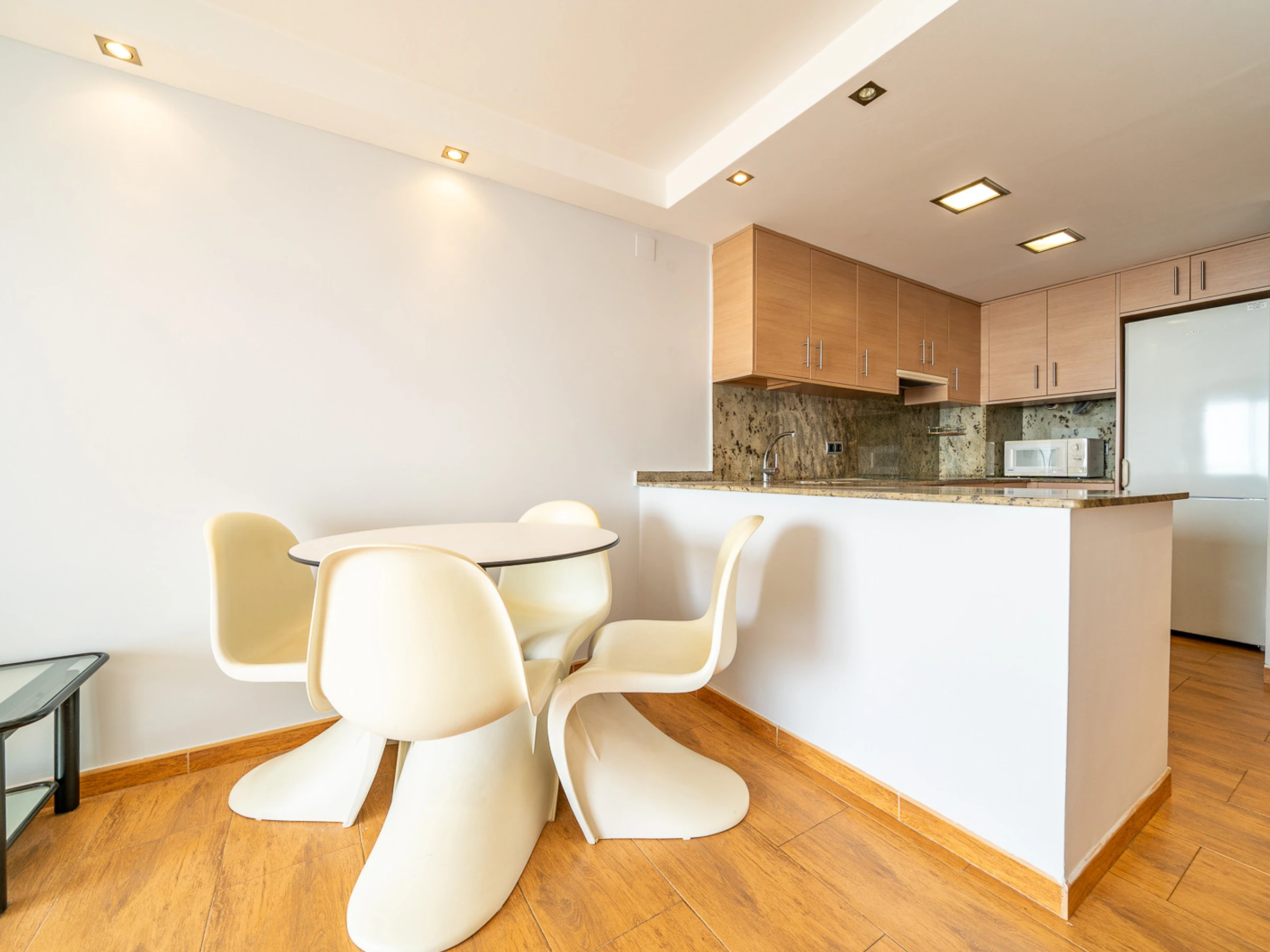 El apartamento cuenta con un acogedor salón-comedor y una cocina abierta totalmente equipada, perfecta para preparar comidas cómodamente durante tu estancia. Dispone de un dormitorio confortable, un baño moderno con ducha y un precioso balcón con espectaculares vistas panorámicas al mar, un lugar único para disfrutar de un desayuno al amanecer o una copa al atardecer con la brisa marina.