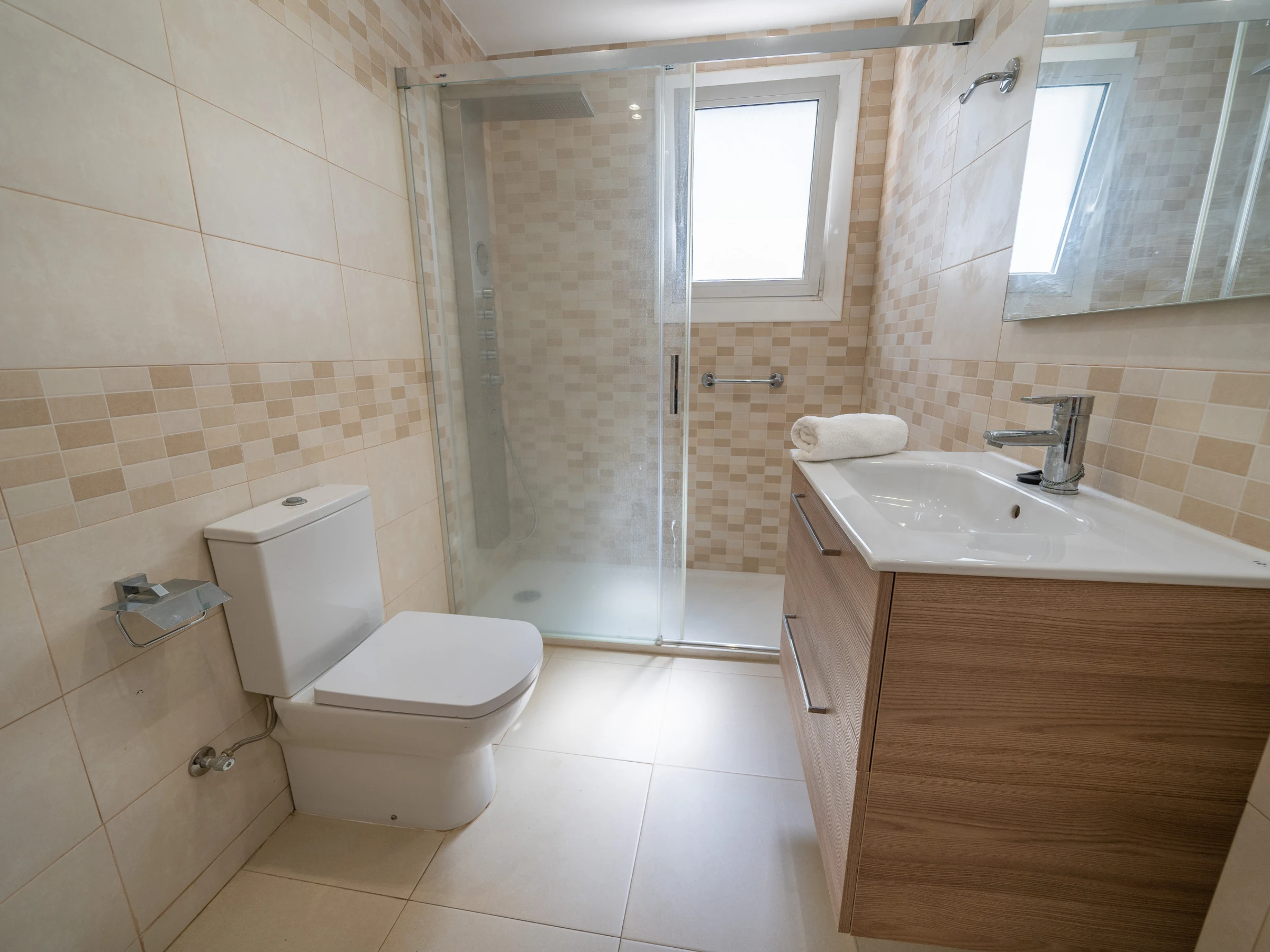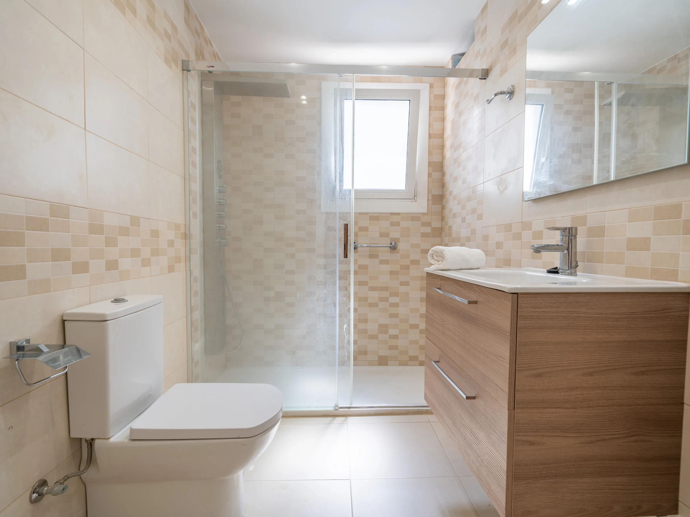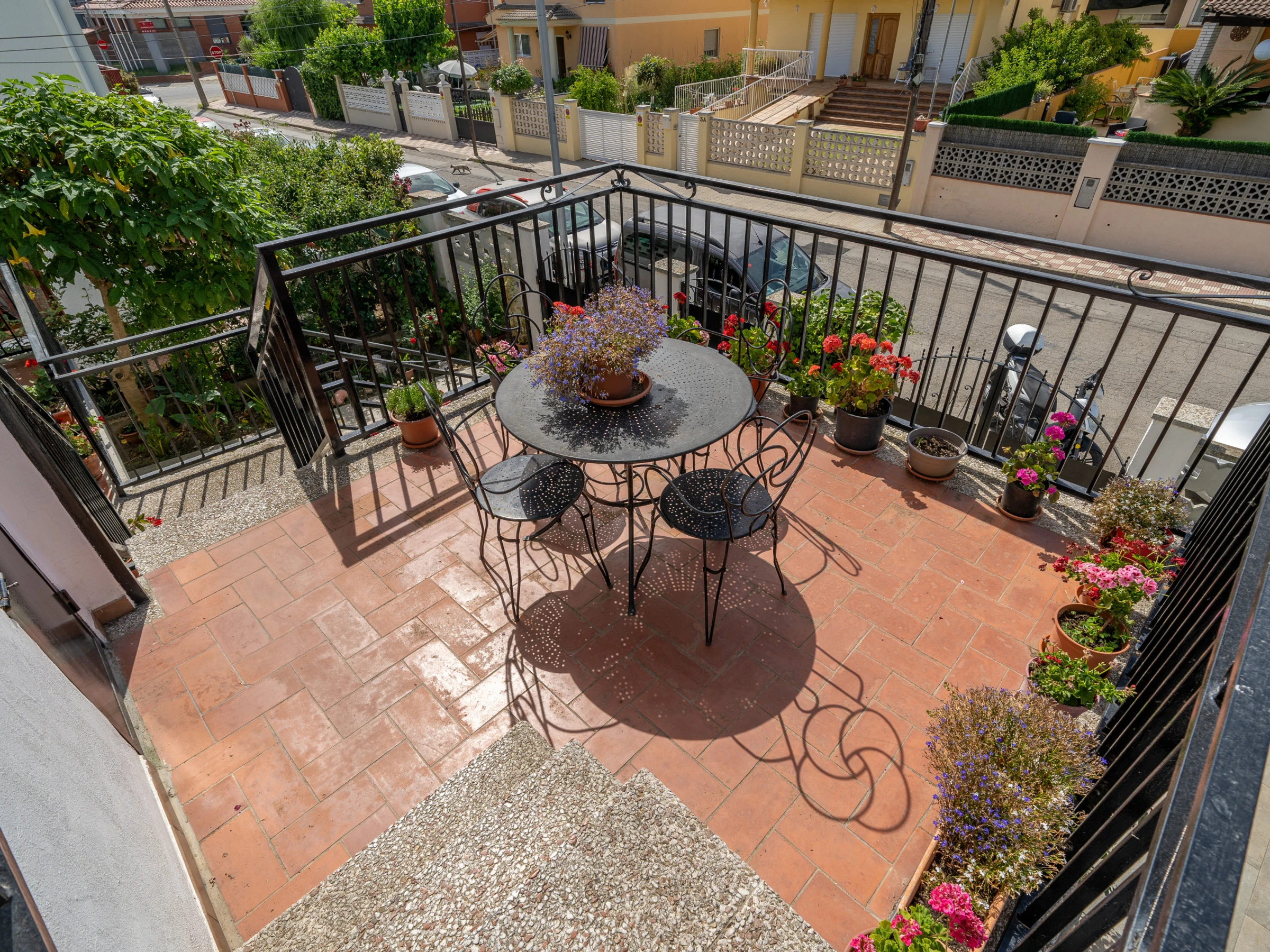 En el exterior, podrás disfrutar de una agradable terraza privada, perfecta para desayunos al aire libre, comidas tranquilas o relajarte durante las cálidas tardes de verano. A la entrada del apartamento, un jardín compartido aporta un toque natural y acogedor al conjunto.